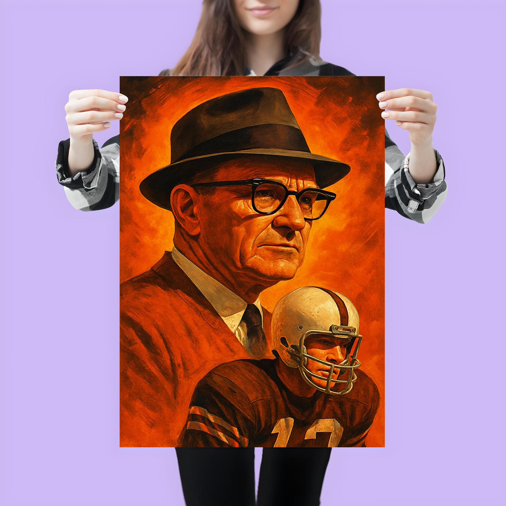 Celebrate the legacy of a true coaching pioneer with this striking Paul Brown poster. Perfect for sports enthusiasts and history buffs alike, it honors the man who shaped the modern game with unmatched vision and leadership. Elevate your space with a timeless tribute to football greatness.