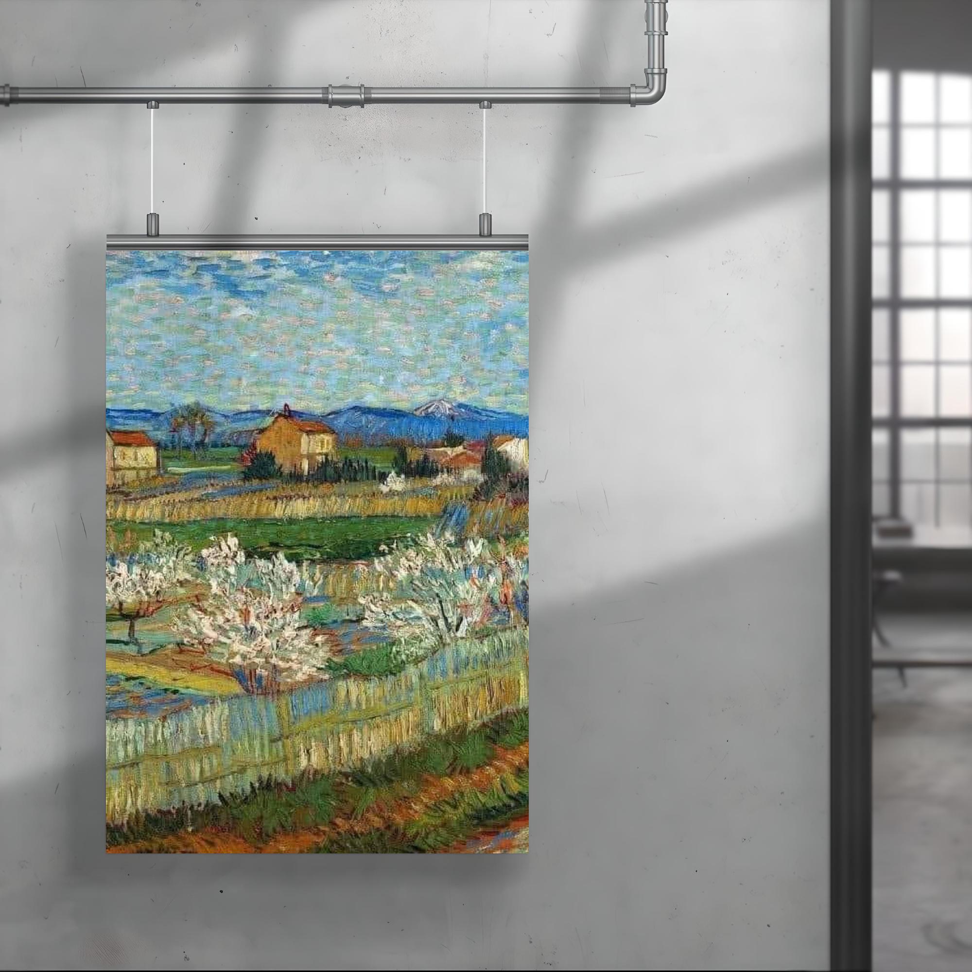 Transform your space with the timeless beauty of Vincent van Gogh’s “Peach Trees in Bloom,” painted in 1889. This stunning poster captures the delicate blossoms and vibrant energy of spring, inviting a sense of renewal and tranquility into any room. Perfect for art lovers seeking a touch of classic elegance, it celebrates nature’s fleeting grace through Van Gogh’s iconic brushstrokes.