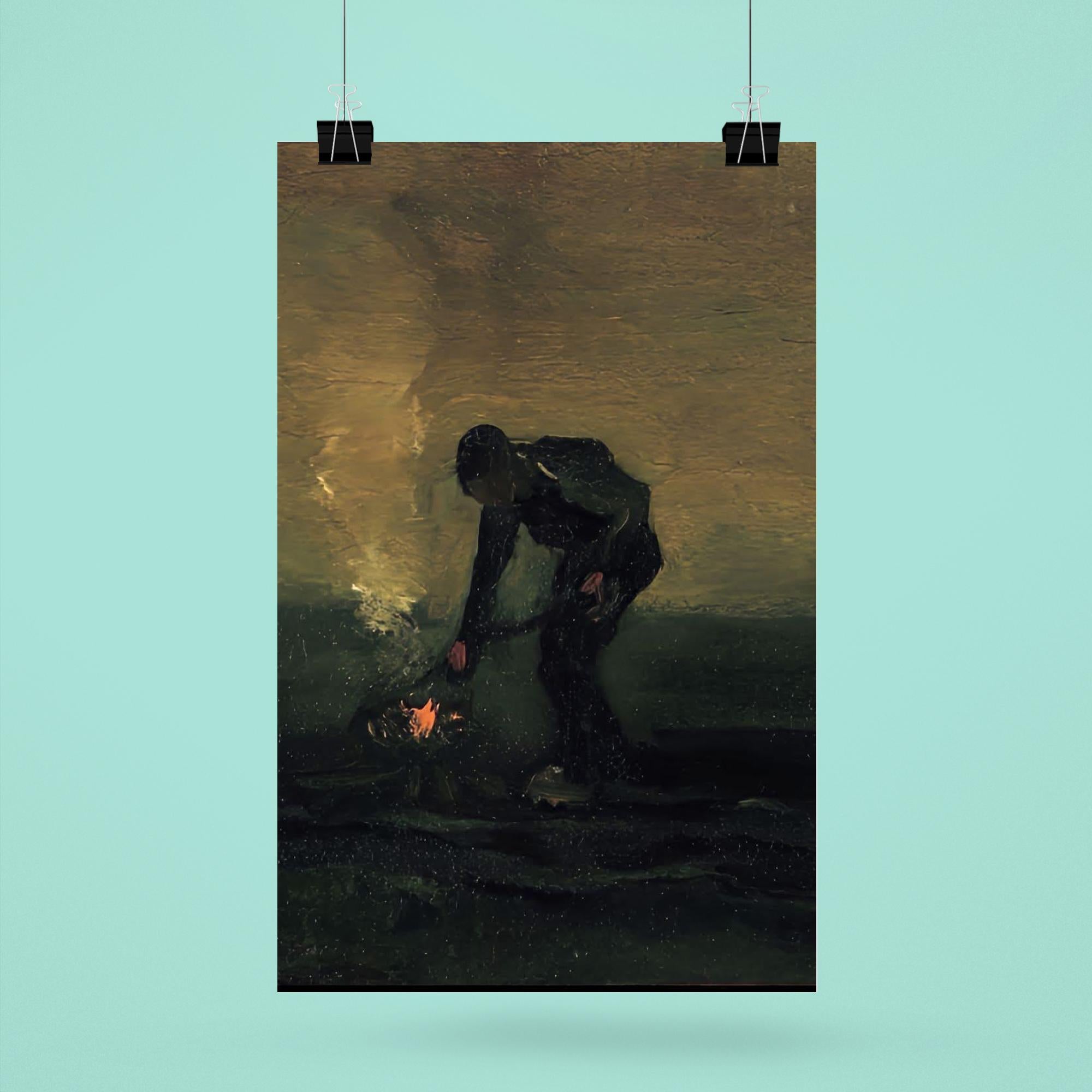 Bring the powerful emotion and raw intensity of Vincent van Gogh’s early masterpiece, *Peasant Burning Weeds* (1883), into your space. This striking poster captures the artist’s bold brushstrokes and earthy tones, reflecting the grit and resilience of rural life. A compelling tribute to van Gogh’s unique vision, it’s perfect for those who appreciate art that tells a story beyond the canvas.