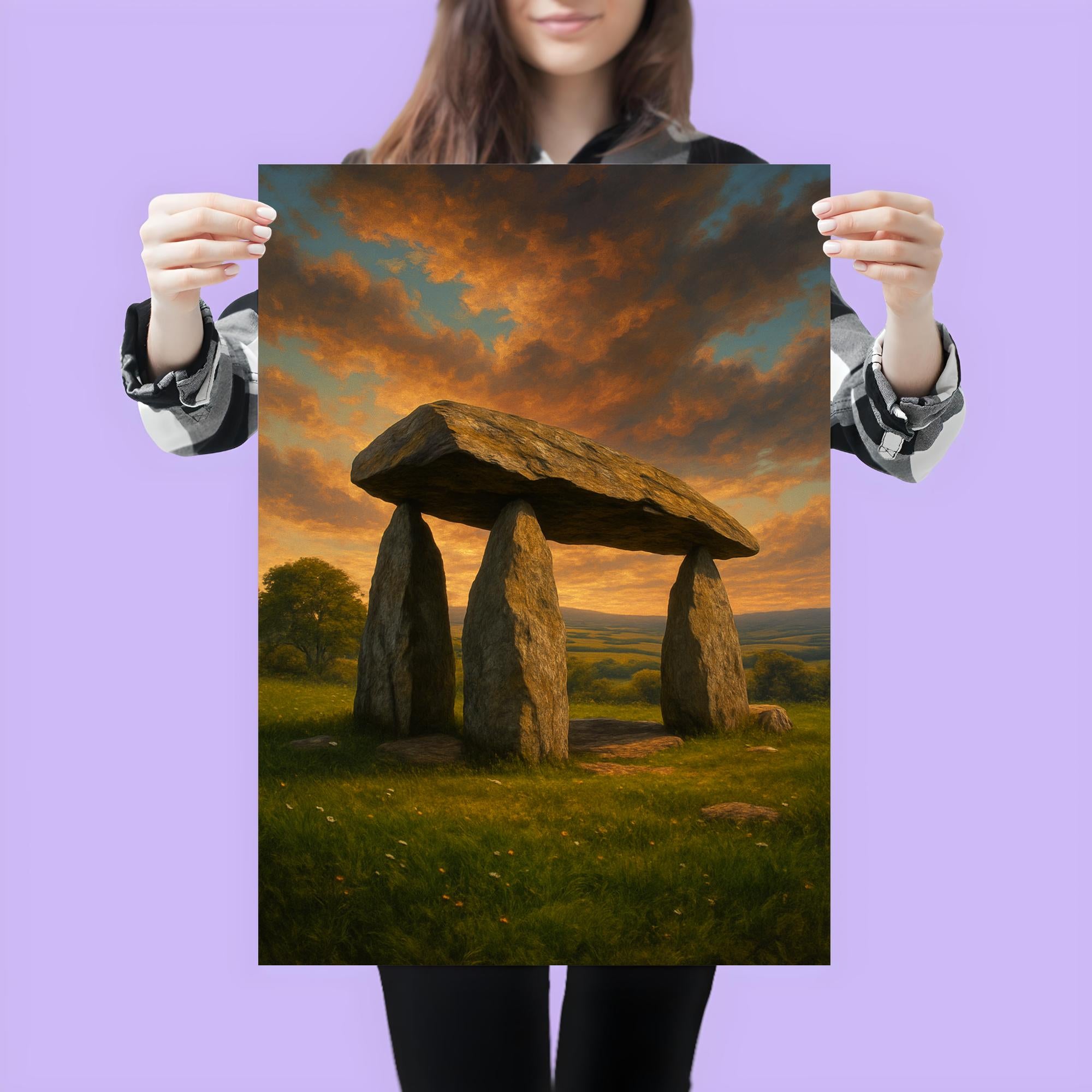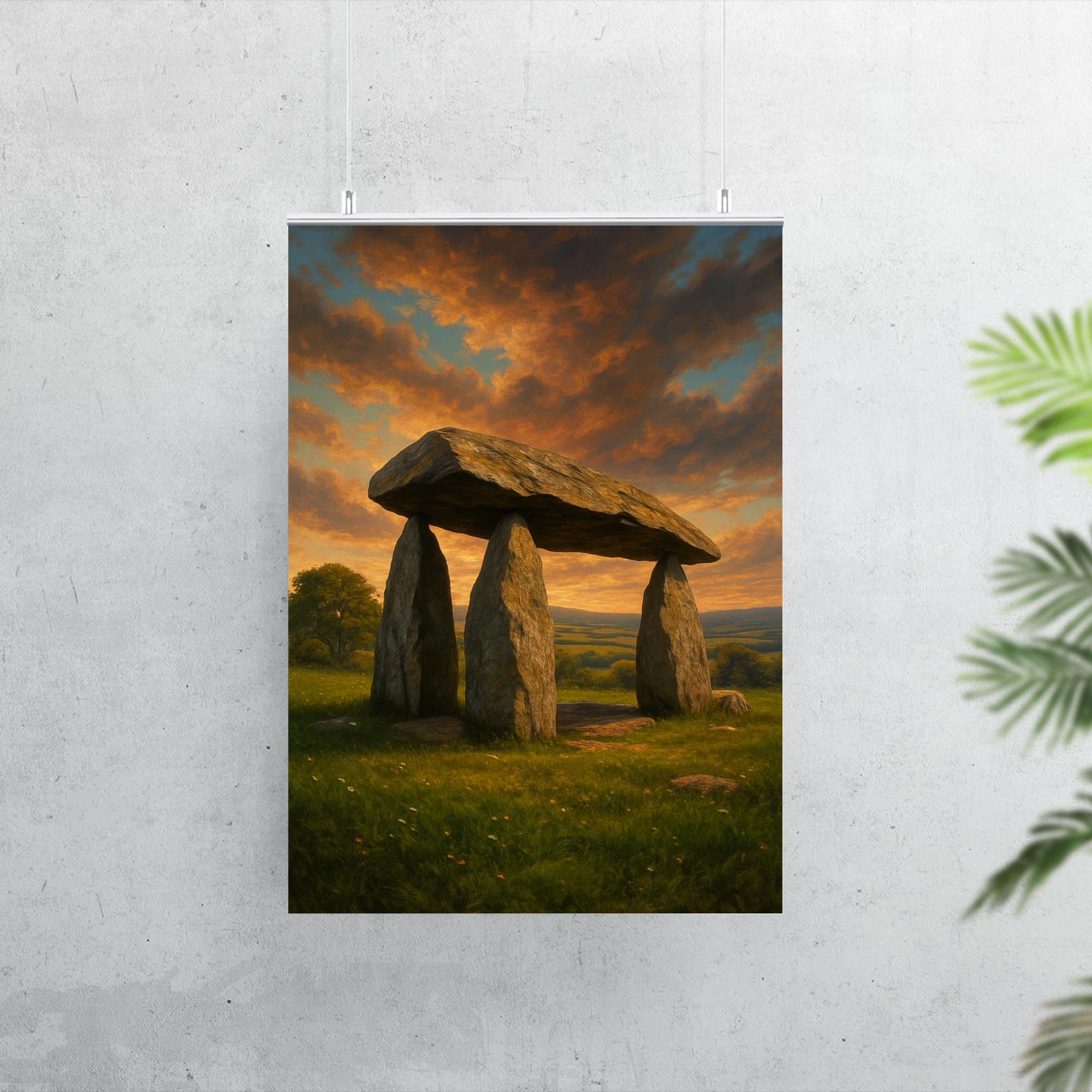 Celebrate the timeless beauty of ancient Wales with this striking poster of Pentre Ifan Dolmen. Capturing the majestic stone structure in all its enduring mystery, it’s a perfect tribute to history and nature’s artistry — a stunning addition that brings a sense of wonder and heritage to any space.
