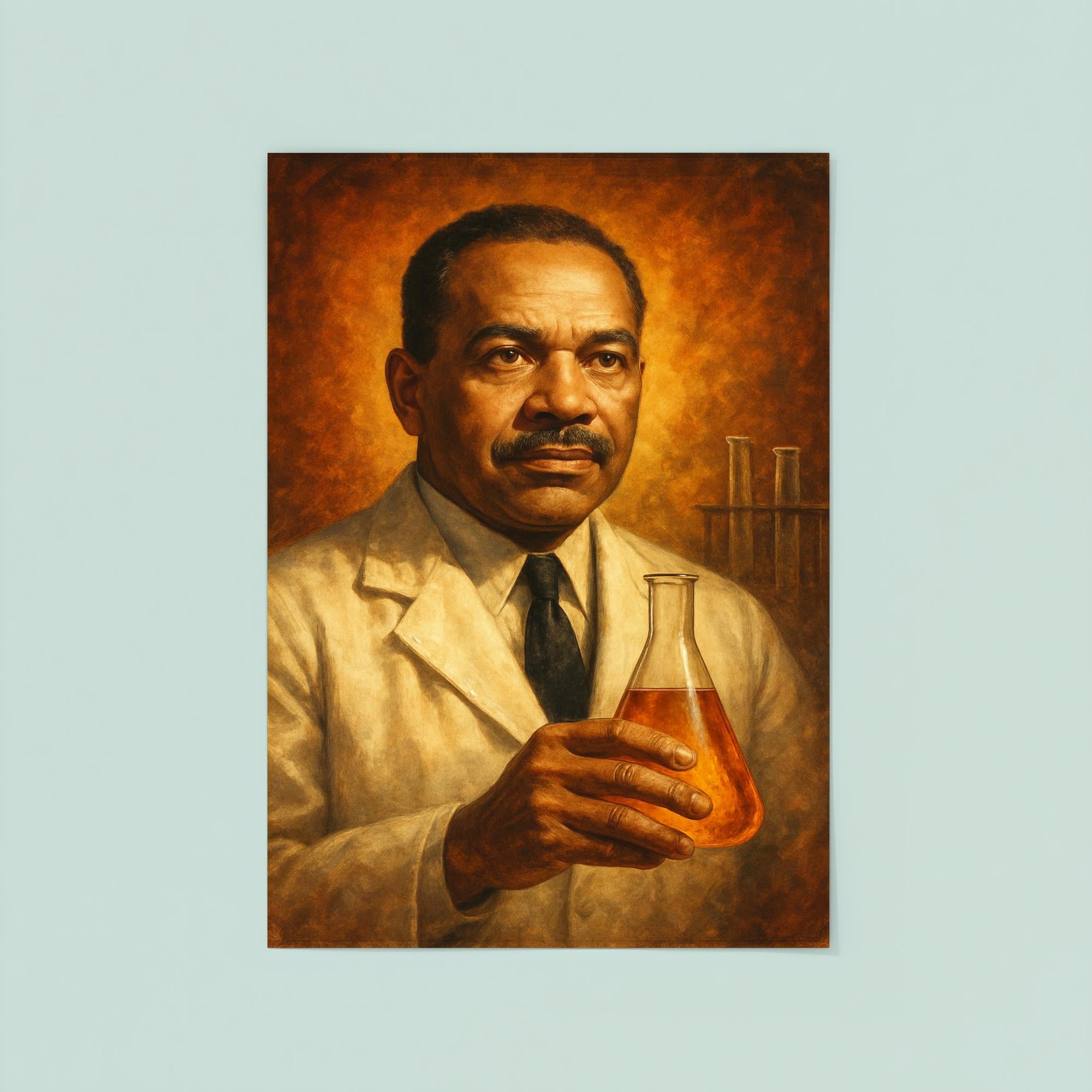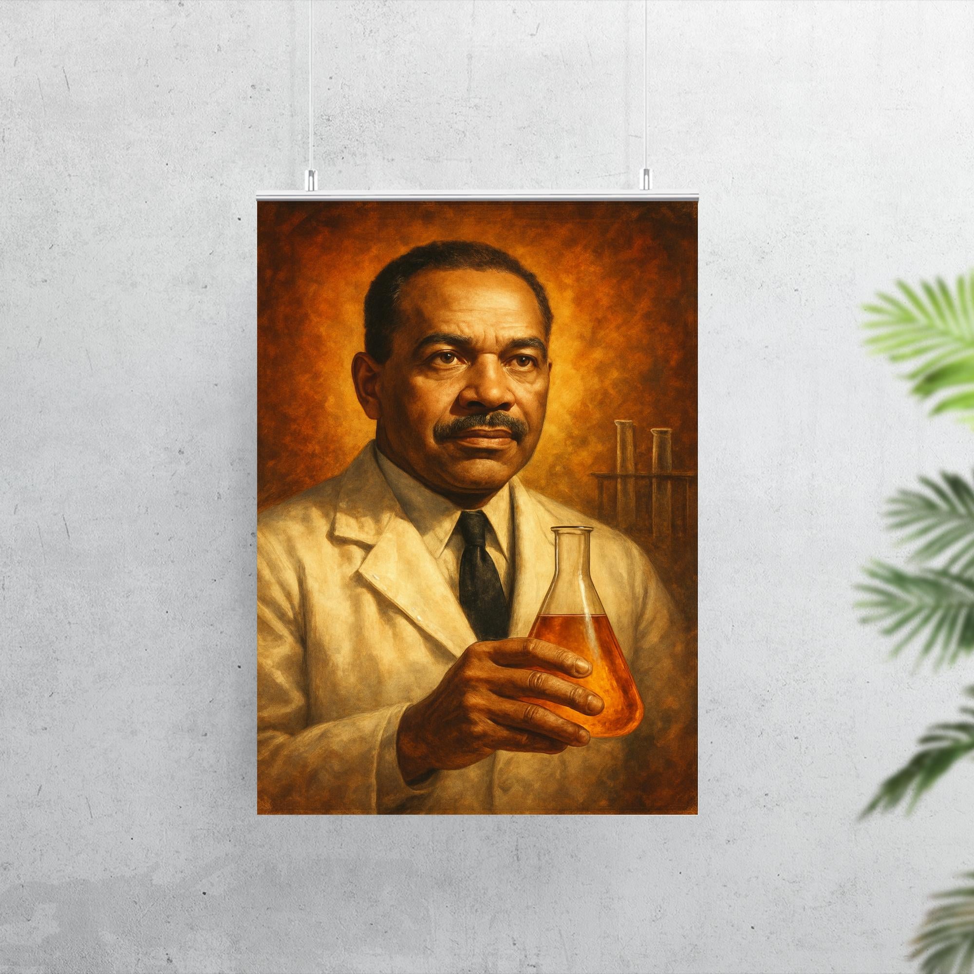 Celebrate the remarkable legacy of Percy Julian, a pioneering chemist whose groundbreaking work transformed medicine and science. This striking poster honors his brilliance and determination, making it a powerful addition to any space that values inspiration and innovation. Perfect for students, educators, and admirers of history’s trailblazers.