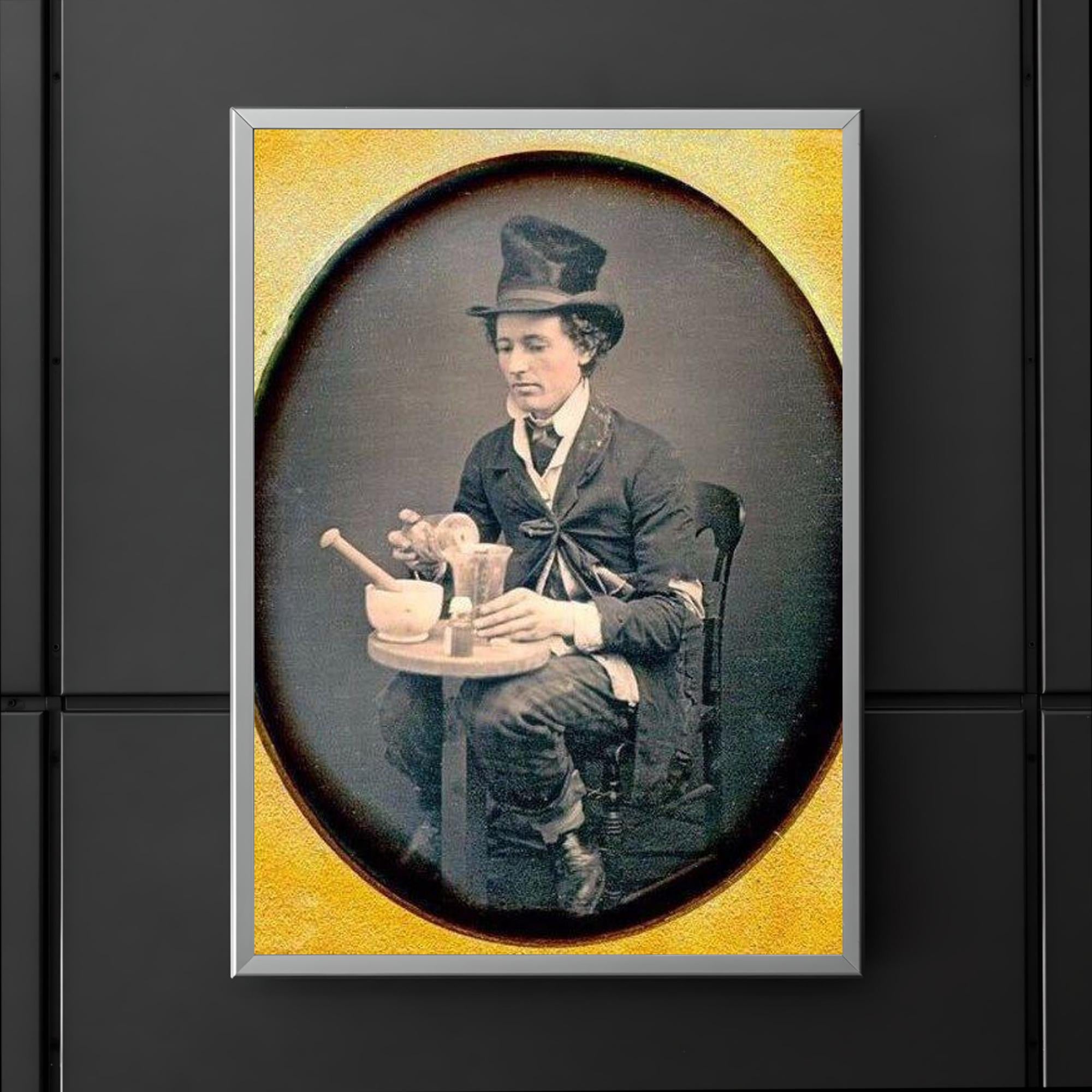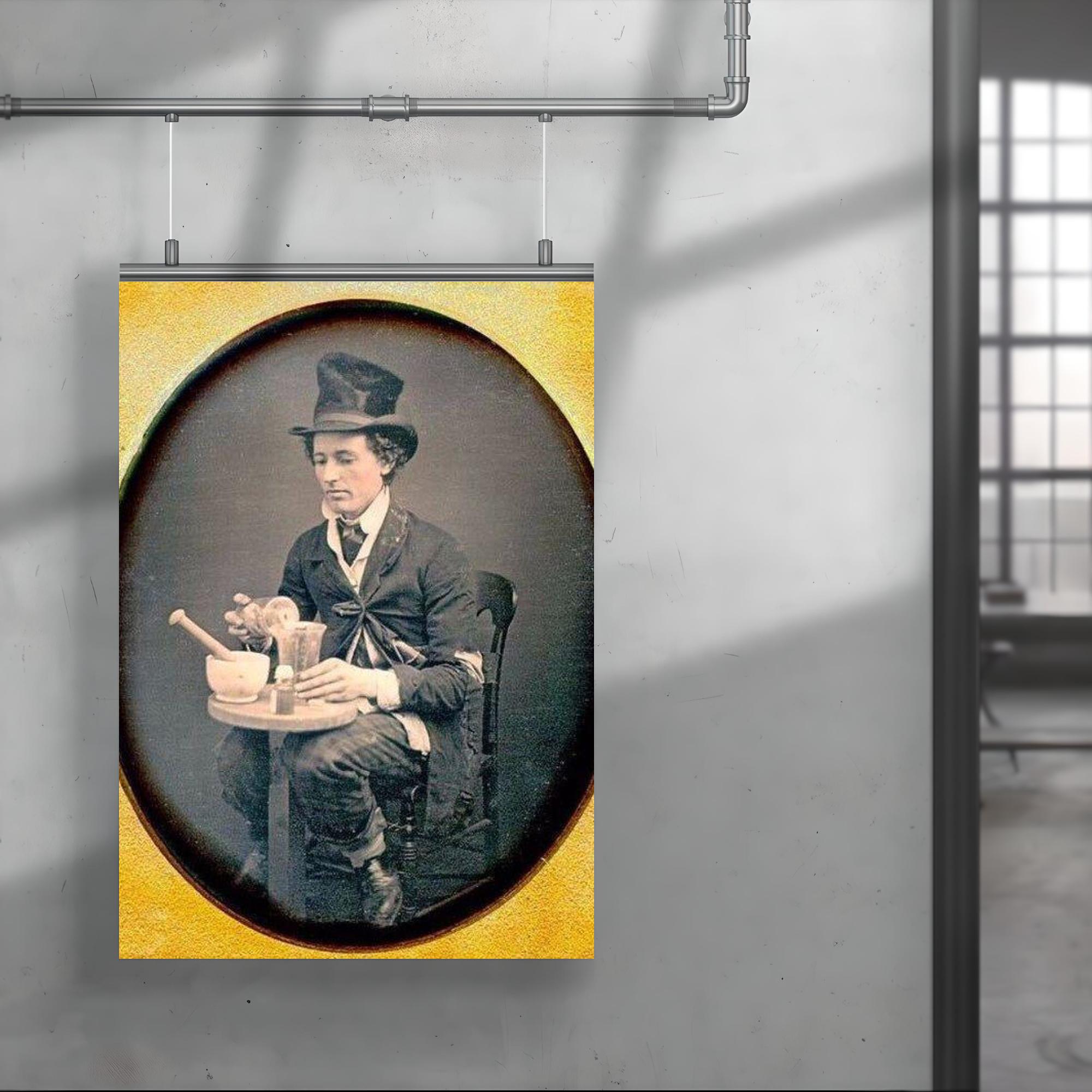 Pharmacist 1855 Vintage Wall Art Poster Print – Antique Chemist Illustration for Pharmacy Decor & Historical Medical Art Gift