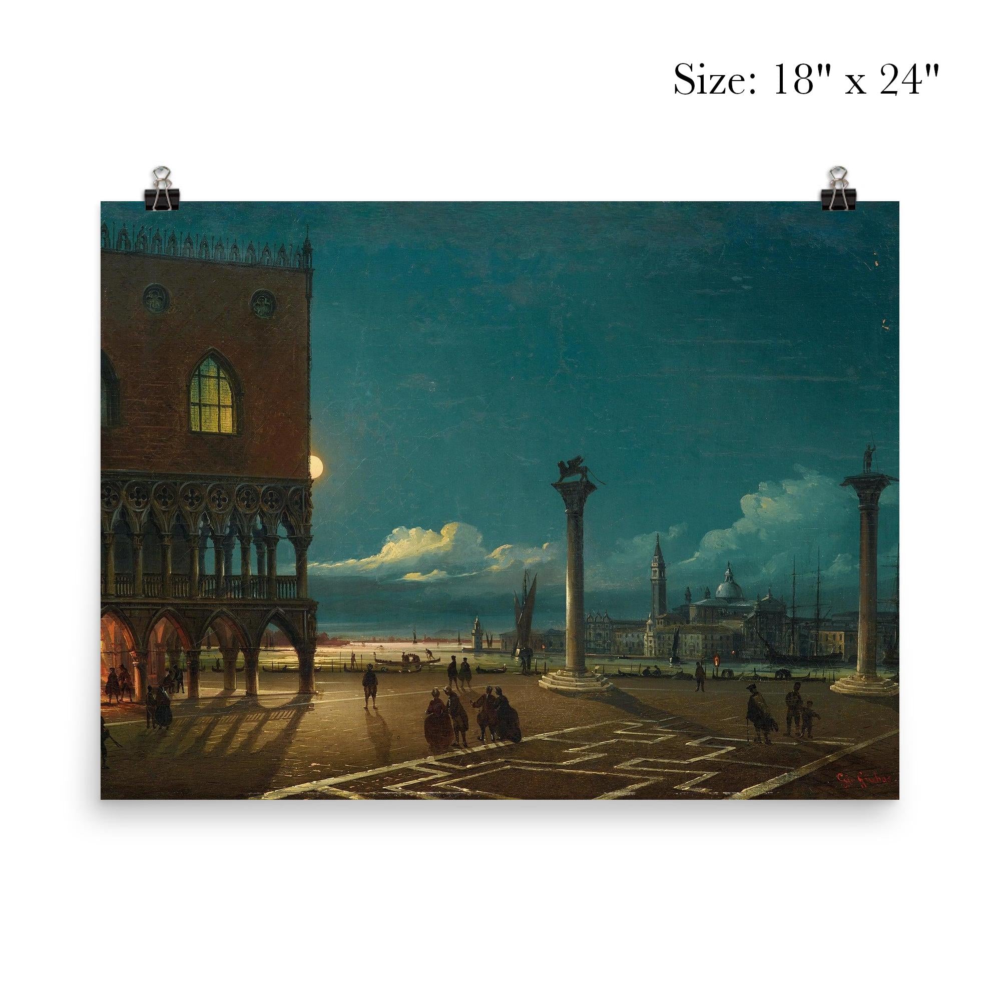 Transform your space with the enchanting glow of "Piazza San Marco by Moonlight, Venice" by Giovanni Grubacs. This poster captures the timeless elegance and serene beauty of Venice’s iconic square bathed in soft moonlight, inviting you to experience a moment of quiet wonder from the comfort of your home. Perfect for art lovers and dreamers alike, it brings a touch of romantic night-time magic to any room.