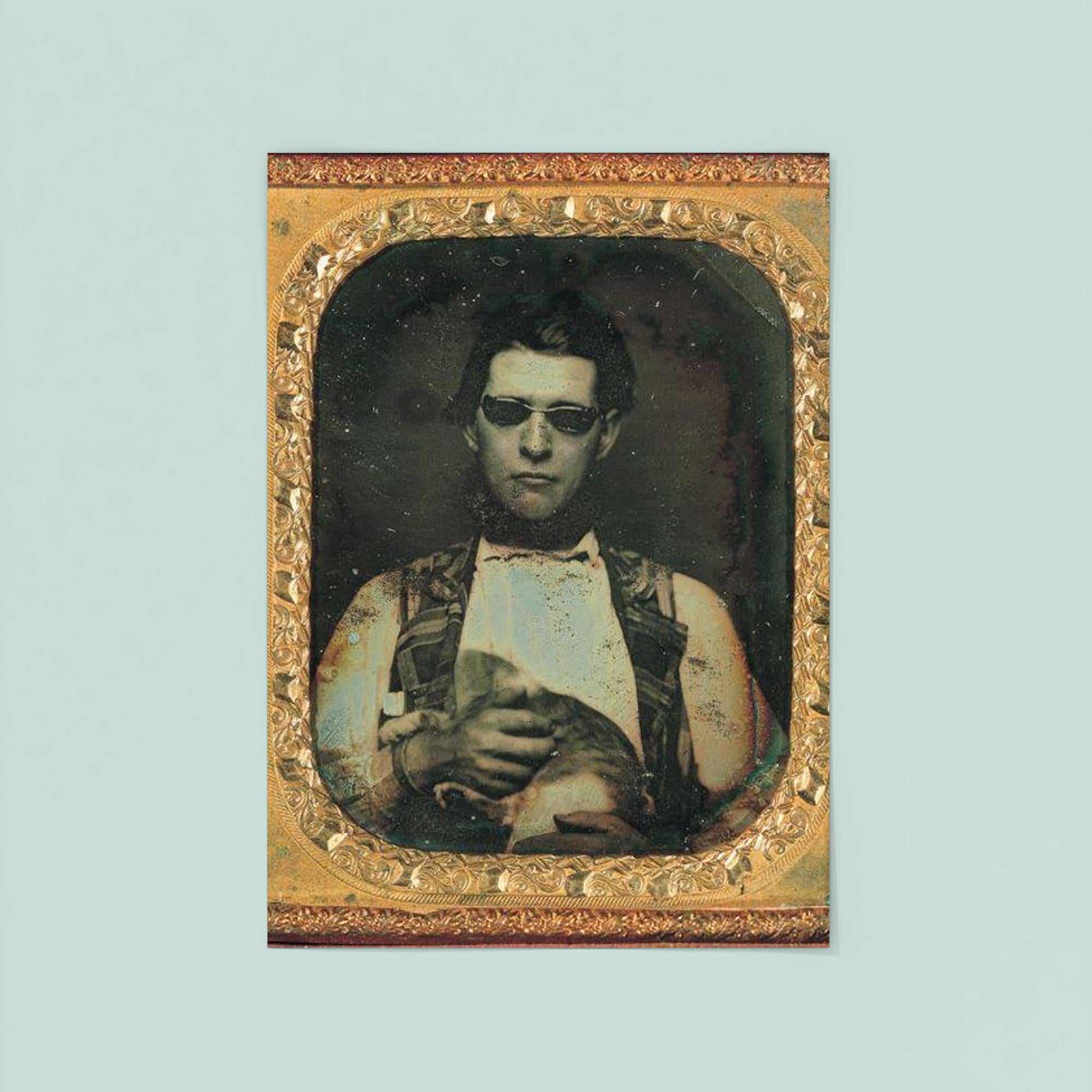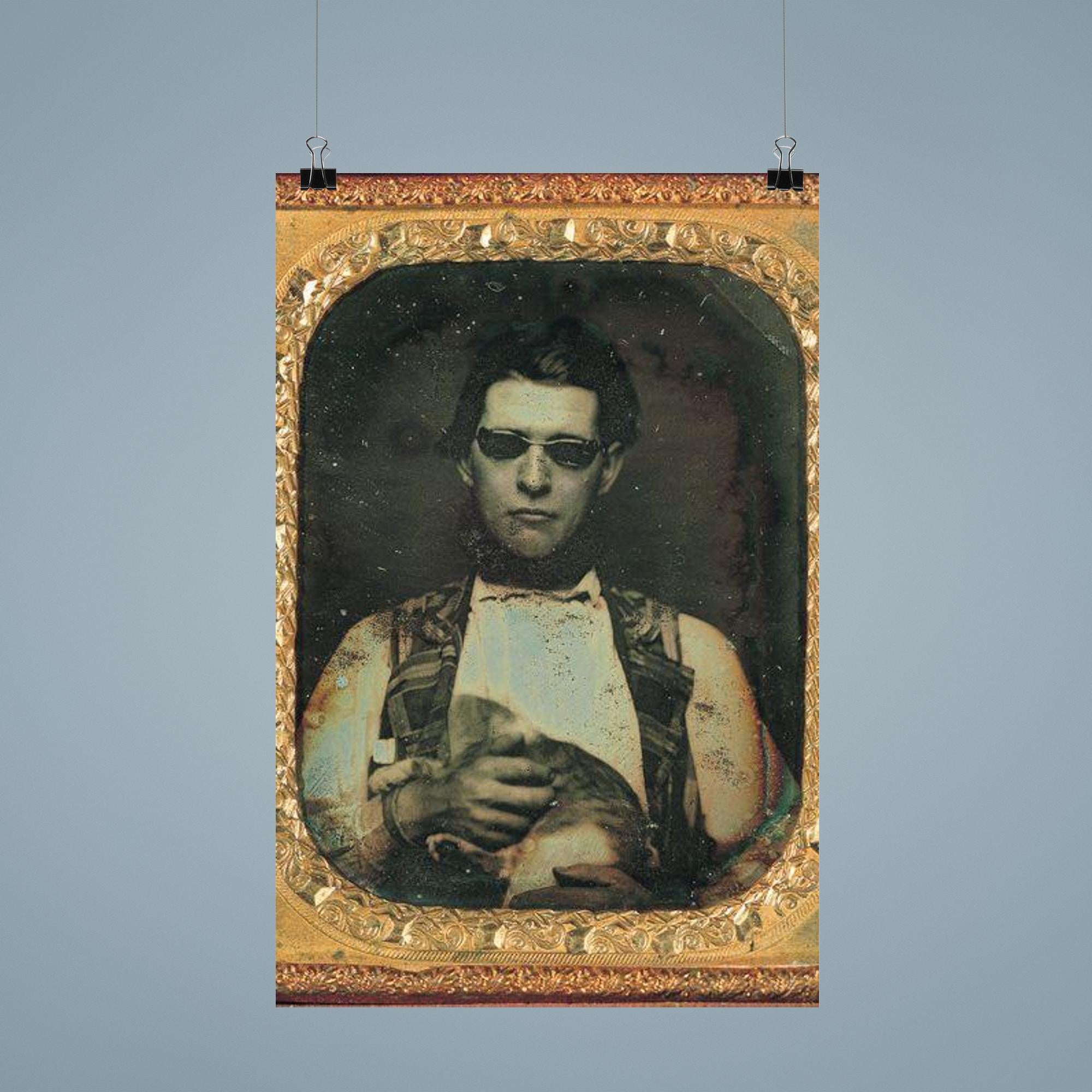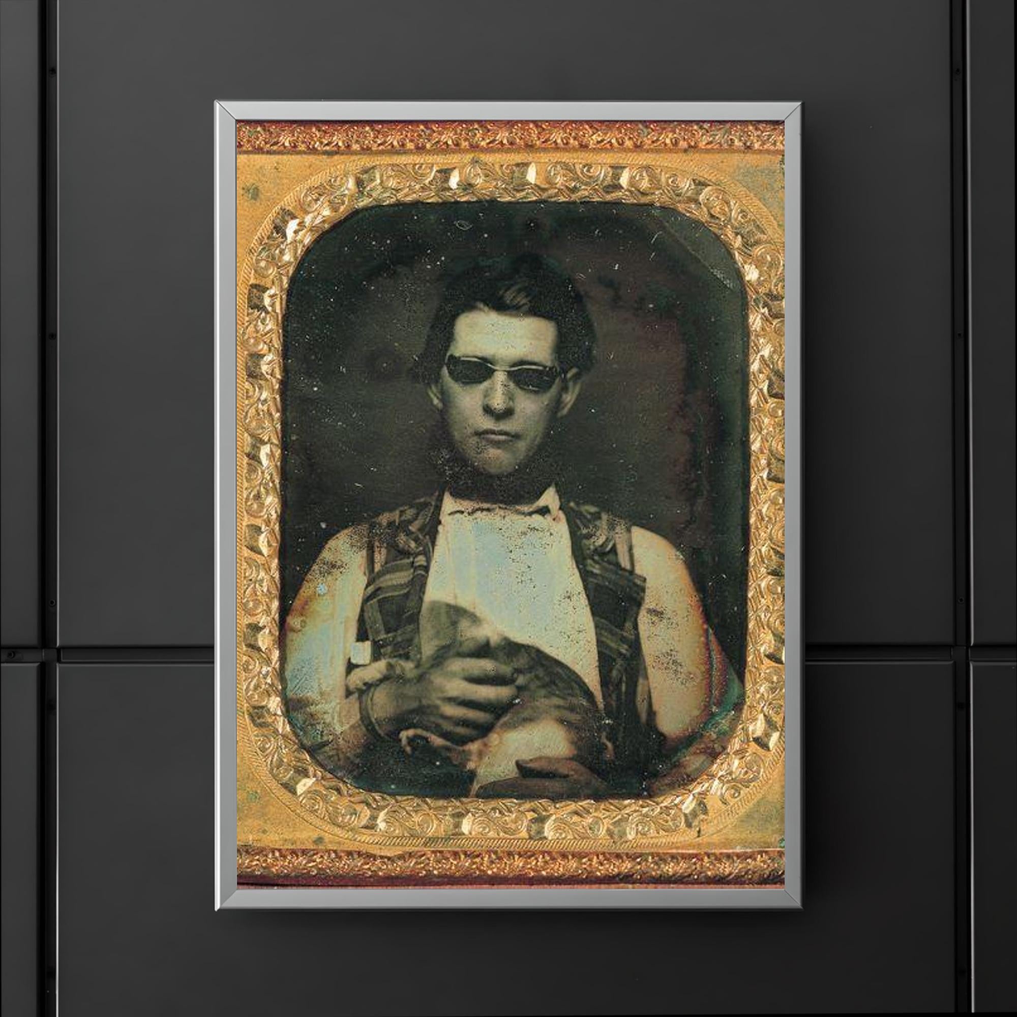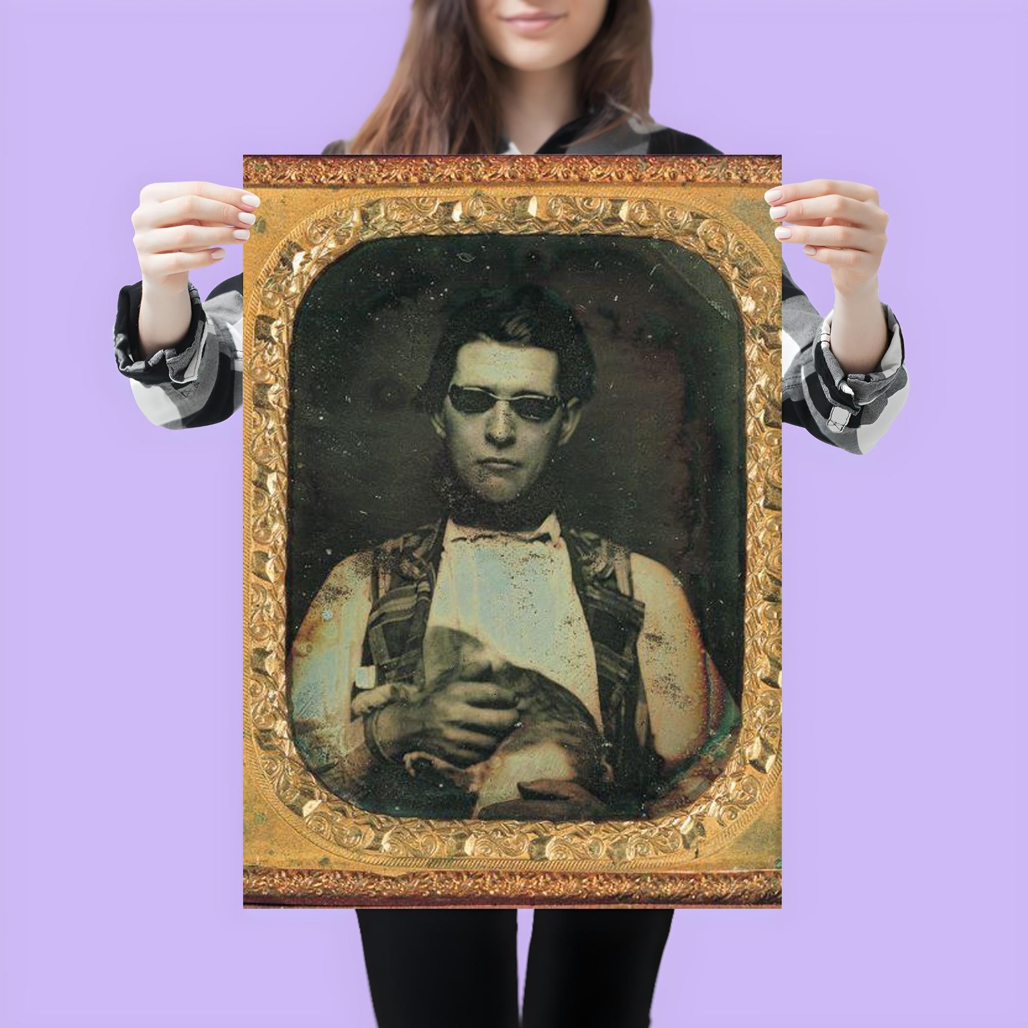 Portrait of a Blind Man Holding a Cat Vintage Poster Print Wall Art c.1850 Classic Victorian Home Decor