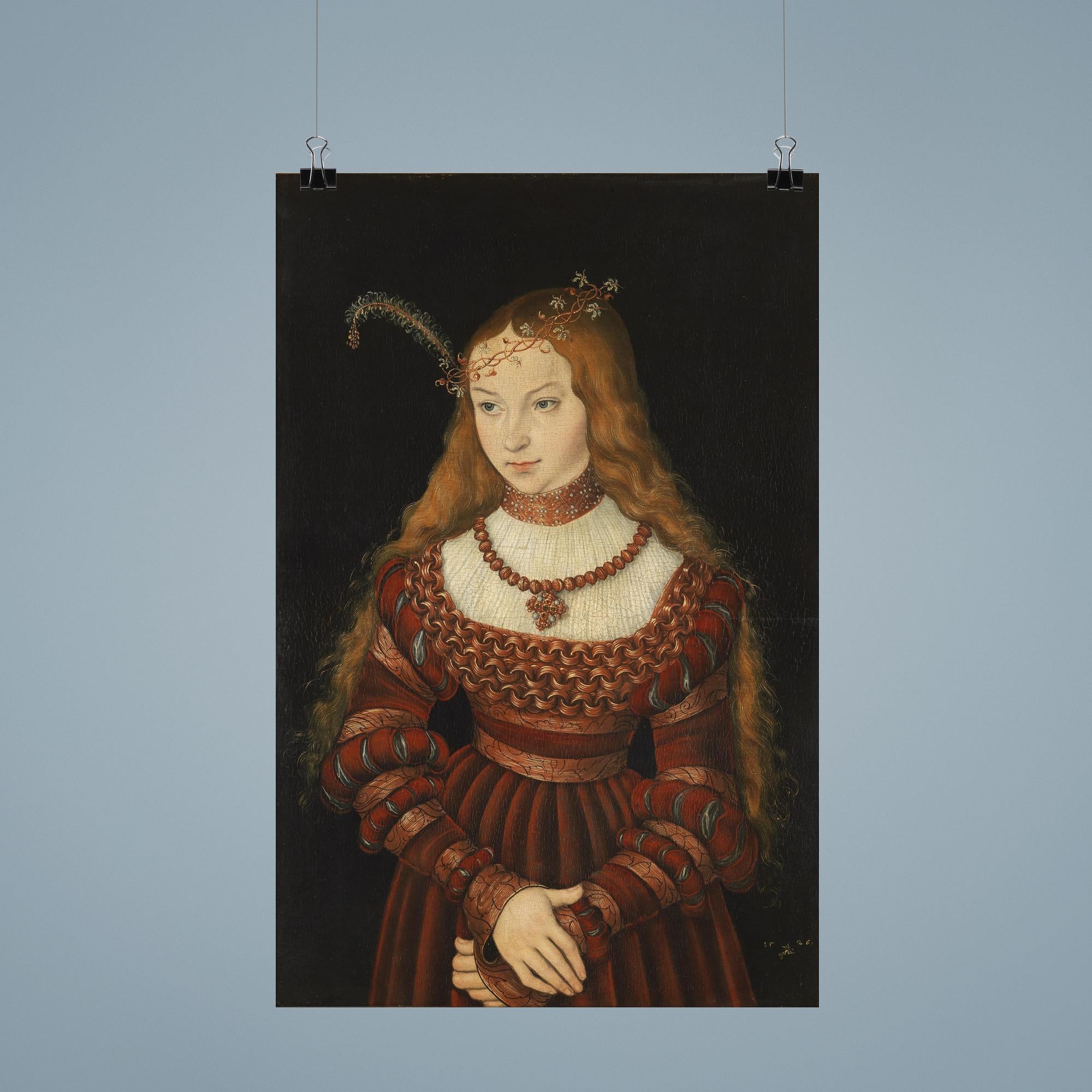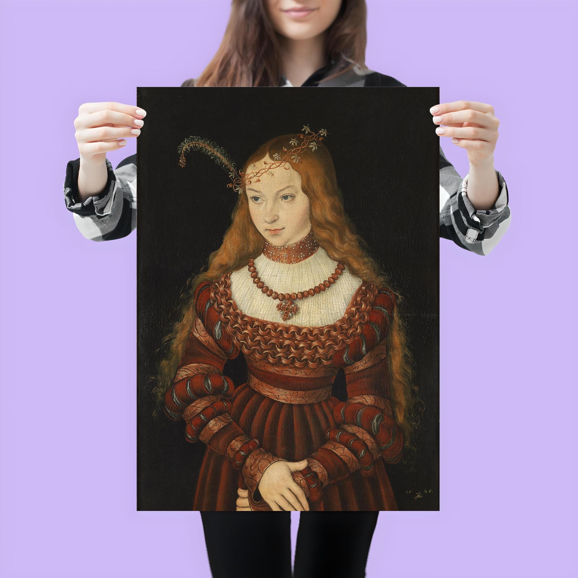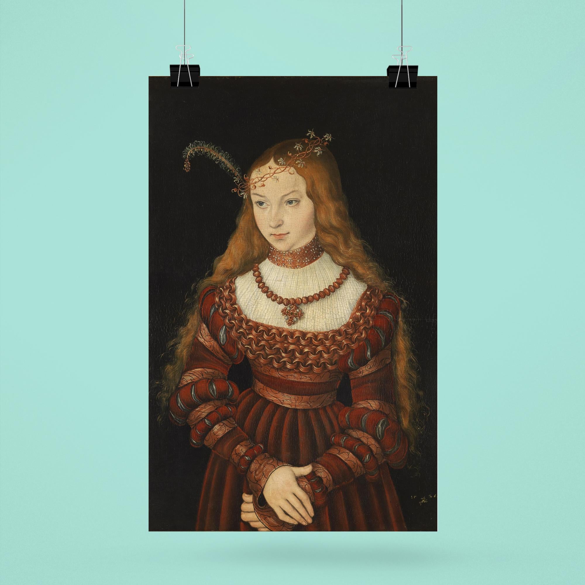 Elevate your space with this timeless poster of Portrait of Princess Sibylle of Cleve by Lucas Cranach the Elder. Capturing the refined elegance and poised grace of Renaissance nobility, this artwork brings a touch of history and artistry to any room. Perfect for lovers of classic portraiture, it invites you to gaze into a moment of serene beauty crafted by one of the era’s master painters.