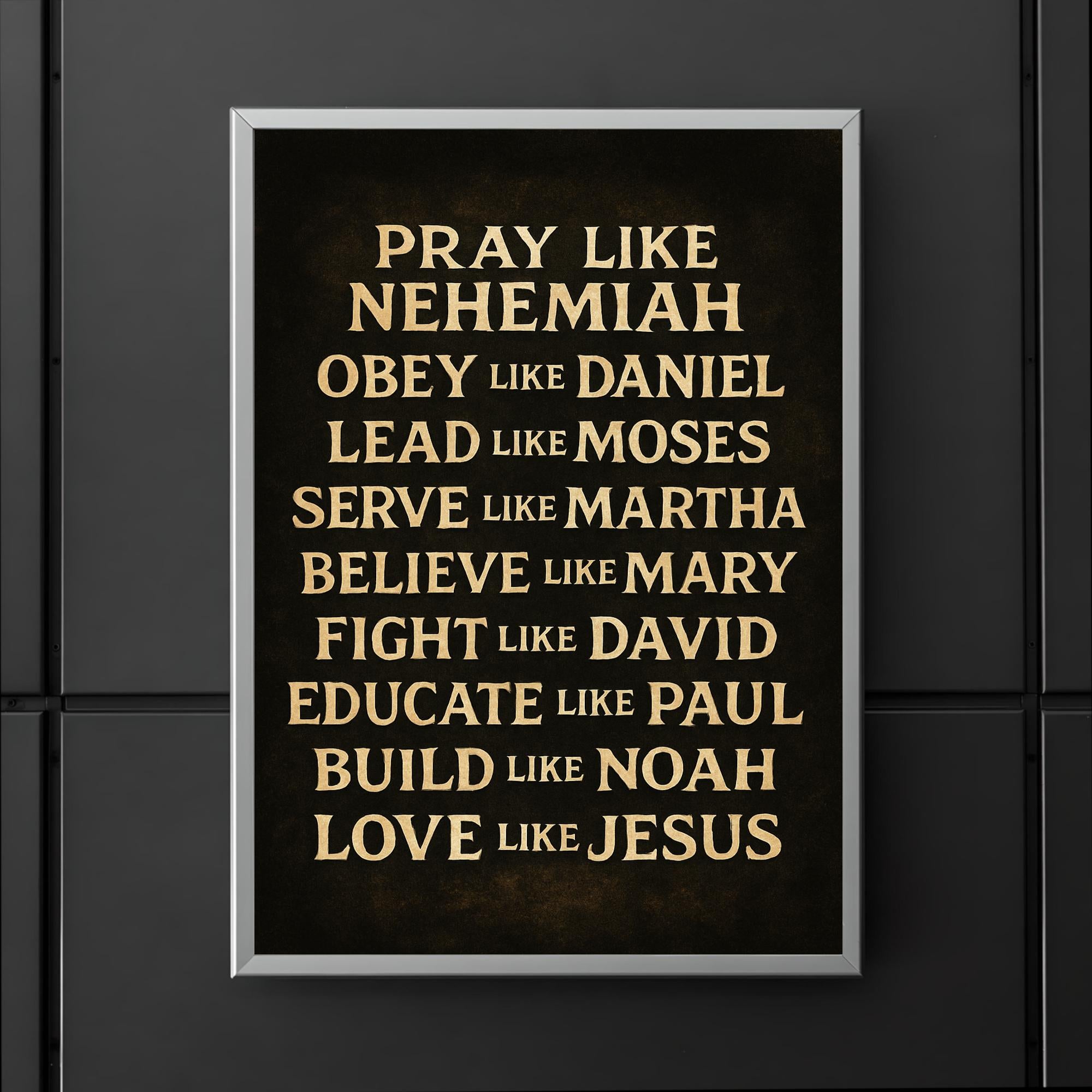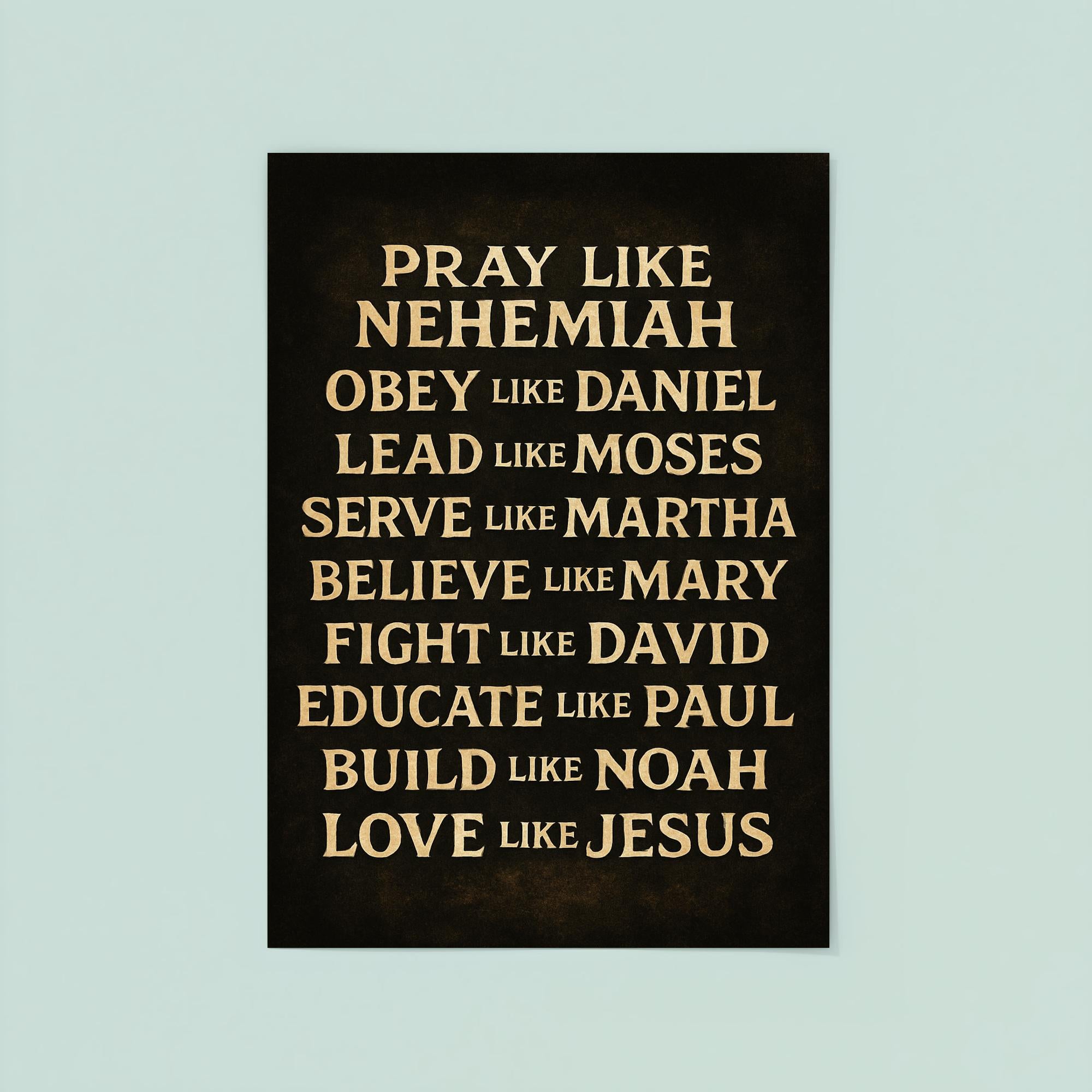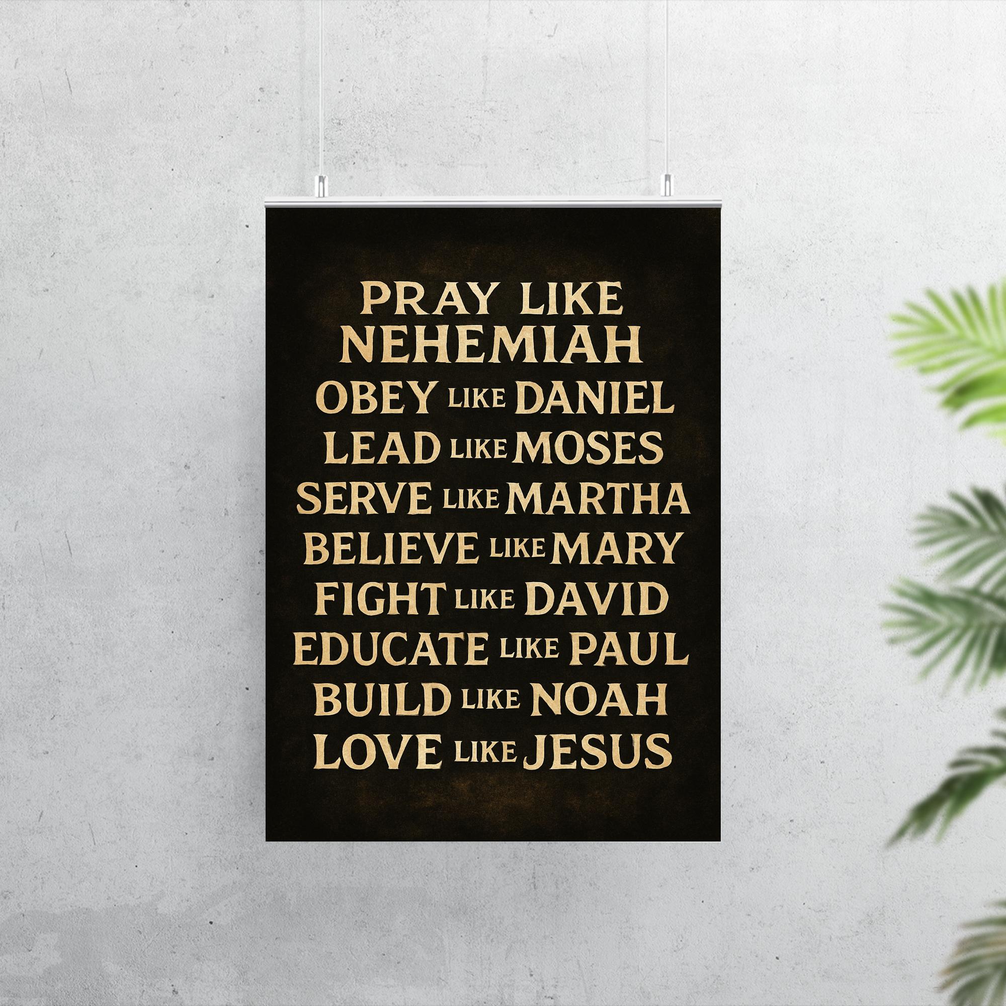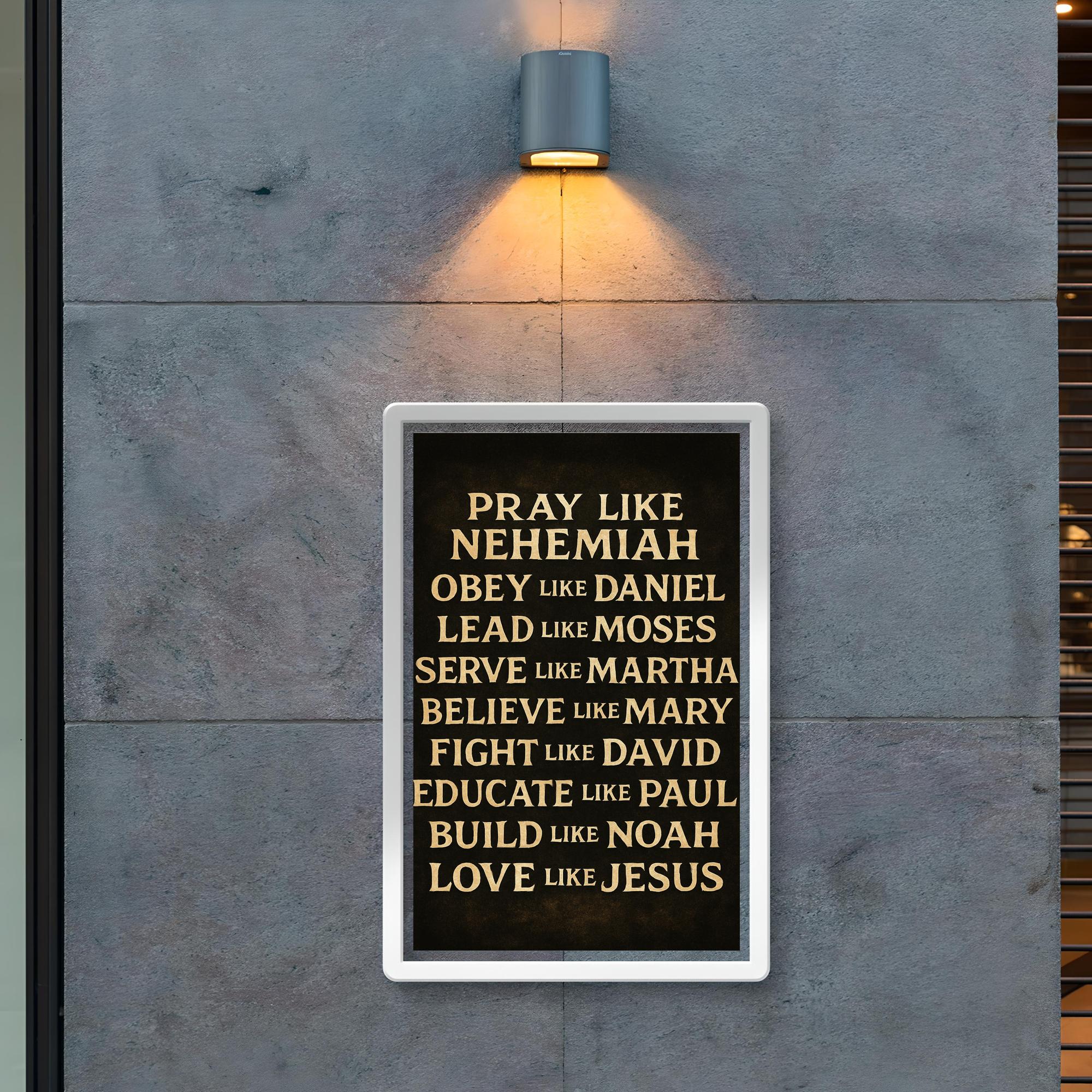 Elevate your space with this inspiring “Pray like Nehemiah, Love like Jesus” wall art—a powerful reminder to lead with faith and compassion every day. Perfect for your home, office, or prayer corner, this uplifting piece invites you to embody strength in prayer and boundless love in action. Let your walls inspire your heart.