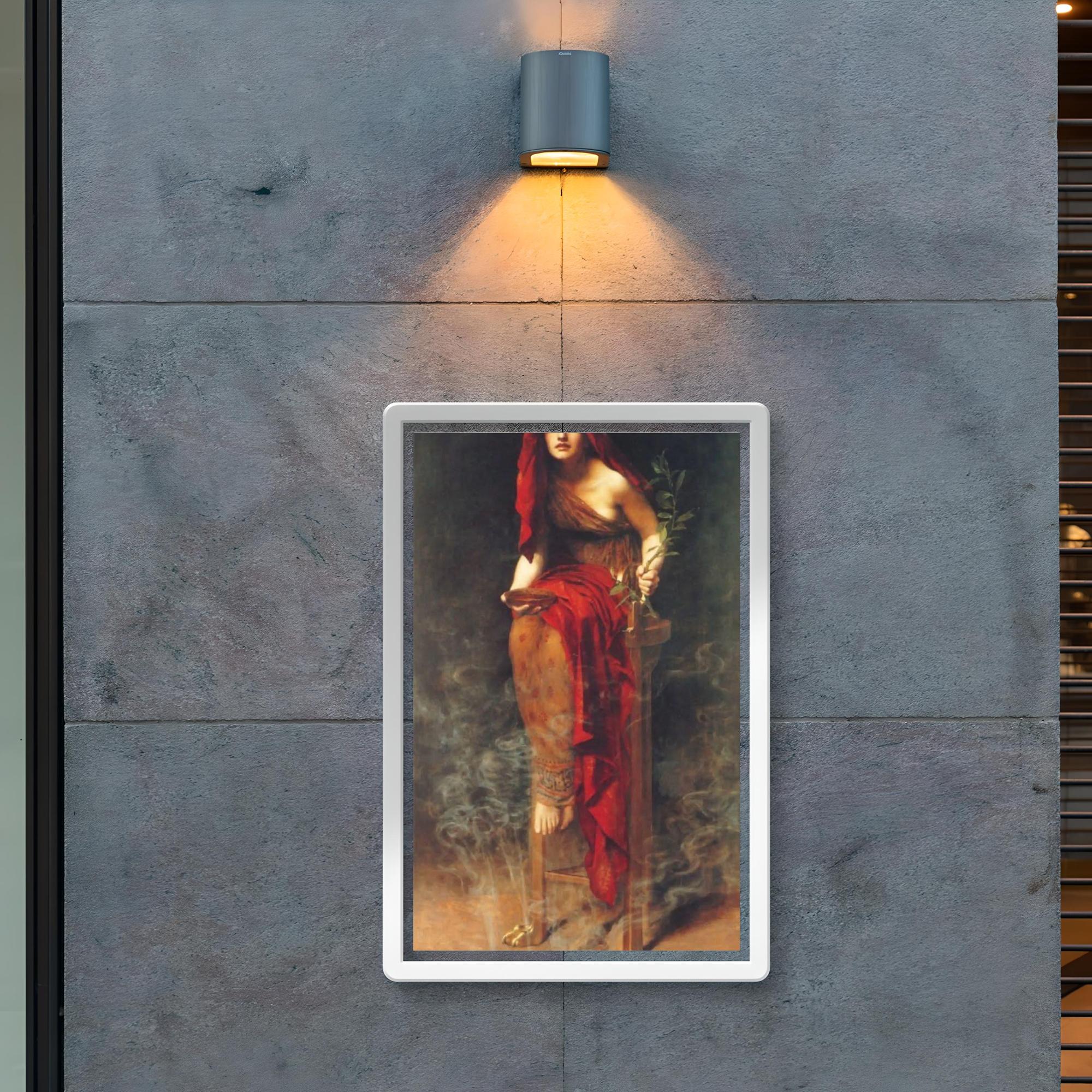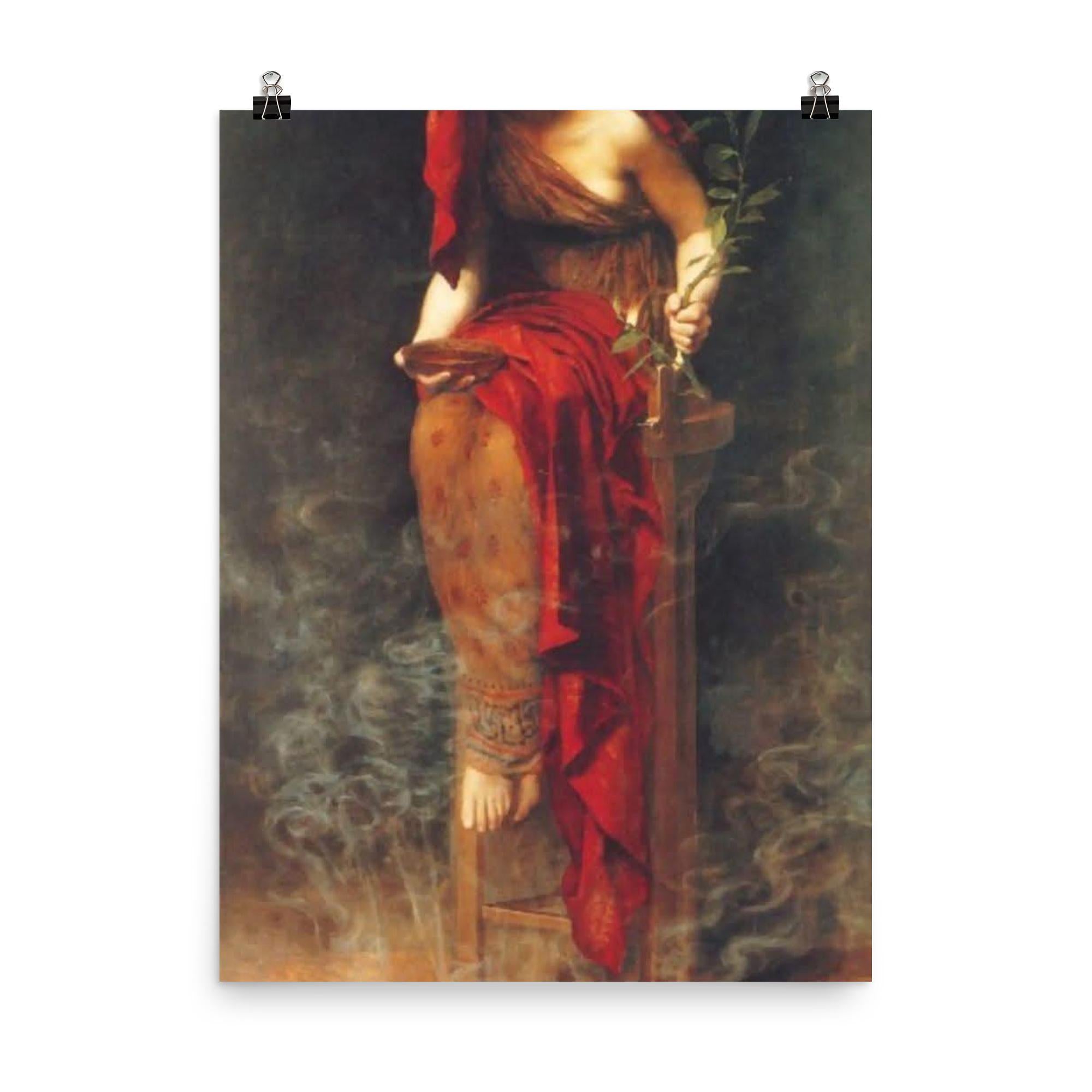 Transform your space with the timeless mystique of "Priestess of Delphi" by John Collier, 1891. This exquisite poster captures the serene intensity and enigmatic aura of one of history’s most revered oracles, inviting contemplation and inspiration into any room. Perfect for lovers of classical art and ancient history, it brings a touch of profound elegance and mystery to your walls.