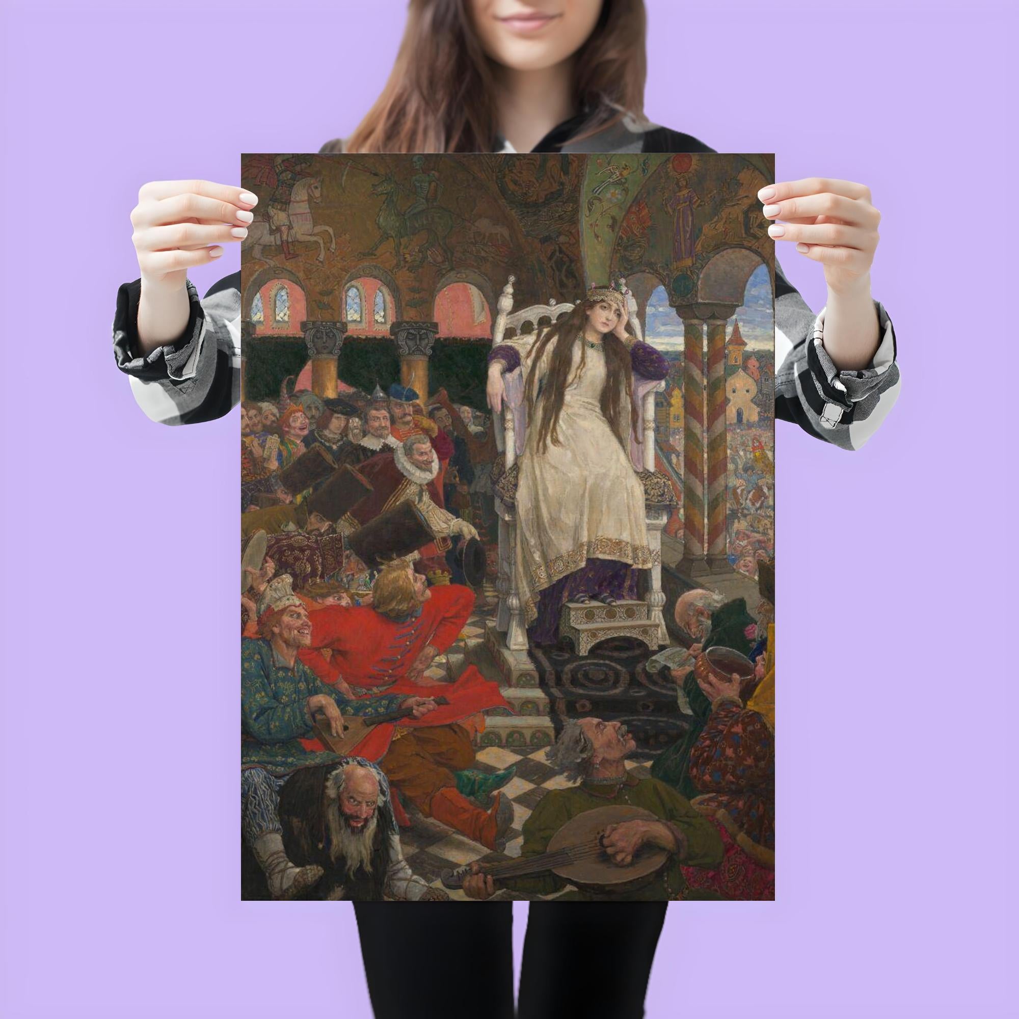 Bring timeless elegance to your space with this stunning poster of Princess Nesmeyana by Viktor Vasnetsov, created in 1916. This masterpiece captures the mystique and grace of the legendary figure with exquisite detail and rich, evocative hues. Perfect for lovers of classic art and Russian folklore, this poster transforms any room into a gallery of cultural heritage and artistic brilliance.