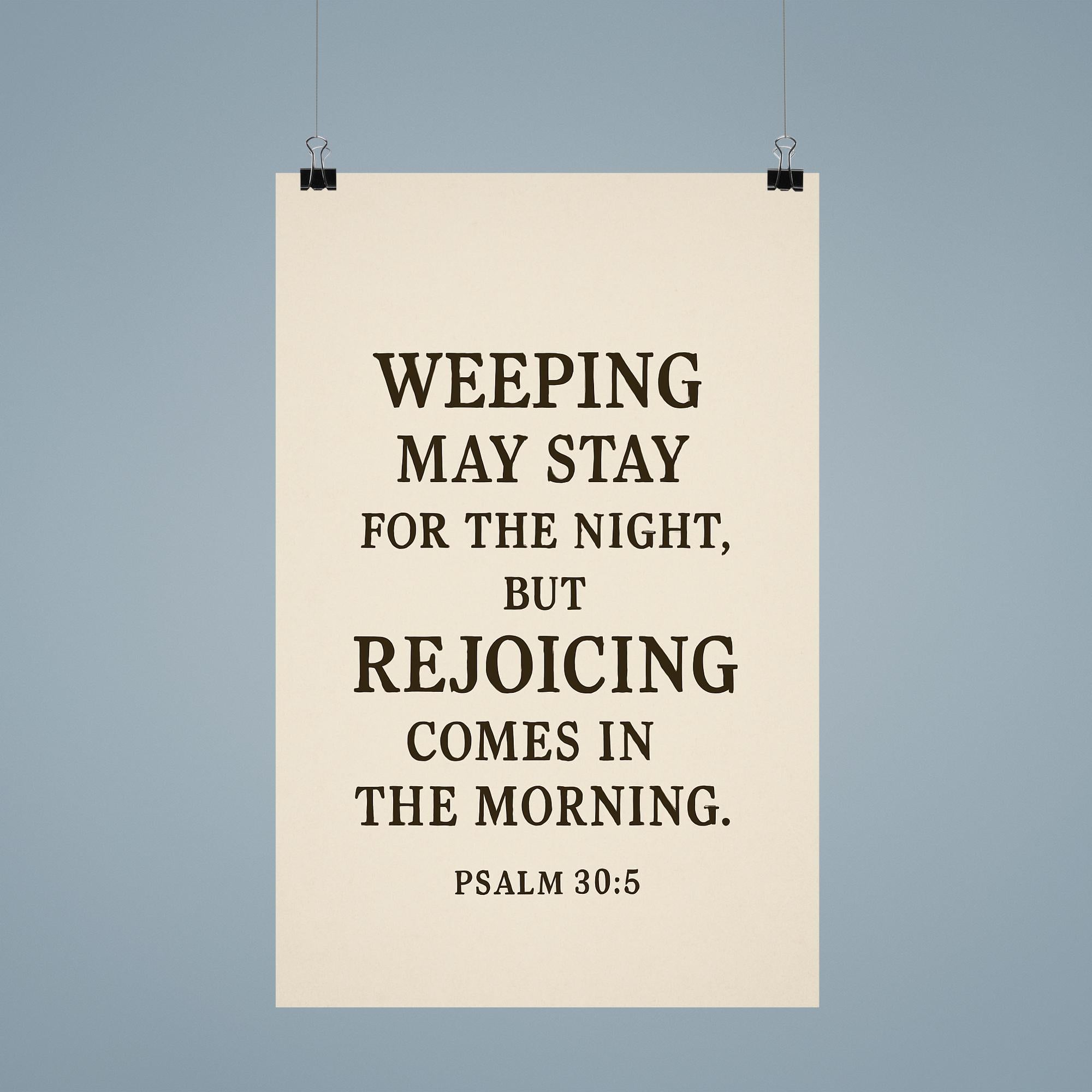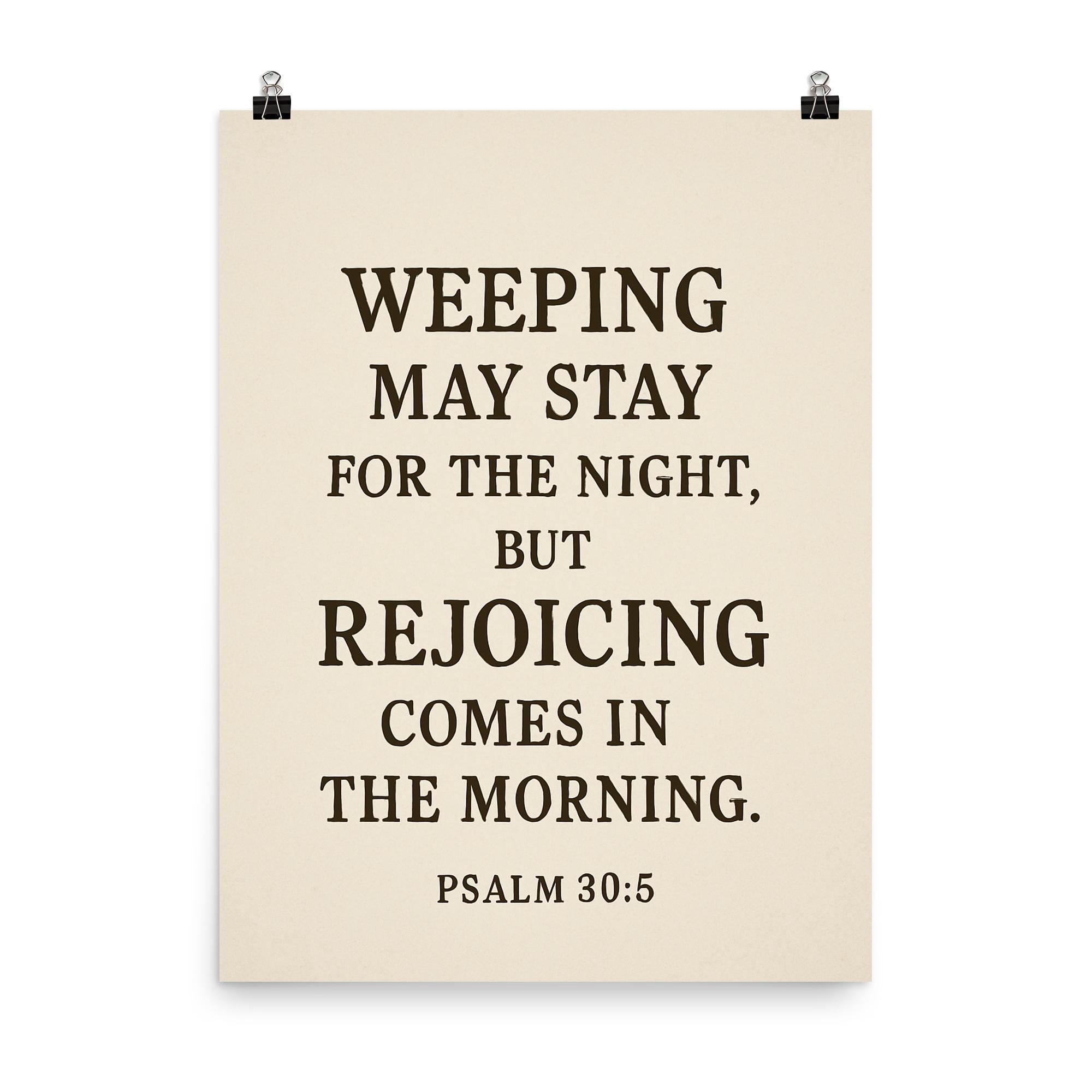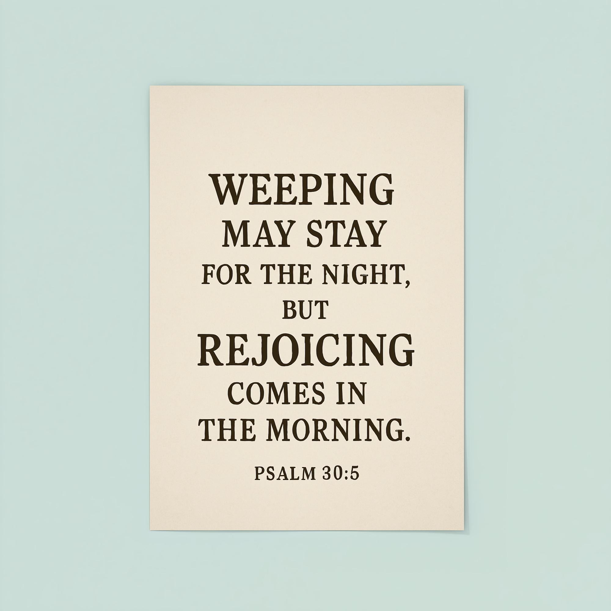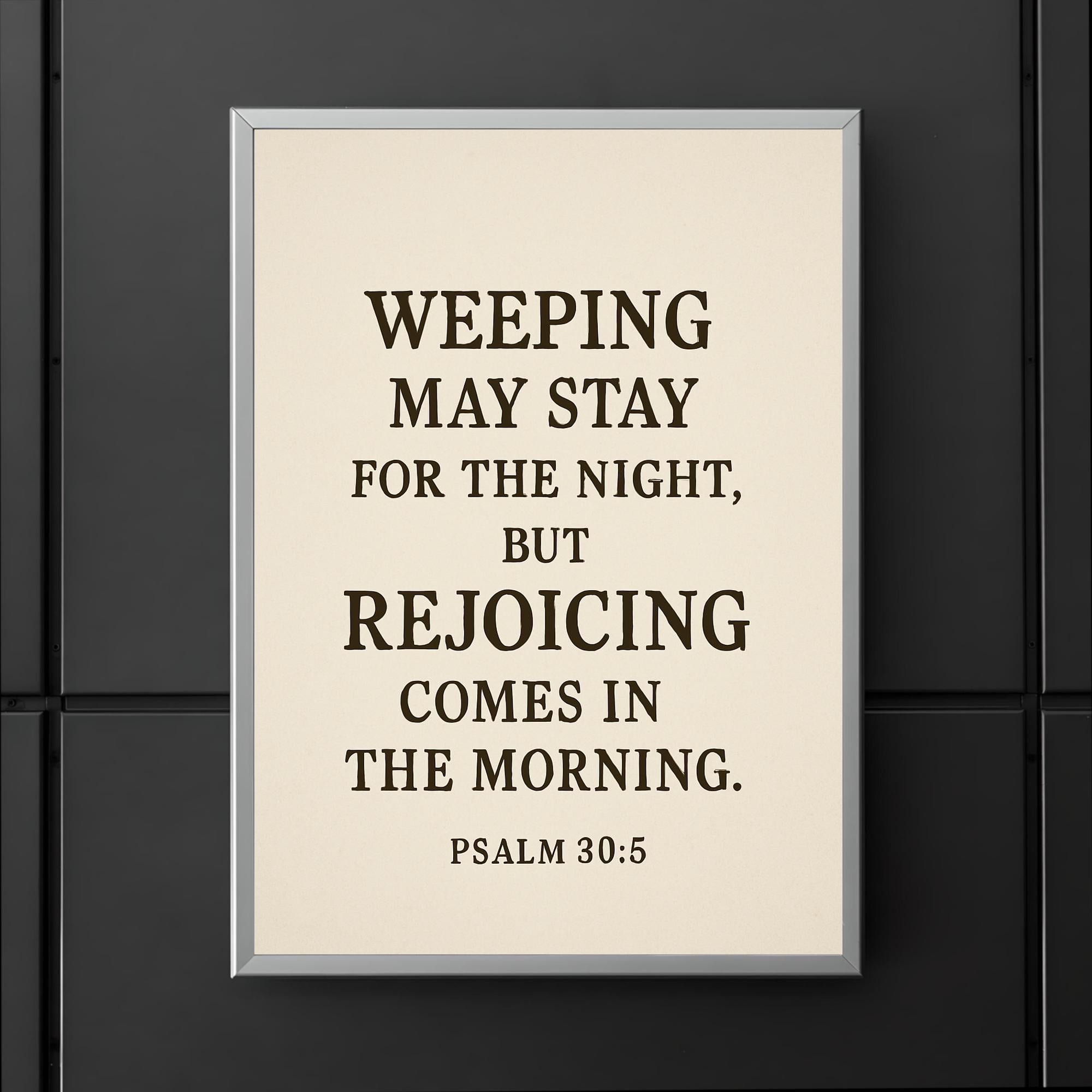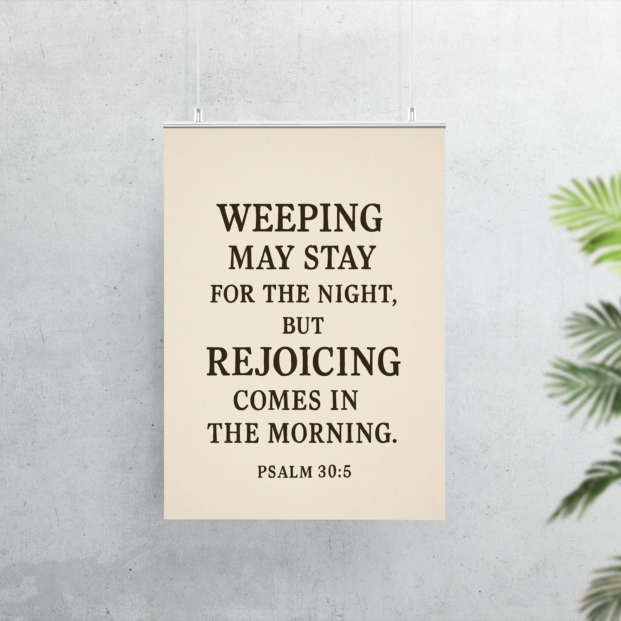 Bring daily encouragement into your space with this inspiring Psalm 305 poster. A powerful reminder that difficult times are temporary, it offers hope and strength with the promise that rejoicing follows the night. Perfect for any room where you seek comfort and motivation to face the day ahead.