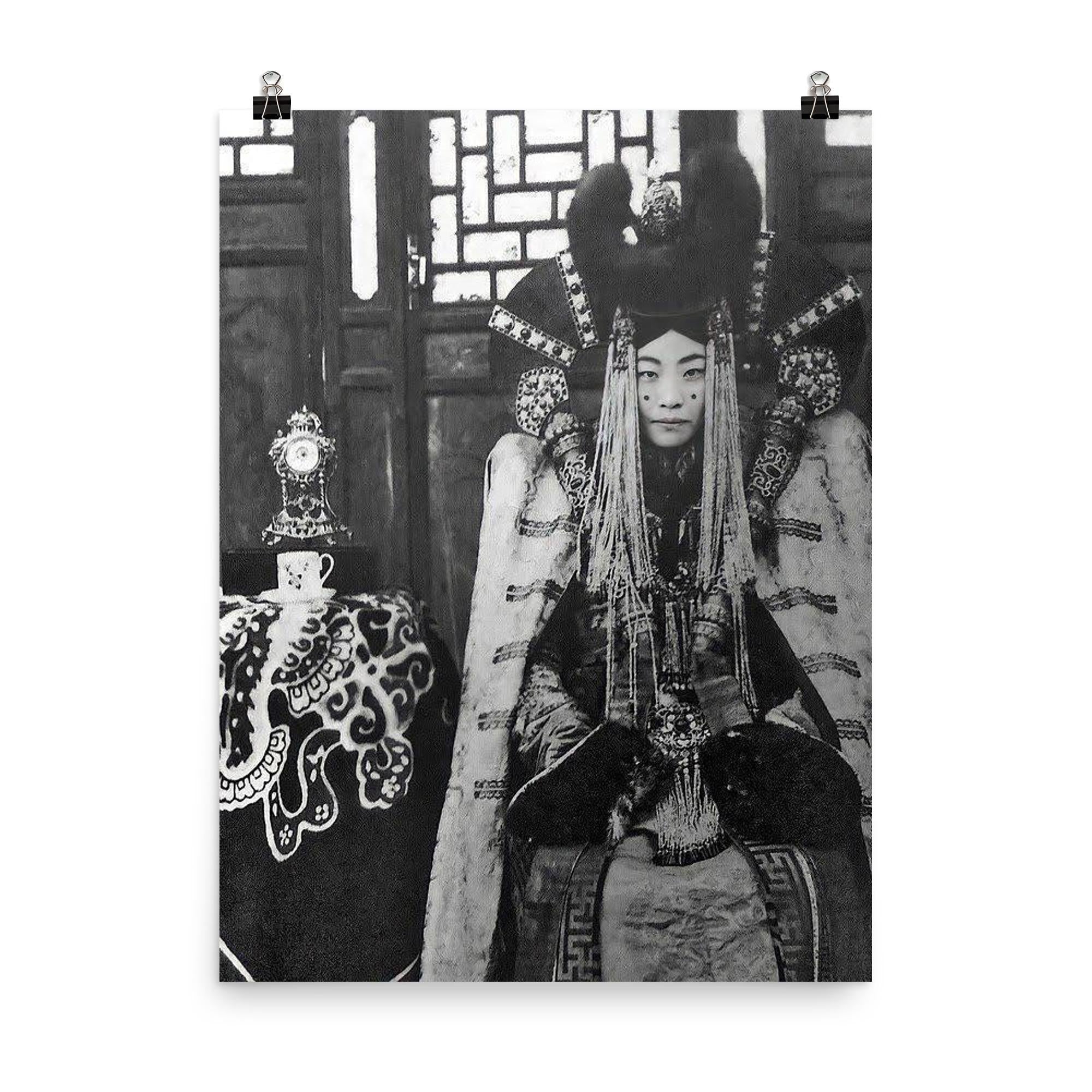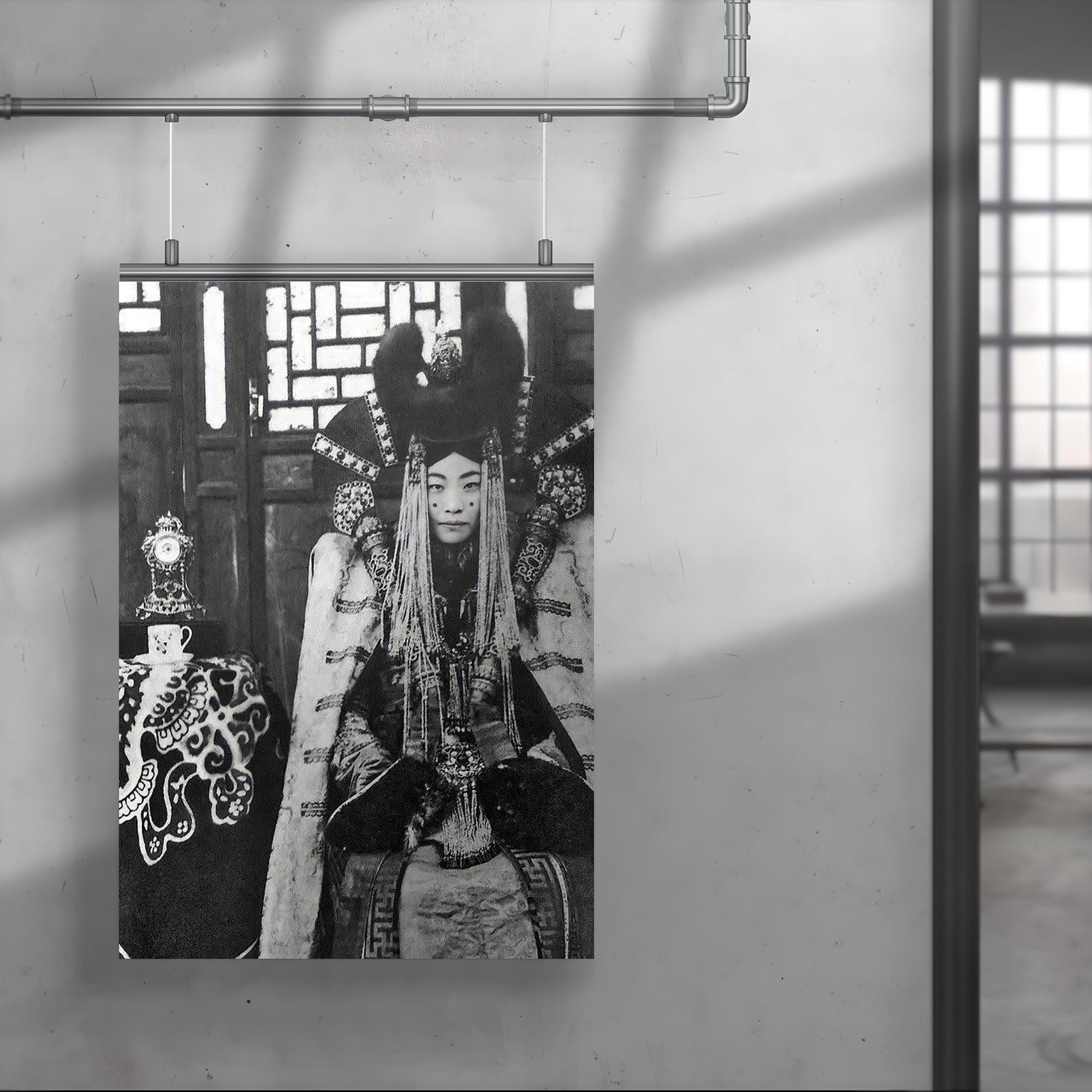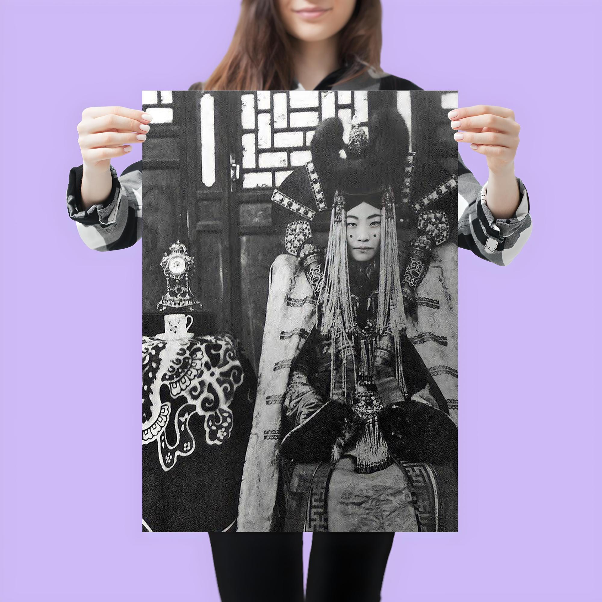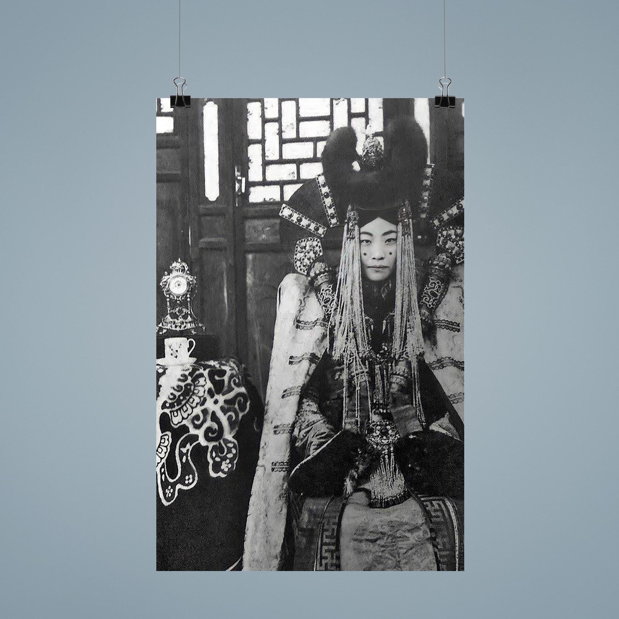 Step into a moment of history with this stunning poster of Queen Consort Genepil of Mongolia, 1923. This rare and evocative piece captures the grace and dignity of a remarkable figure at a pivotal time, making it a powerful addition to any collection of historical or cultural art. Perfect for those who appreciate authentic heritage and timeless elegance.