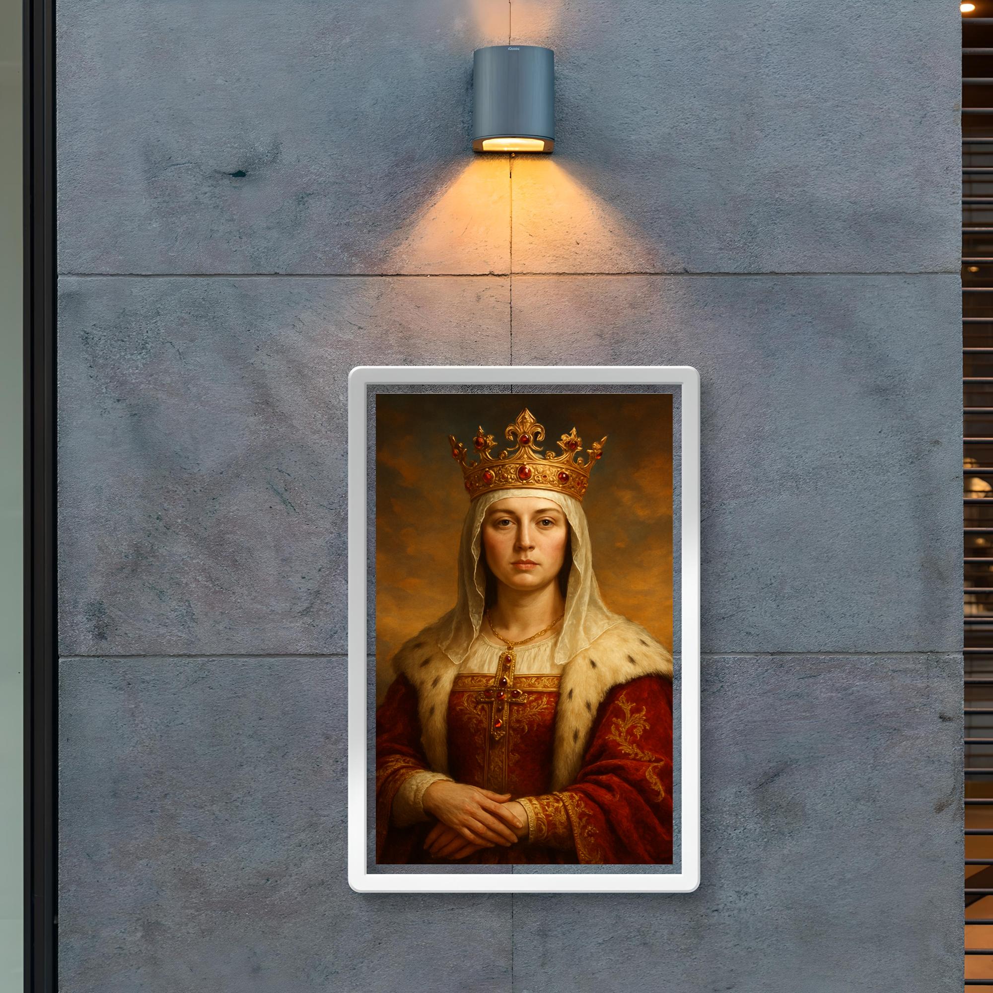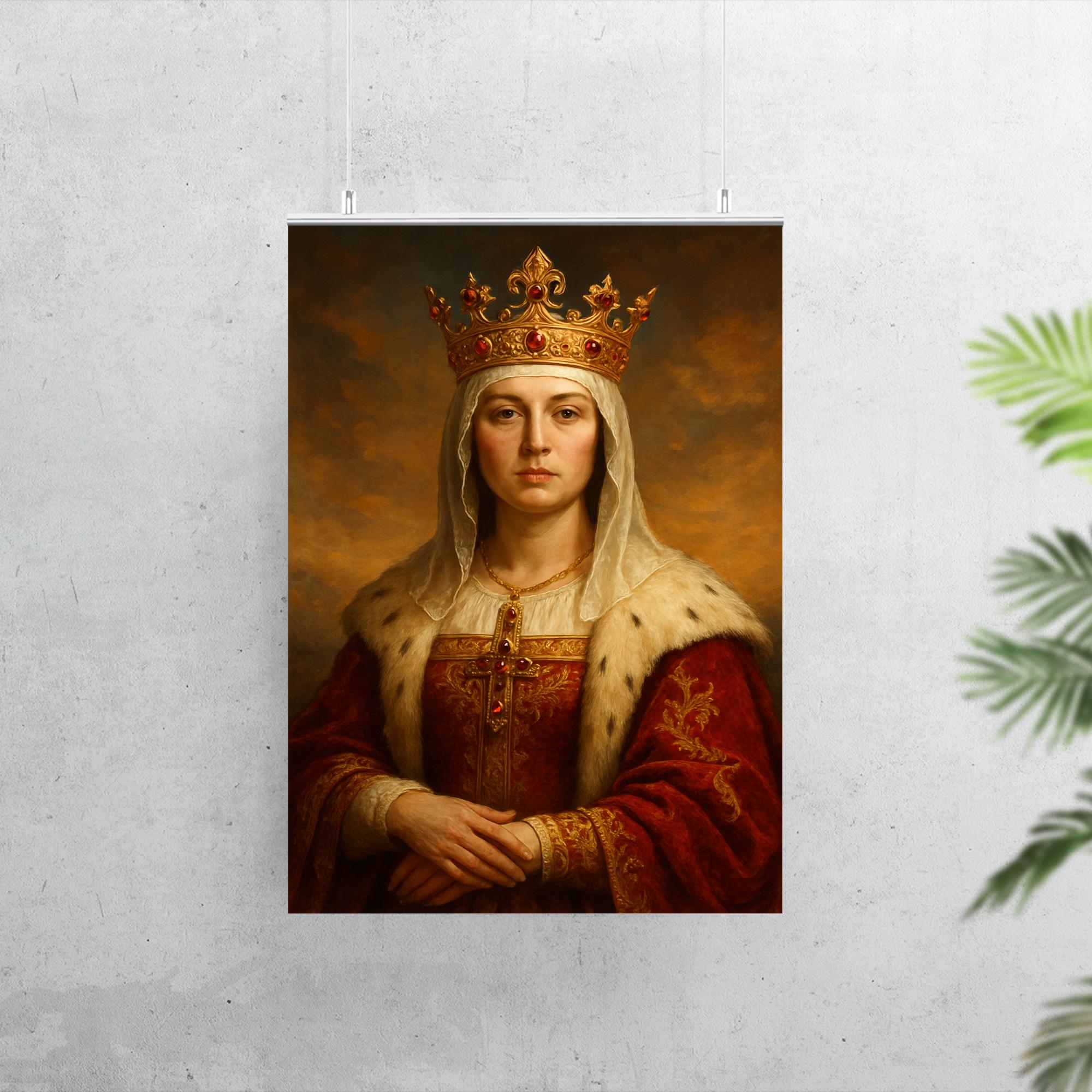 Celebrate the legacy of one of history’s most remarkable queens with this striking poster of Queen Isabella I of Castile. Perfect for history enthusiasts and art lovers alike, this piece brings a timeless symbol of strength, leadership, and vision into your space, inspiring reflection on her enduring impact. Elevate your decor with a portrait that honors a powerful woman's indelible mark on the world.
