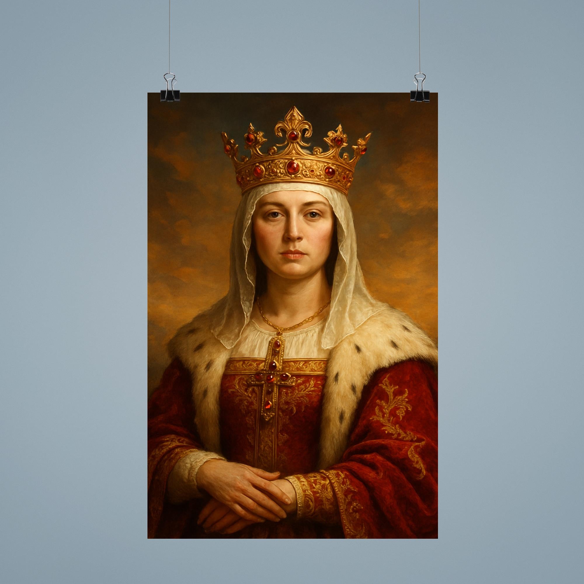 Queen Isabella I of Castile Historical Poster Print – Elegant Wall Art for History Lovers & Royalty Decor – Vintage Spanish Monarch Portrait