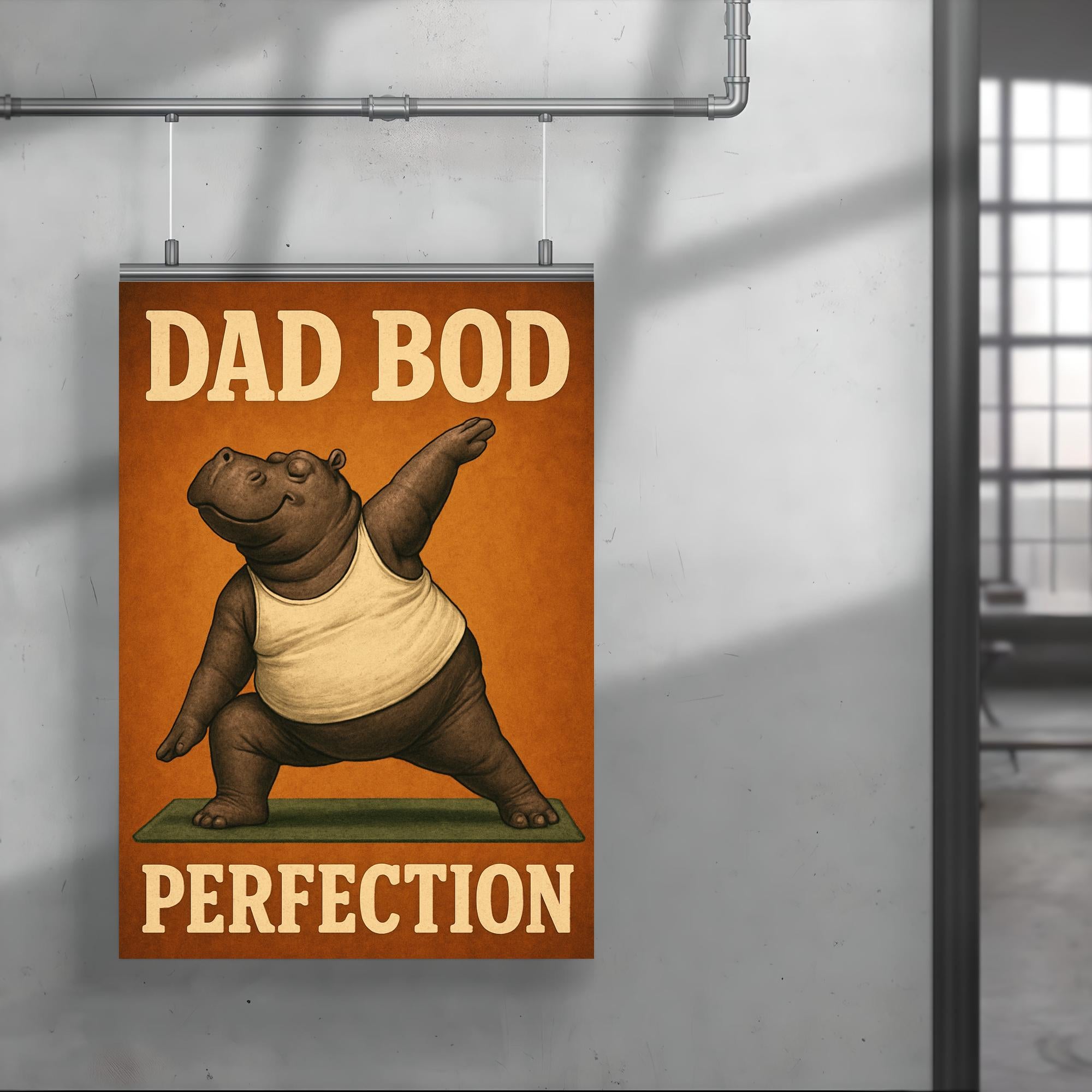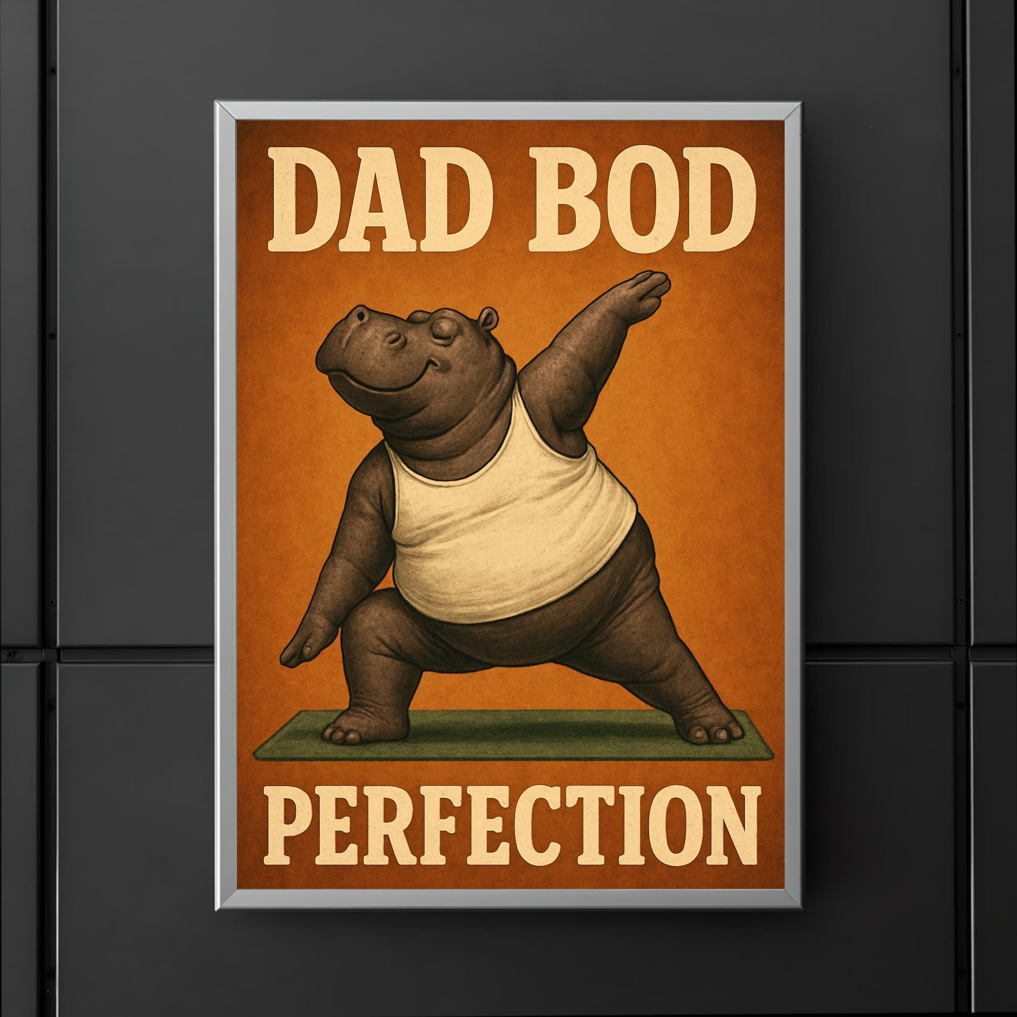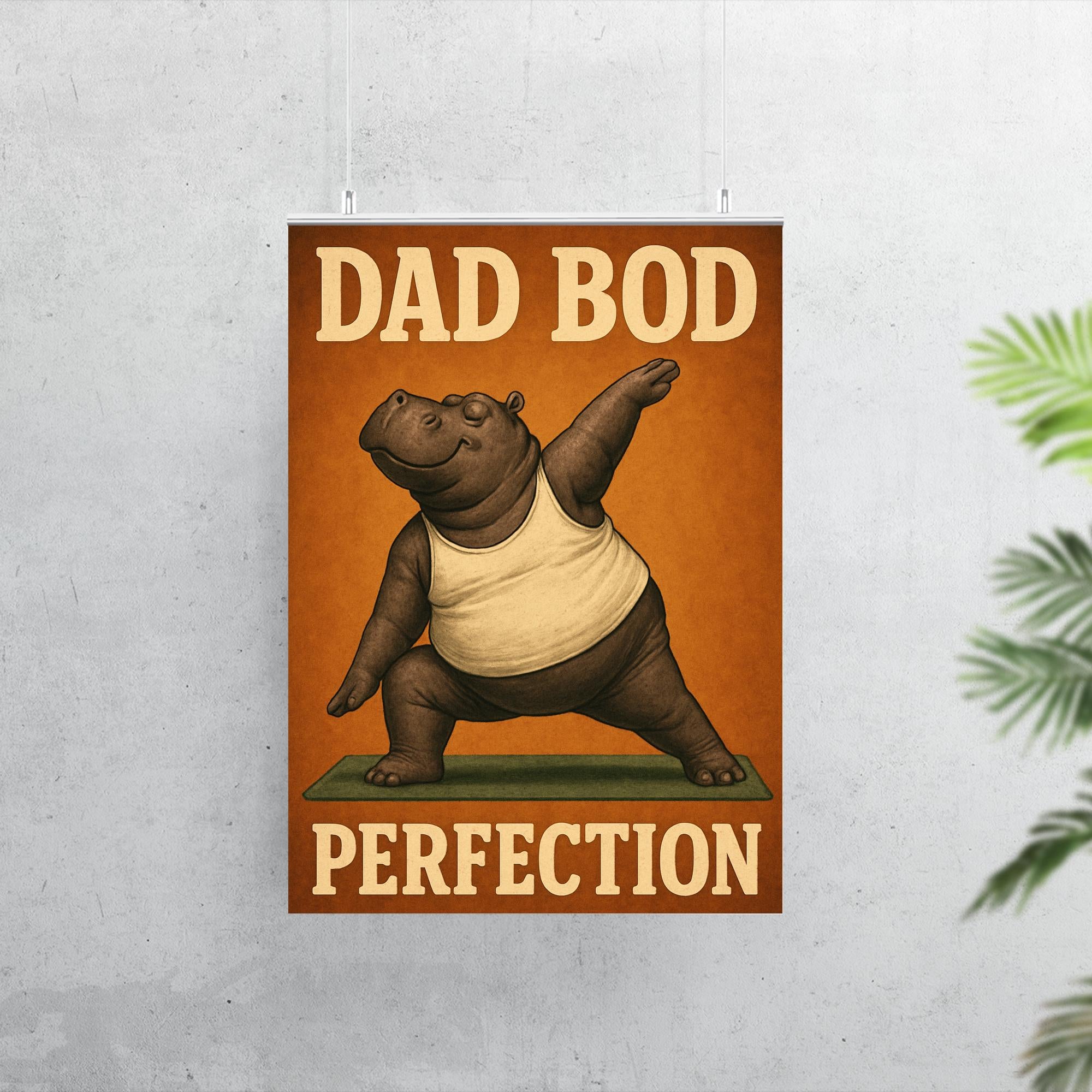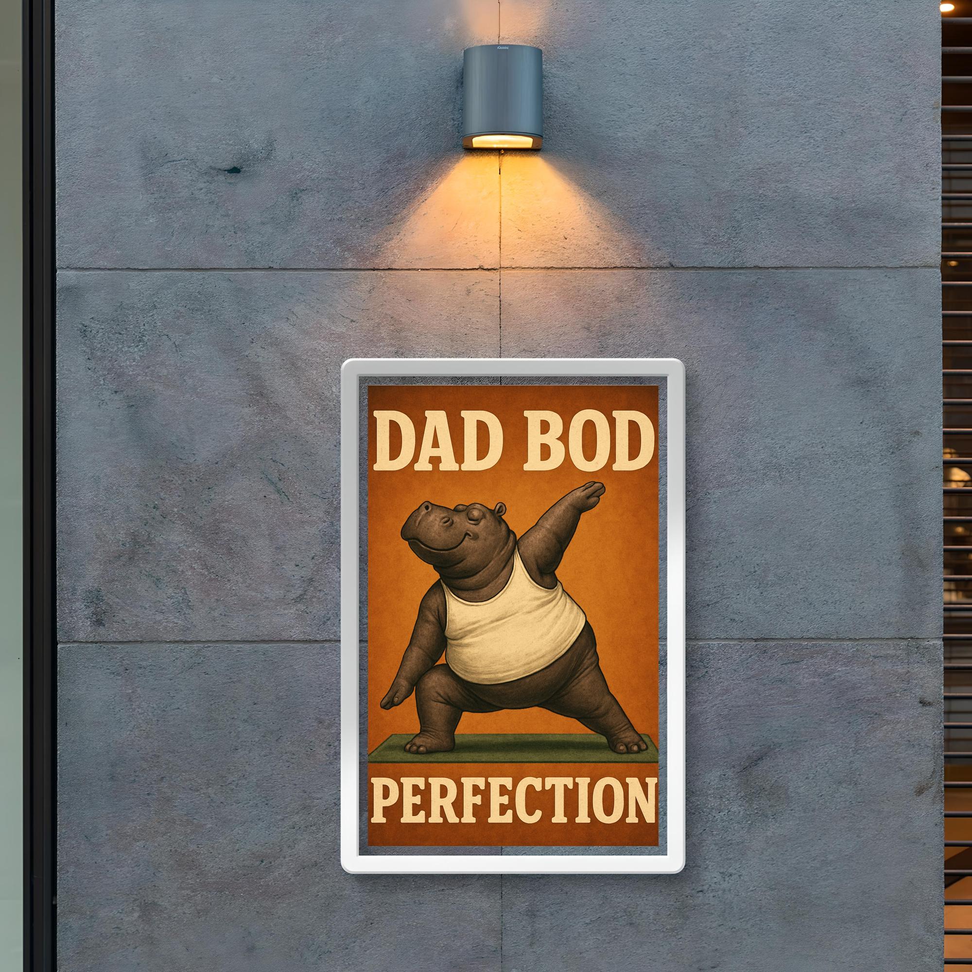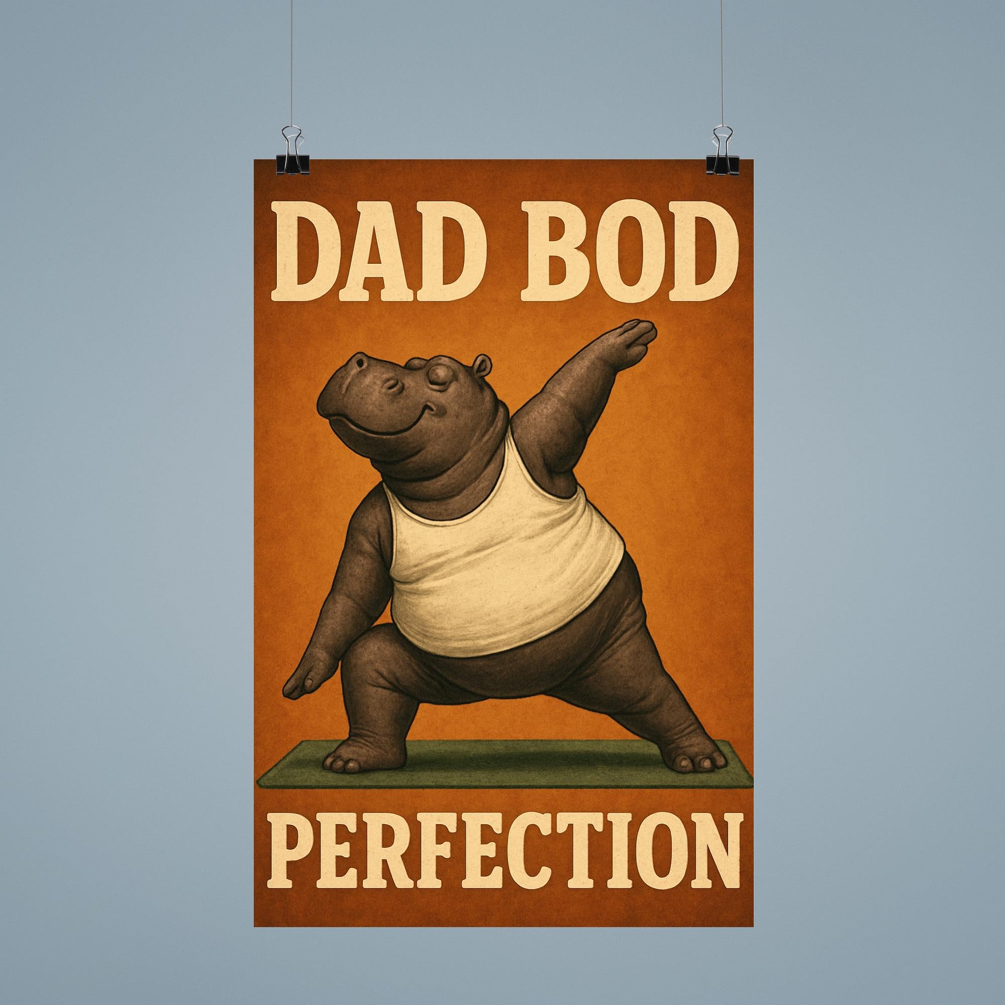 Celebrate dad’s unique charm with this hilarious "Dad Bod Perfection" poster! Featuring a hippo rocking a tank top while striking yoga poses, it’s the perfect blend of humor and heart for Father’s Day. This lighthearted artwork brings a smile to every dad who embraces comfort, confidence, and a little bit of fun.