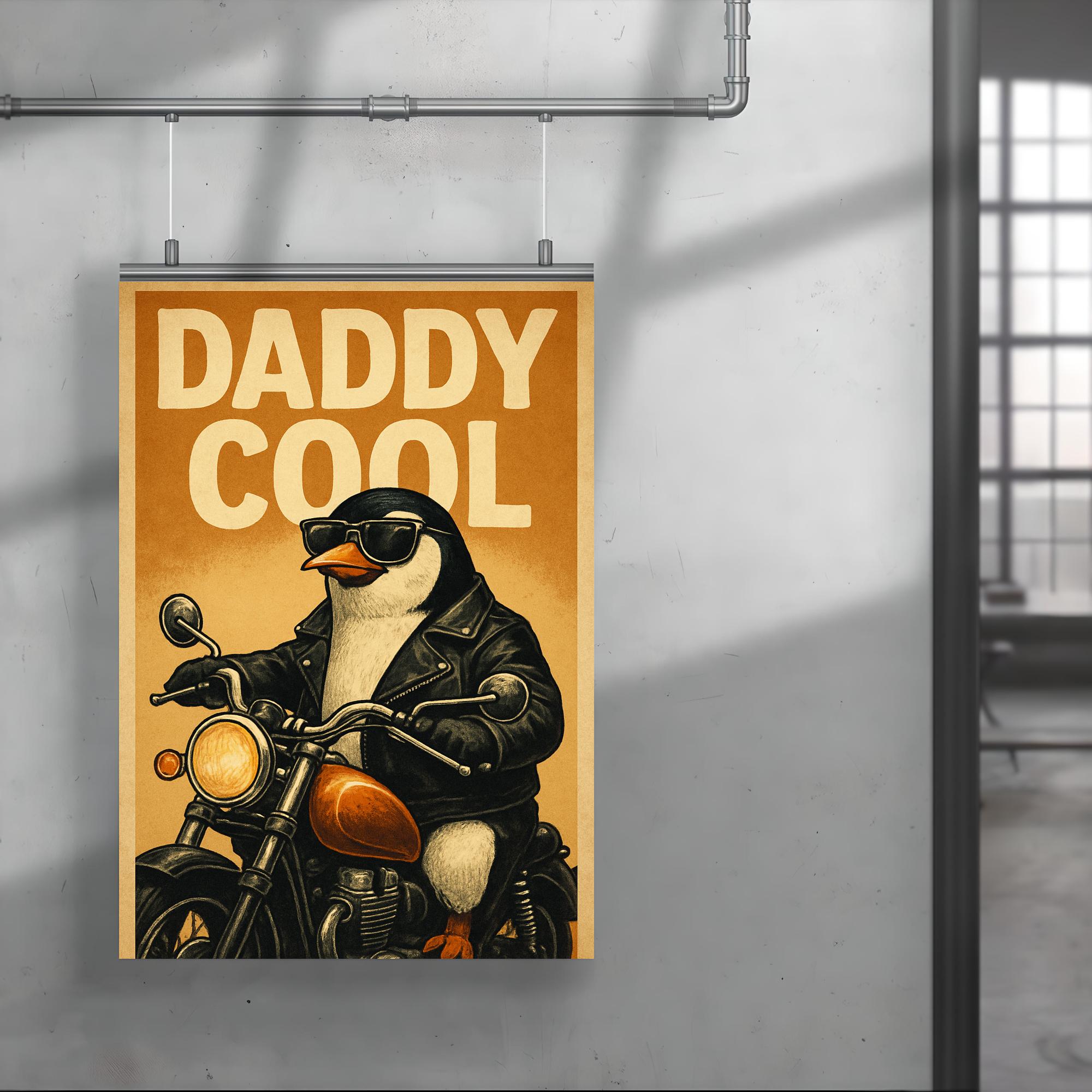 Celebrate Father’s Day with a touch of humor and cool vibes! This hilarious poster features a confident penguin rocking a leather jacket and riding a motorcycle, perfectly capturing the “Daddy Cool” spirit. It’s the ultimate gift to bring smiles and legendary dad energy to any room.