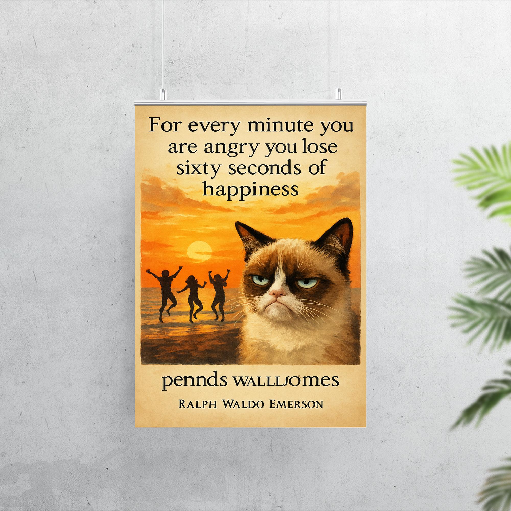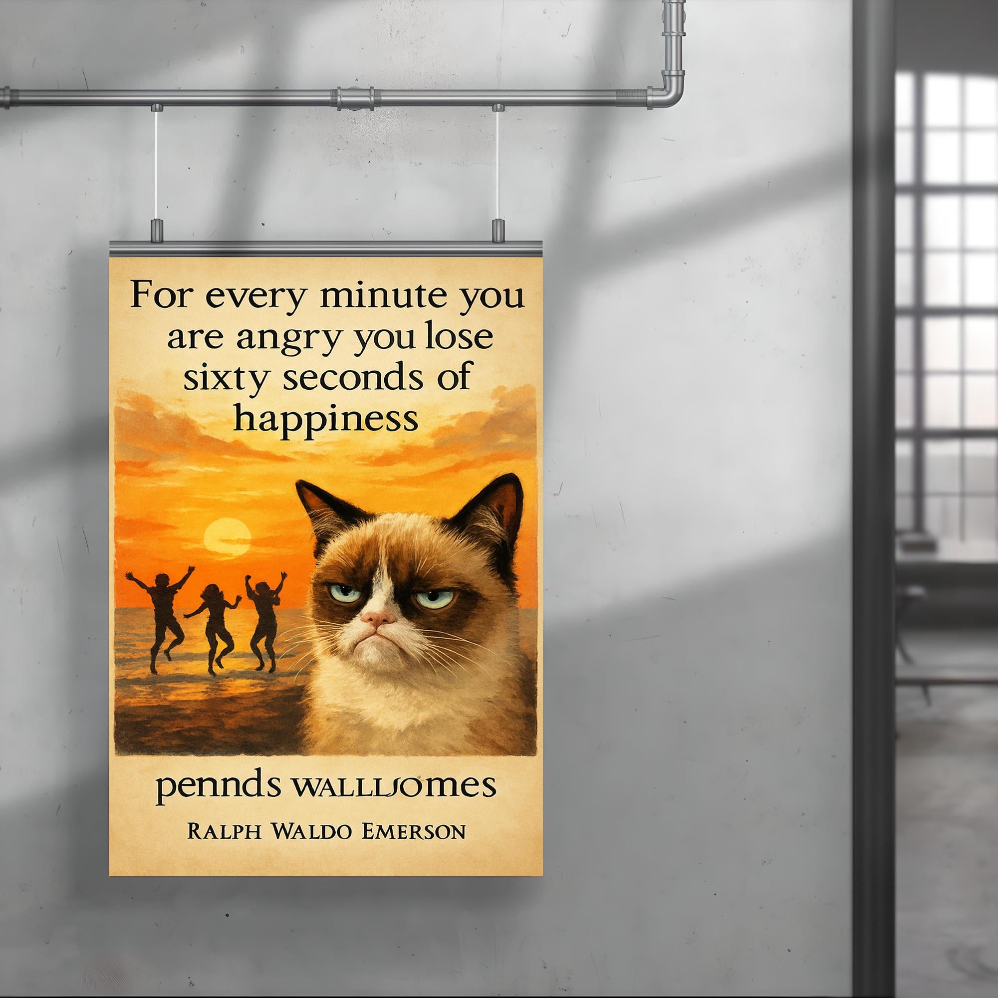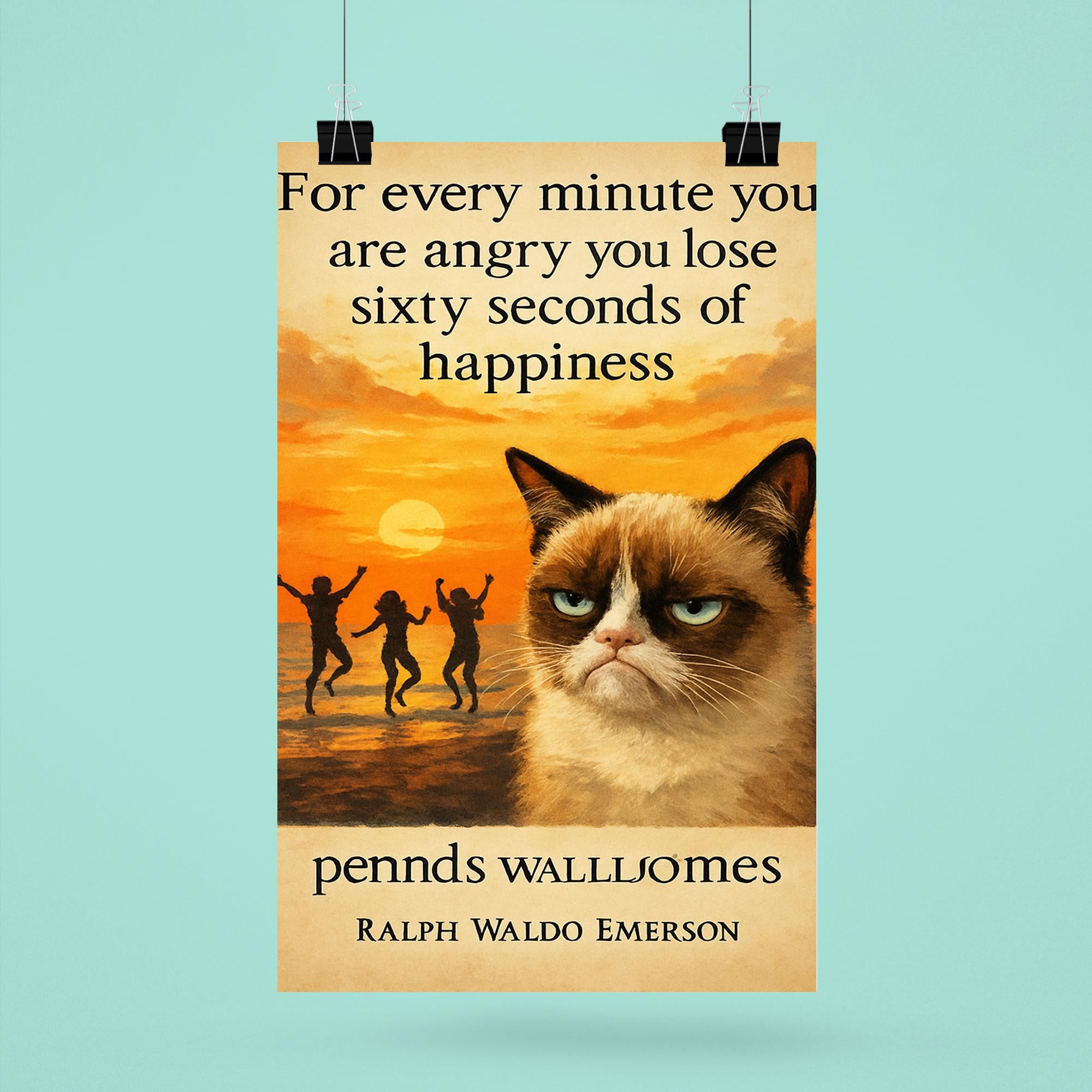 Transform your space with this inspiring poster featuring Ralph Waldo Emerson’s timeless wisdom: "For every minute you are angry, you lose sixty seconds of happiness." A powerful reminder to choose calm over grumpiness and embrace joy in every moment. Perfect for uplifting your mood and sparking positivity wherever it hangs.