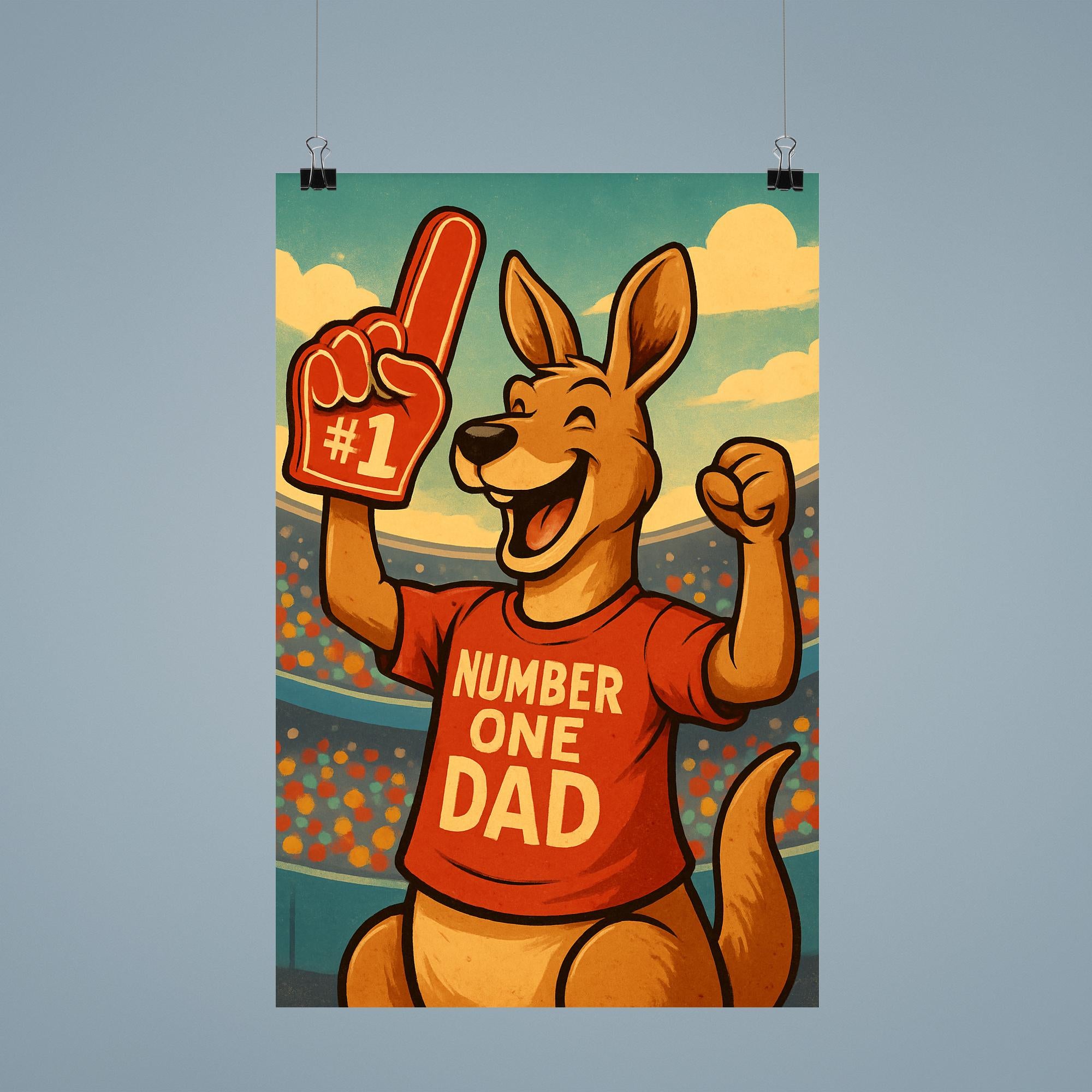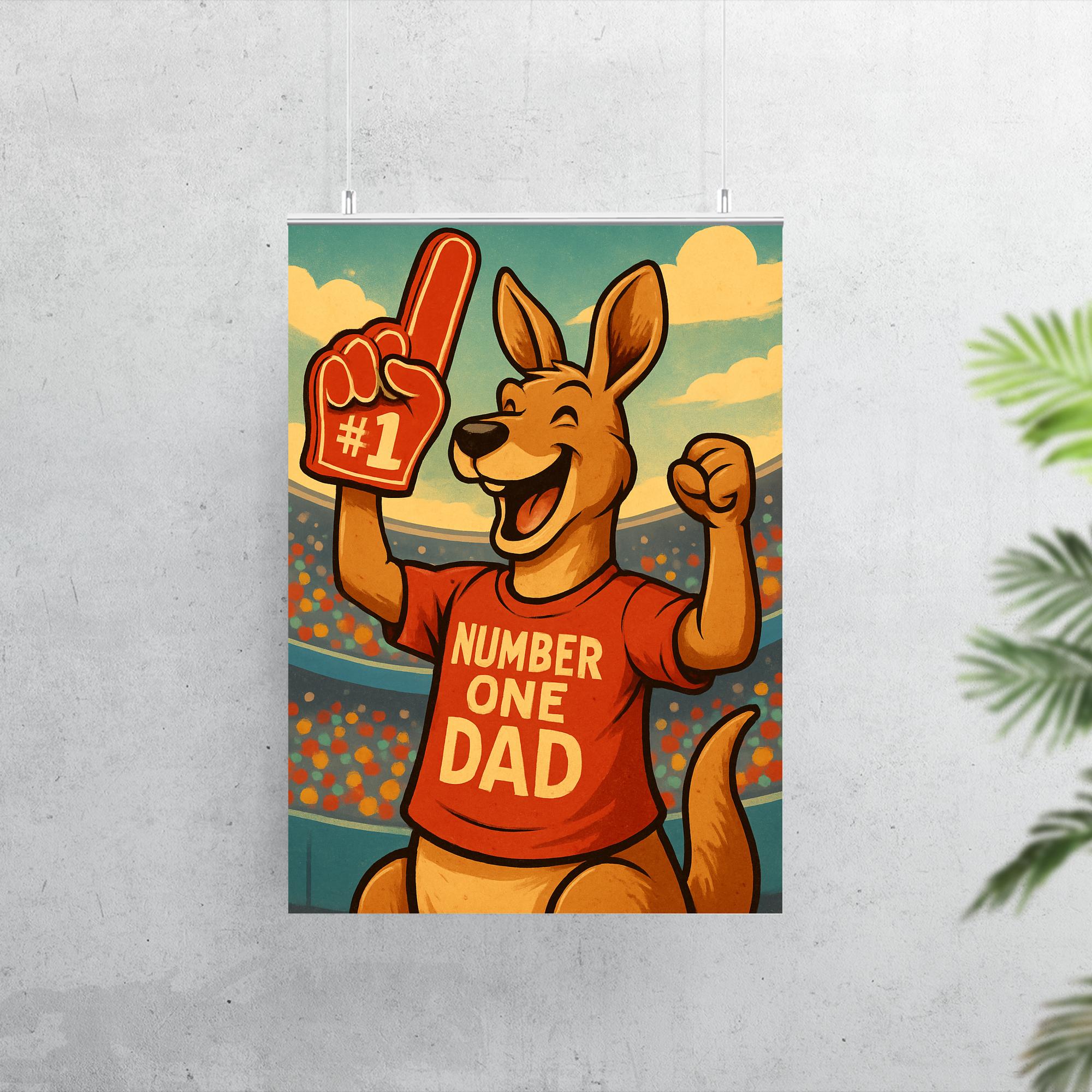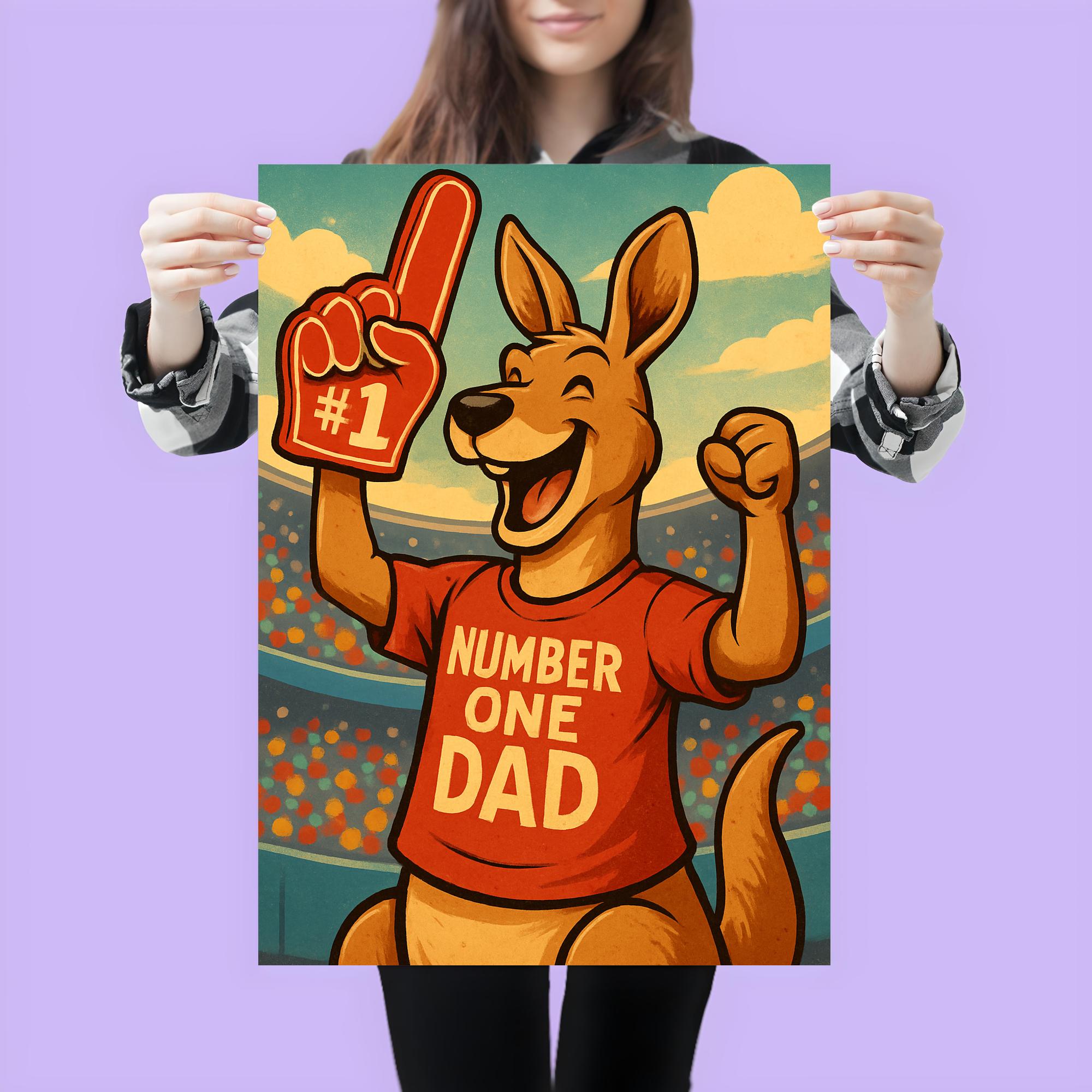 Celebrate Dad's game-day spirit with this hilarious "Number One Dad" poster featuring a spirited kangaroo cheering with a foam finger! Perfect for Father’s Day, this fun and playful design captures the joy of being a proud dad who’s always the biggest fan. A great gift to bring smiles and laughter to any sports-loving dad’s day!