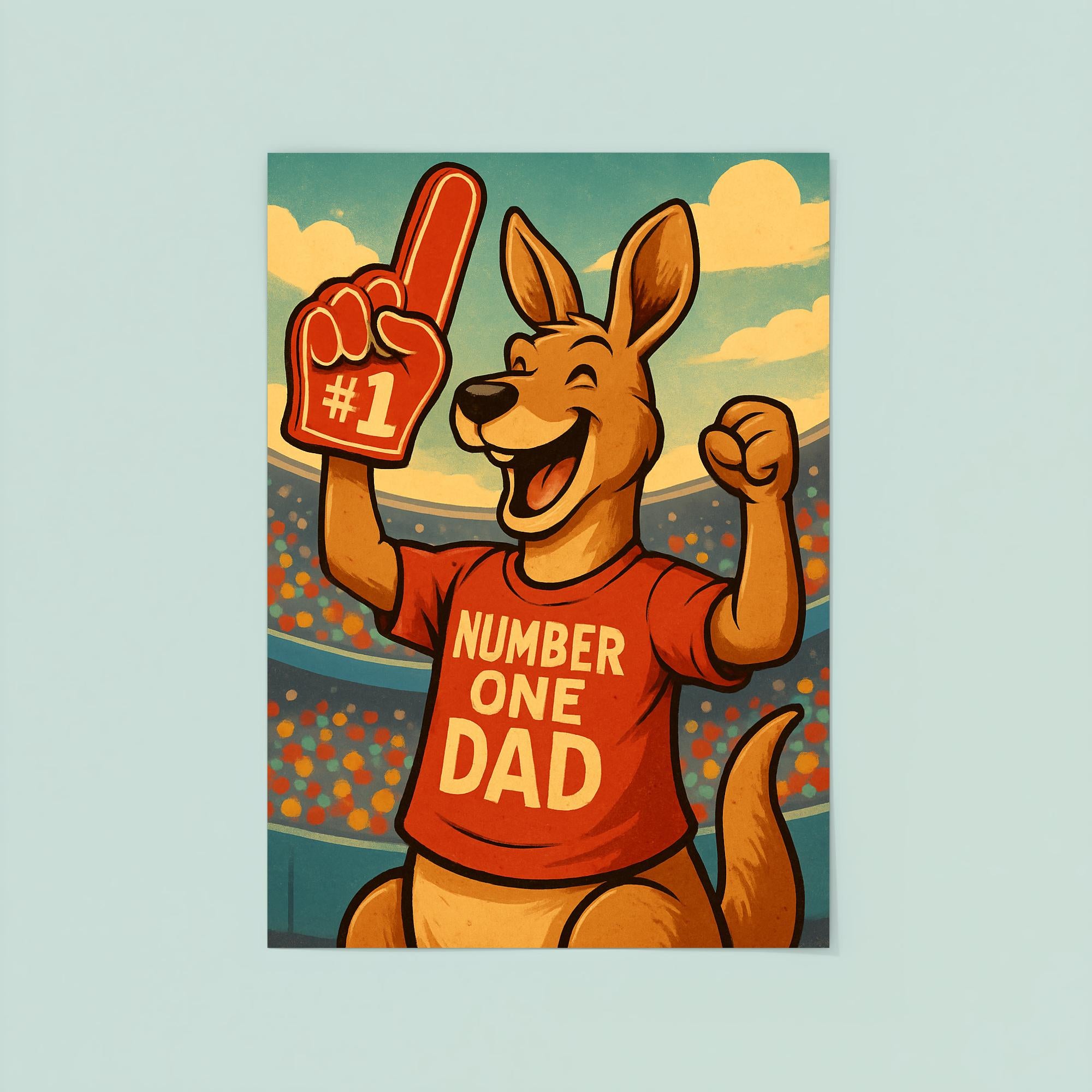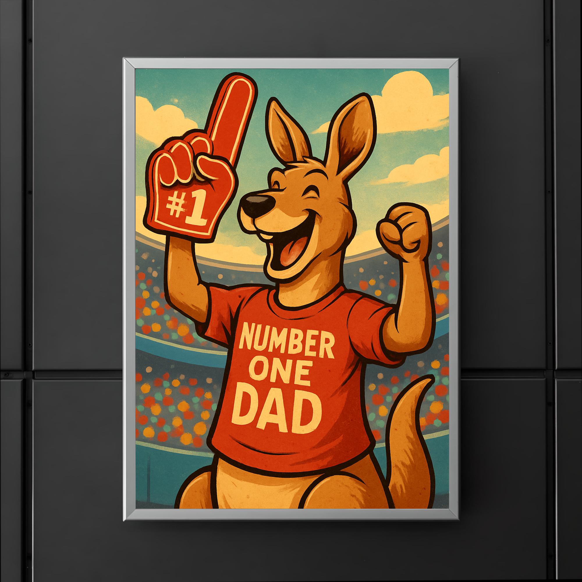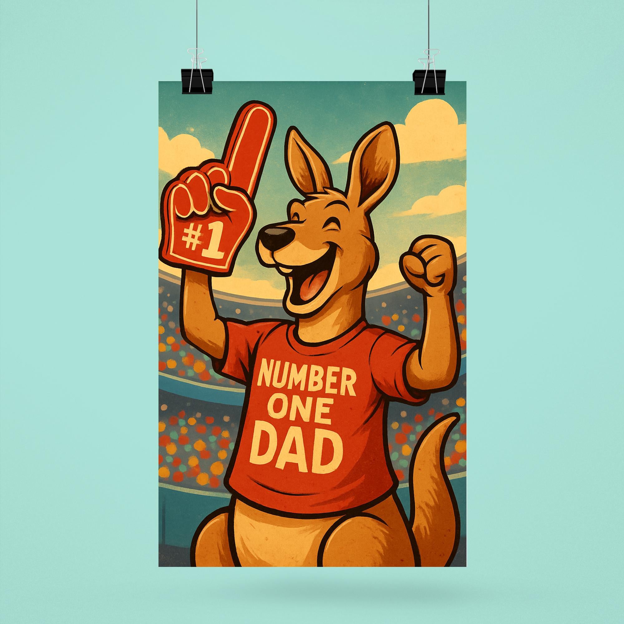 Celebrate Dad's game-day spirit with this hilarious "Number One Dad" poster featuring a spirited kangaroo cheering with a foam finger! Perfect for Father’s Day, this fun and playful design captures the joy of being a proud dad who’s always the biggest fan. A great gift to bring smiles and laughter to any sports-loving dad’s day!