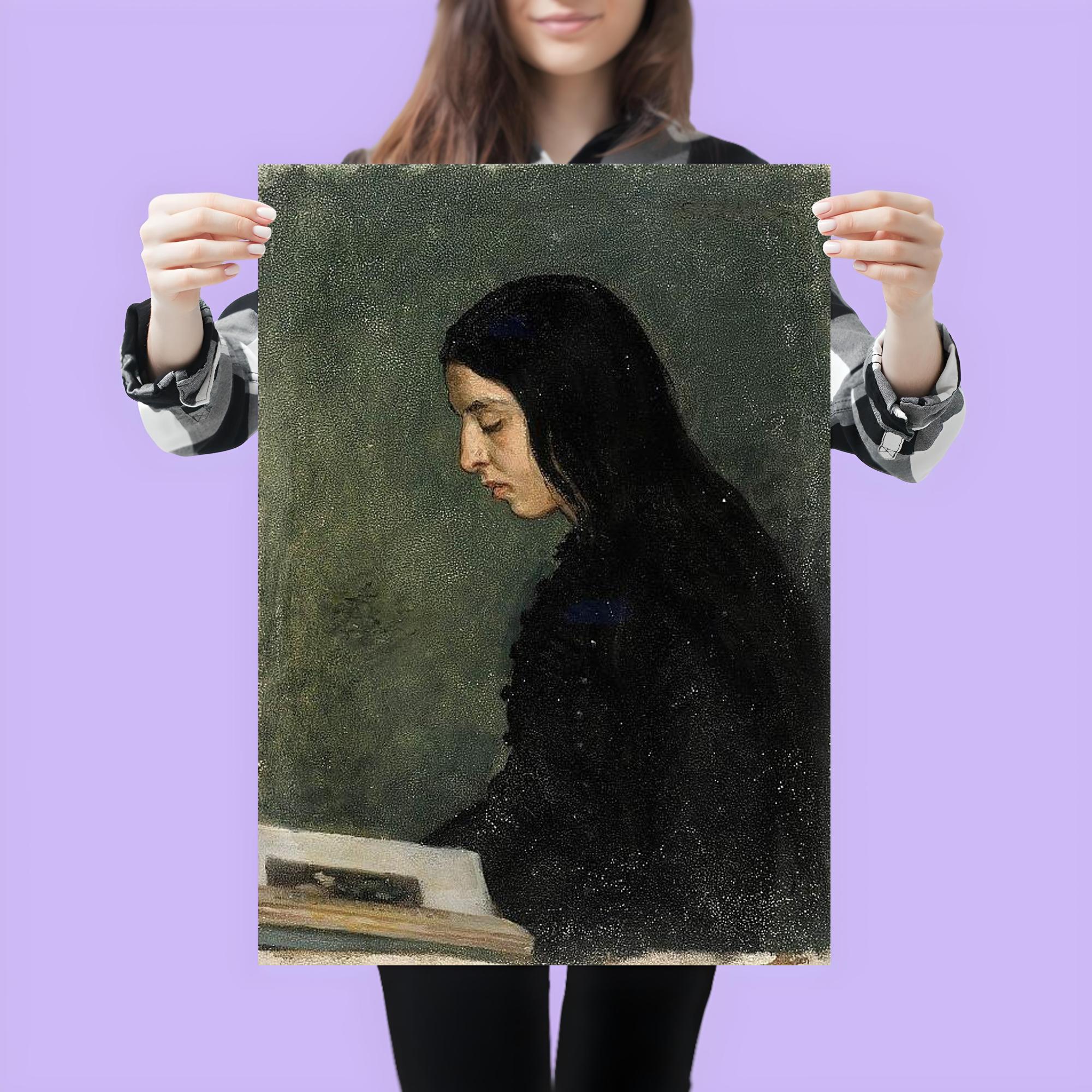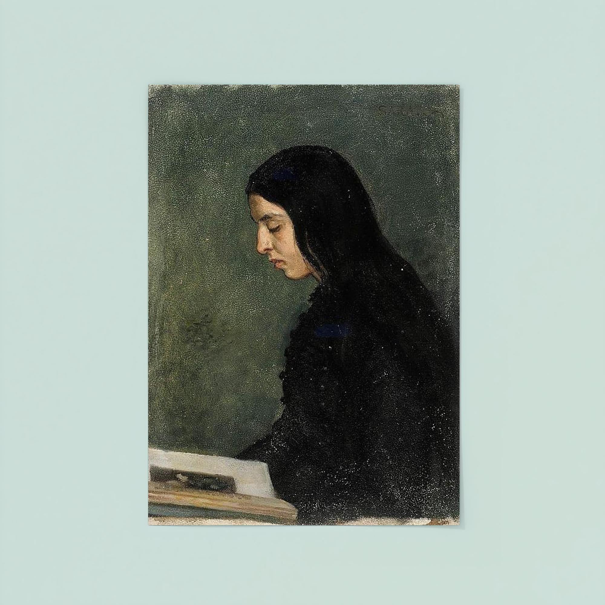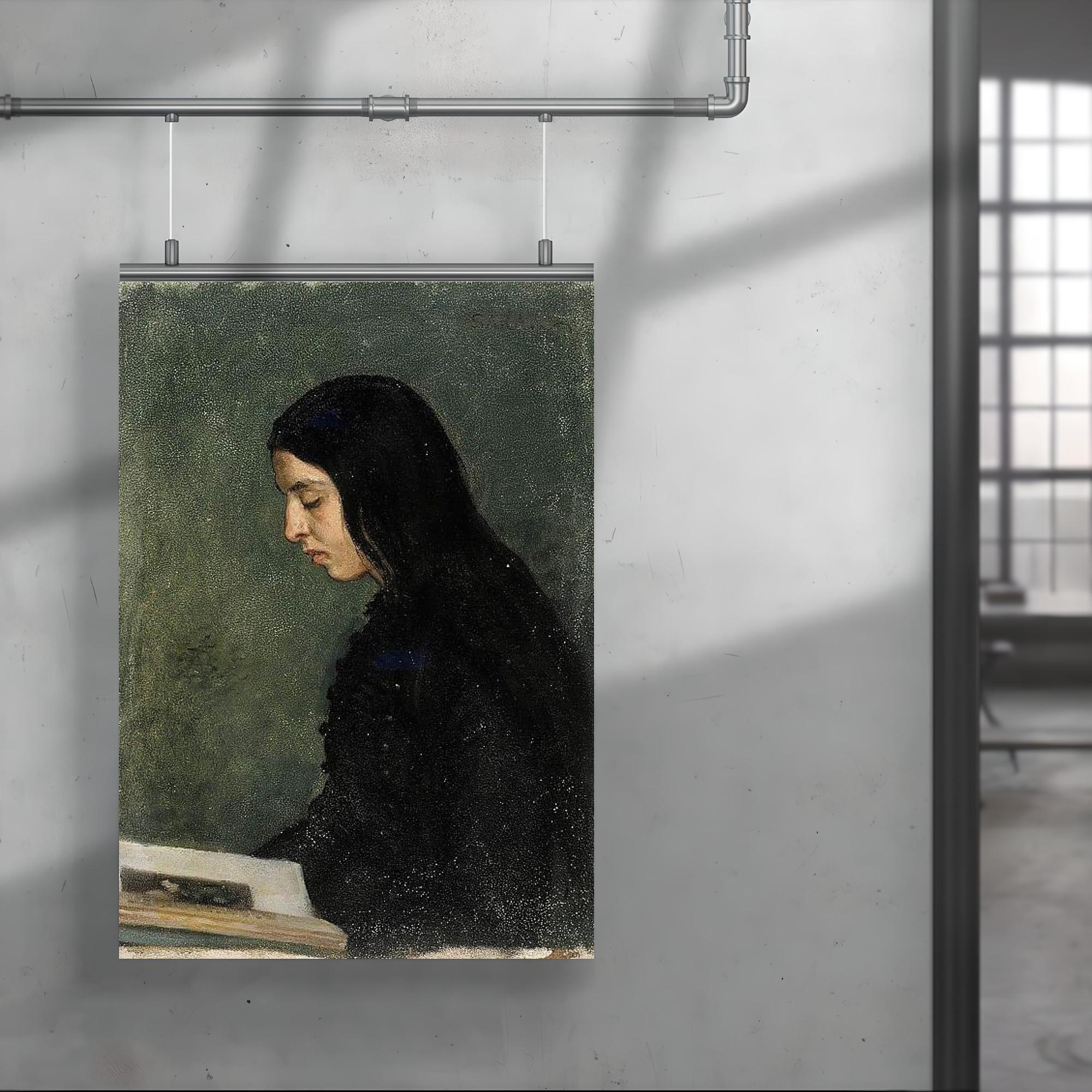 Reading Black Haired Woman Poster Print by Adolf von Becker – Elegant Fine Art Wall Decor for Home & Office