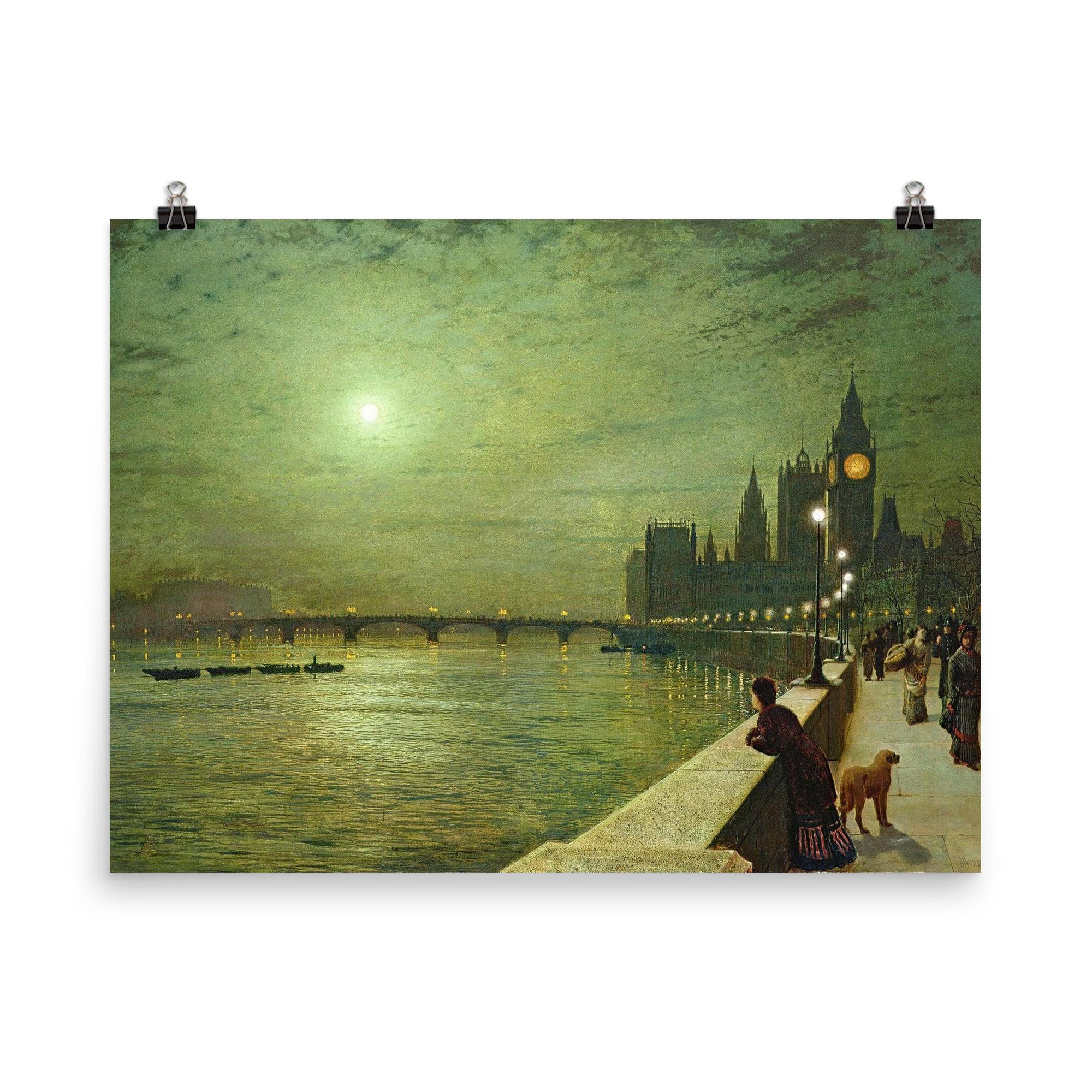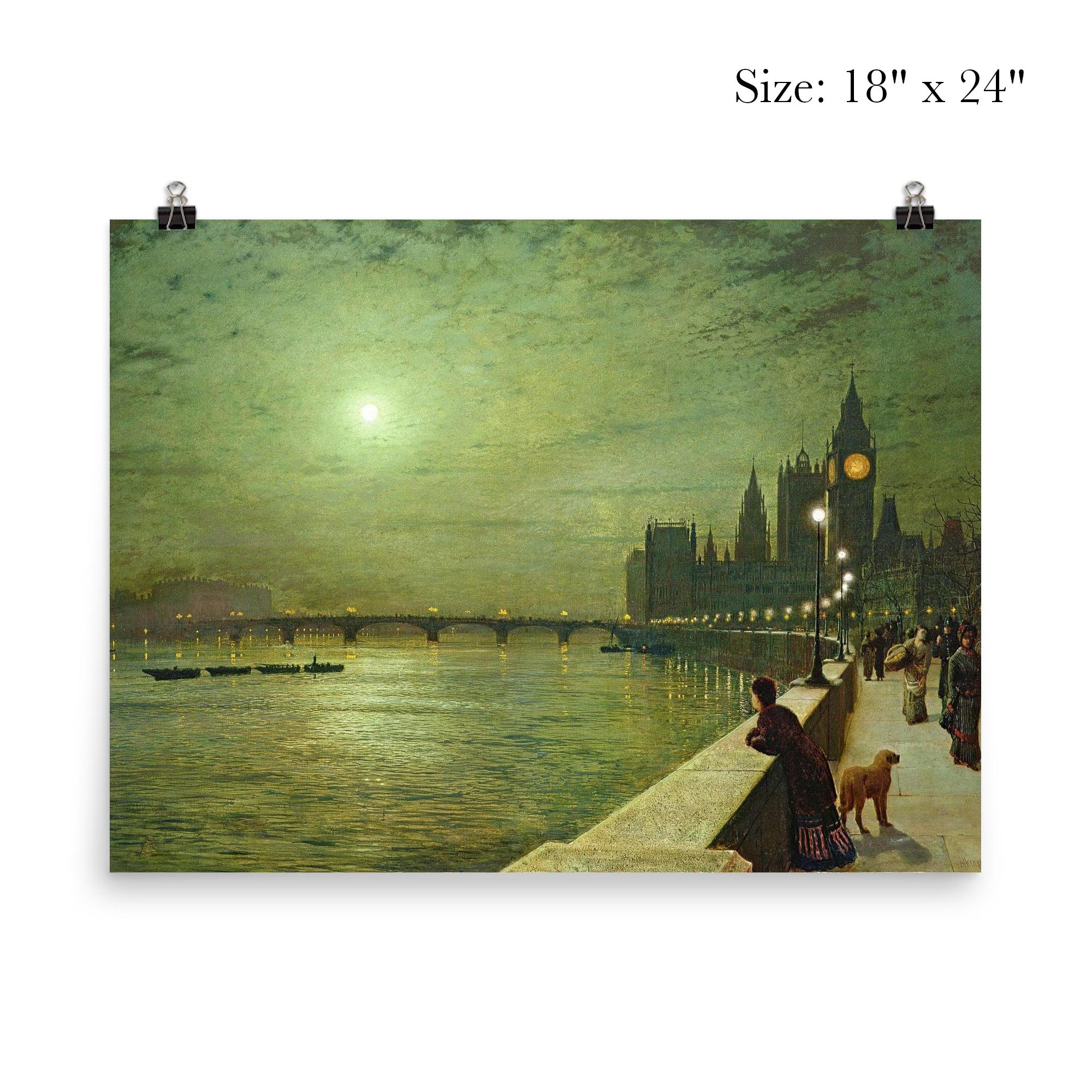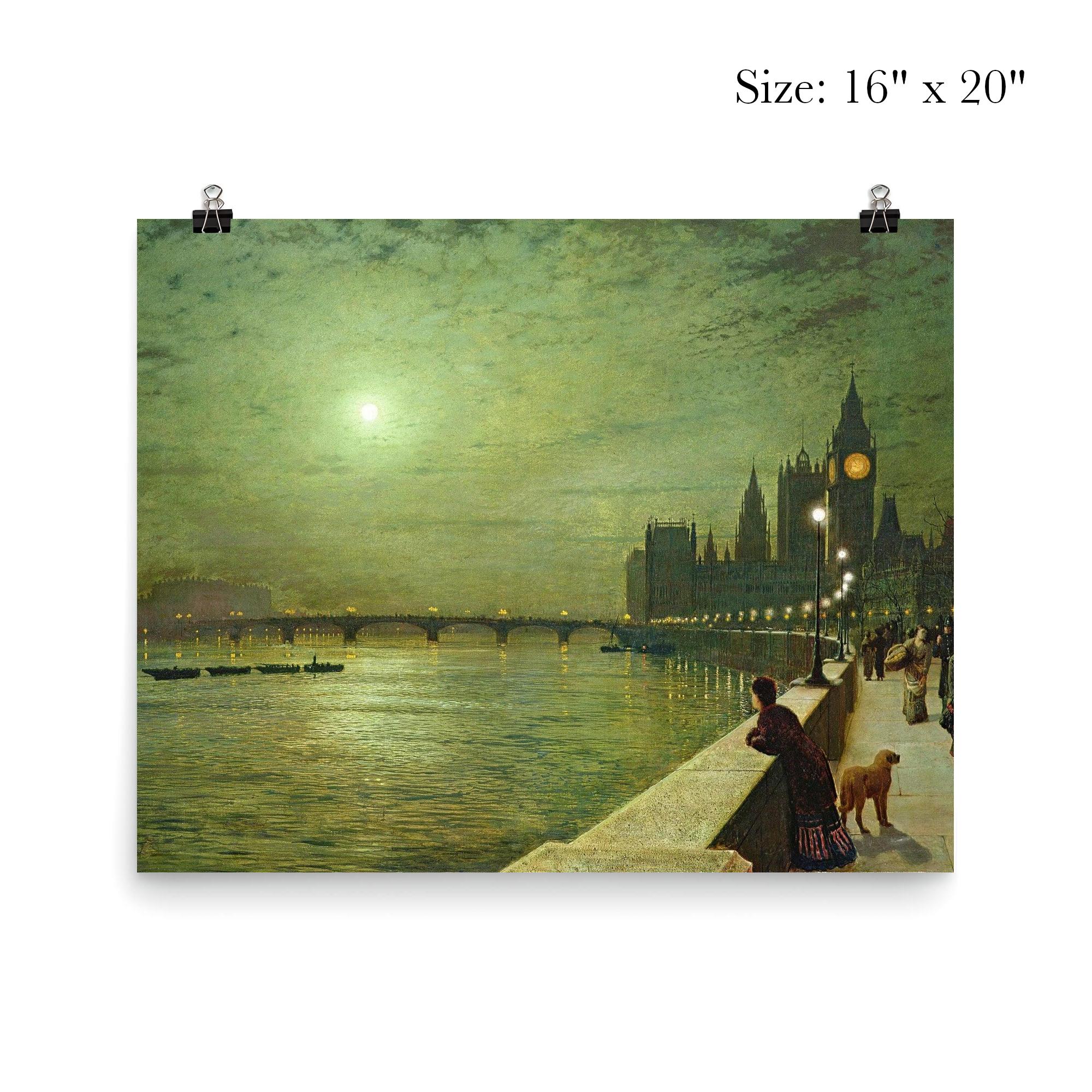 Reflections on the Thames 1880 Poster Print by John Atkinson Grimshaw – Vintage London River Scene Wall Art for Home Decor