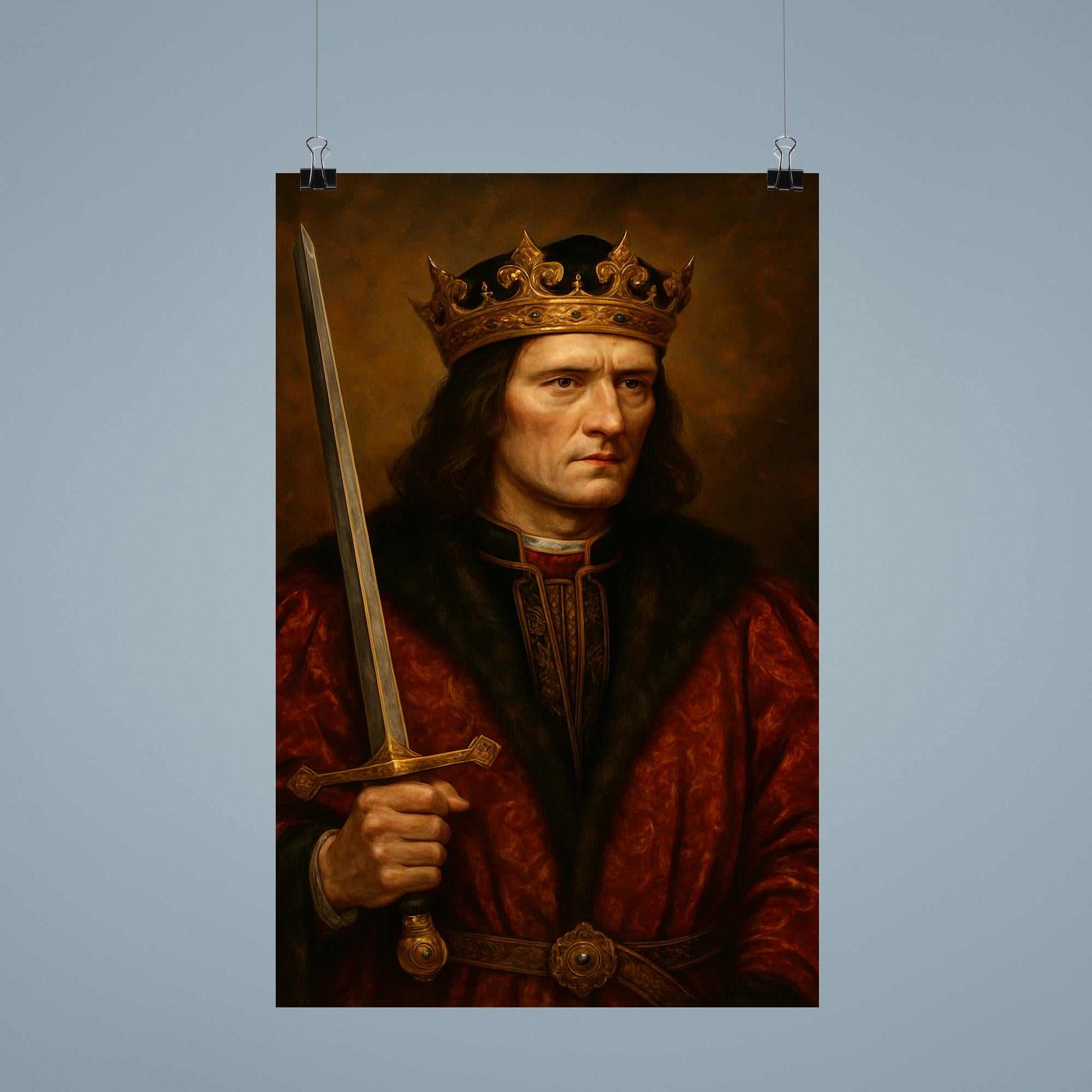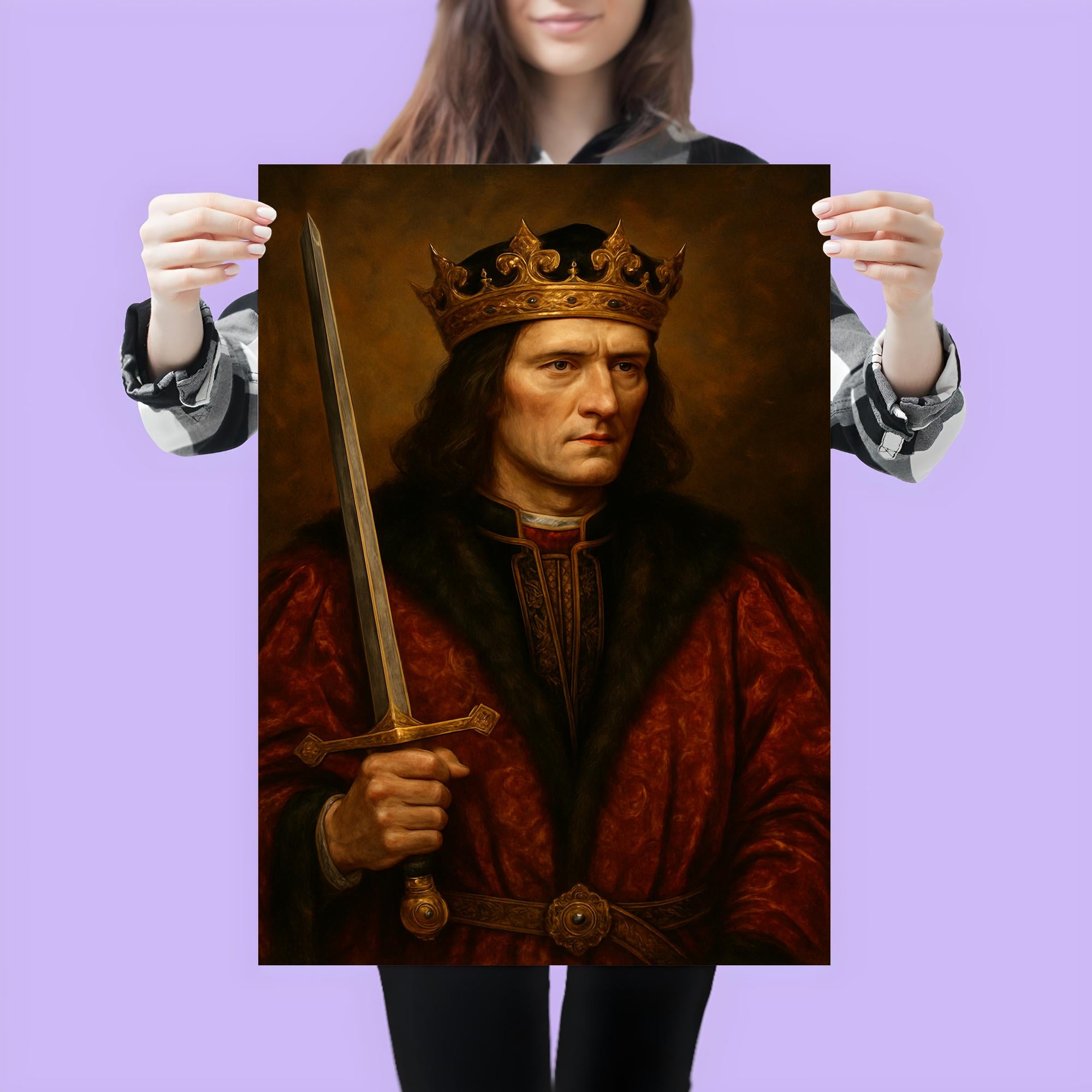 Command attention with this striking Richard III of England poster, capturing the legacy of one of history’s most enigmatic monarchs. Perfect for history enthusiasts and collectors alike, it brings a timeless story of power, ambition, and intrigue right to your walls. Elevate your space with a piece that sparks conversation and reflects a bold chapter of English history.