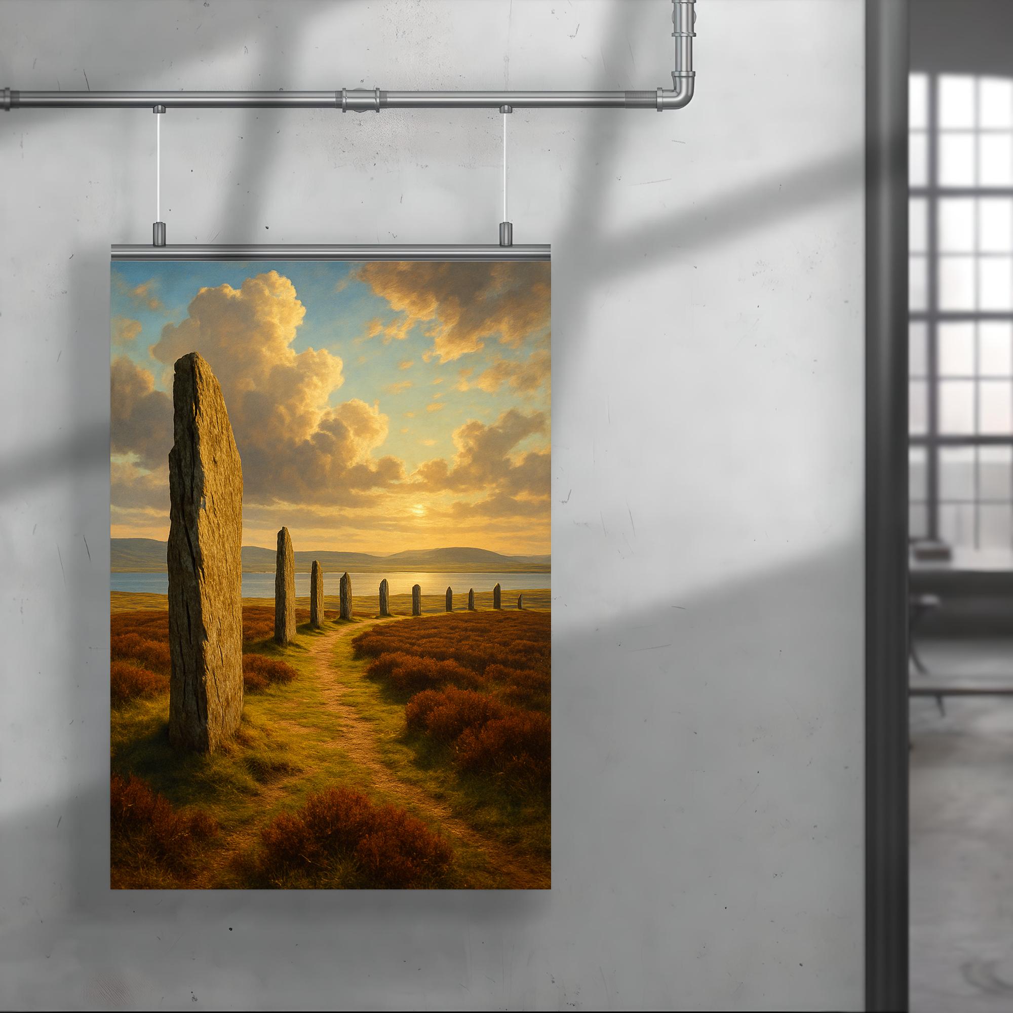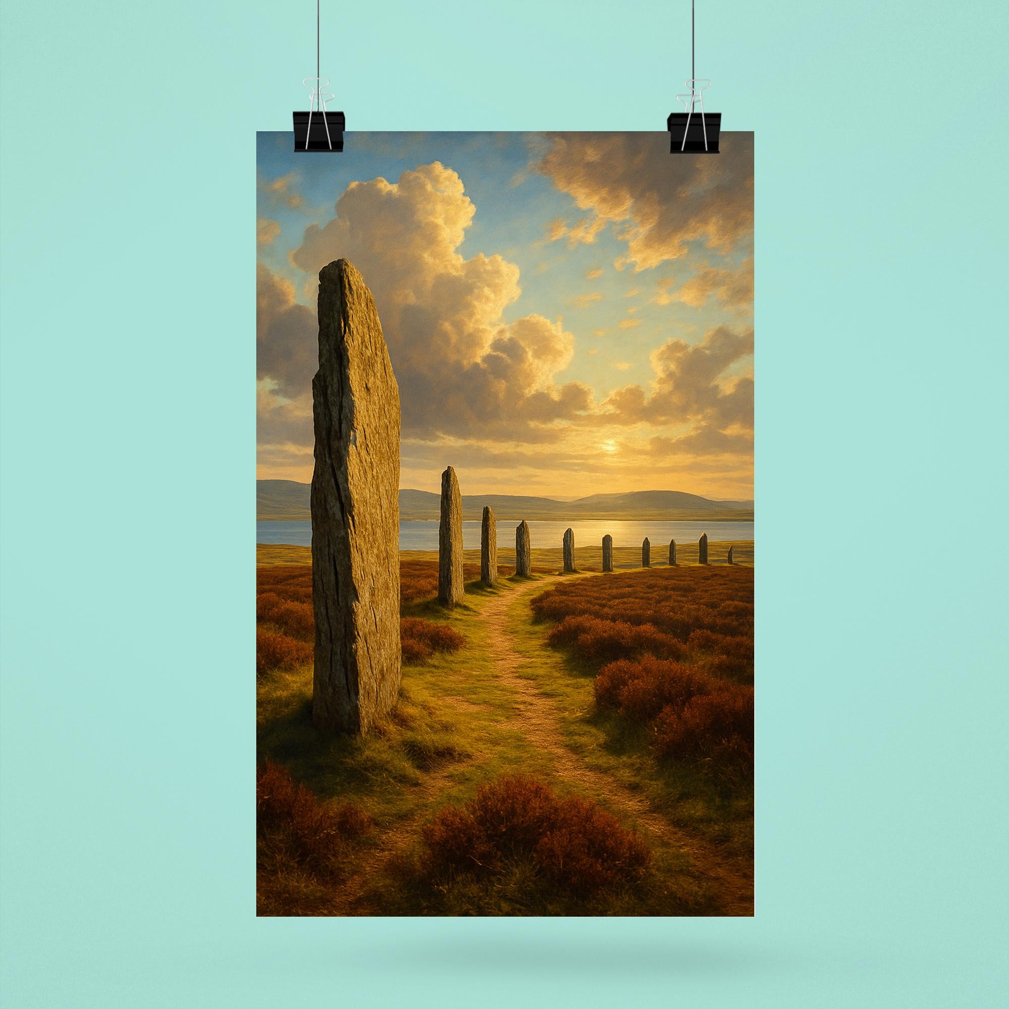 Ring of Brodgar Scotland Poster Print – Ancient Stone Circle Wall Art, Mystical Landscape Decor for Home & Office