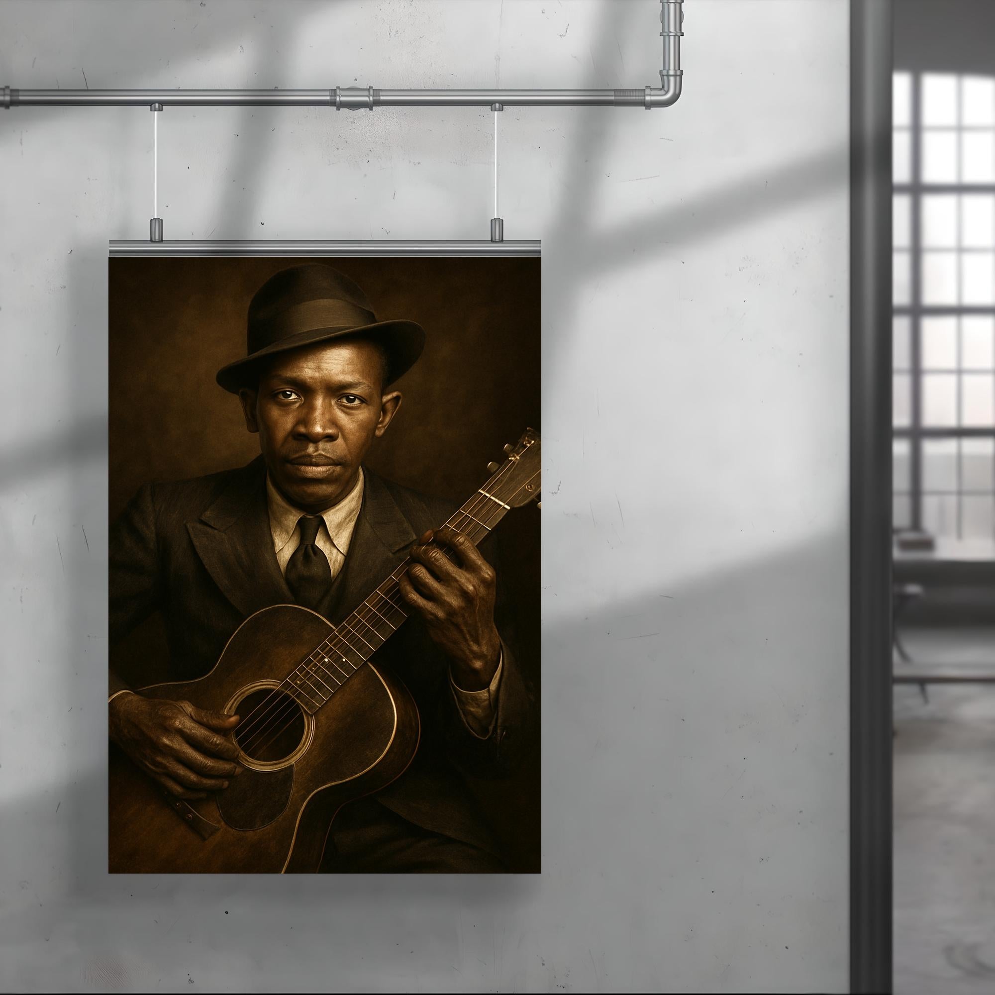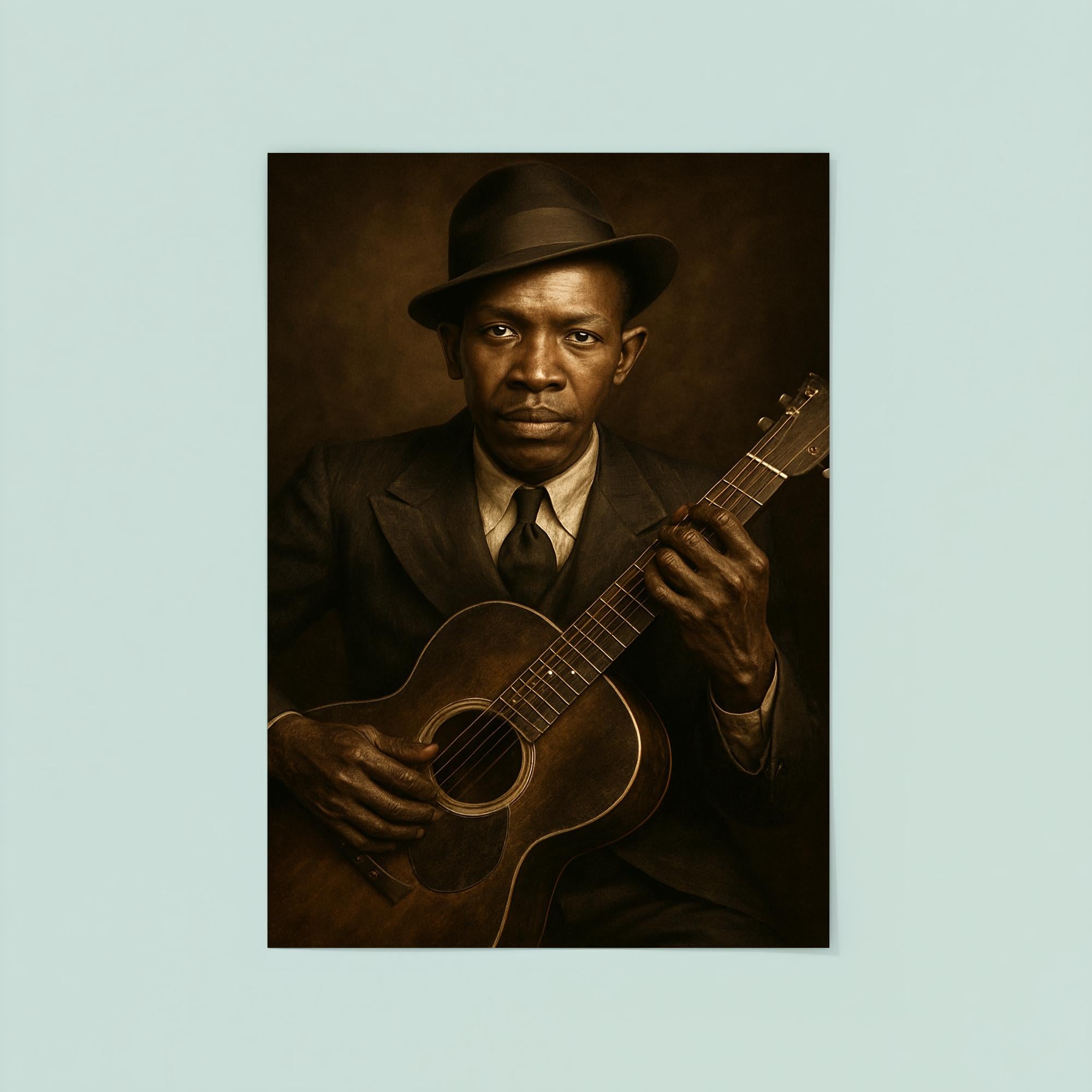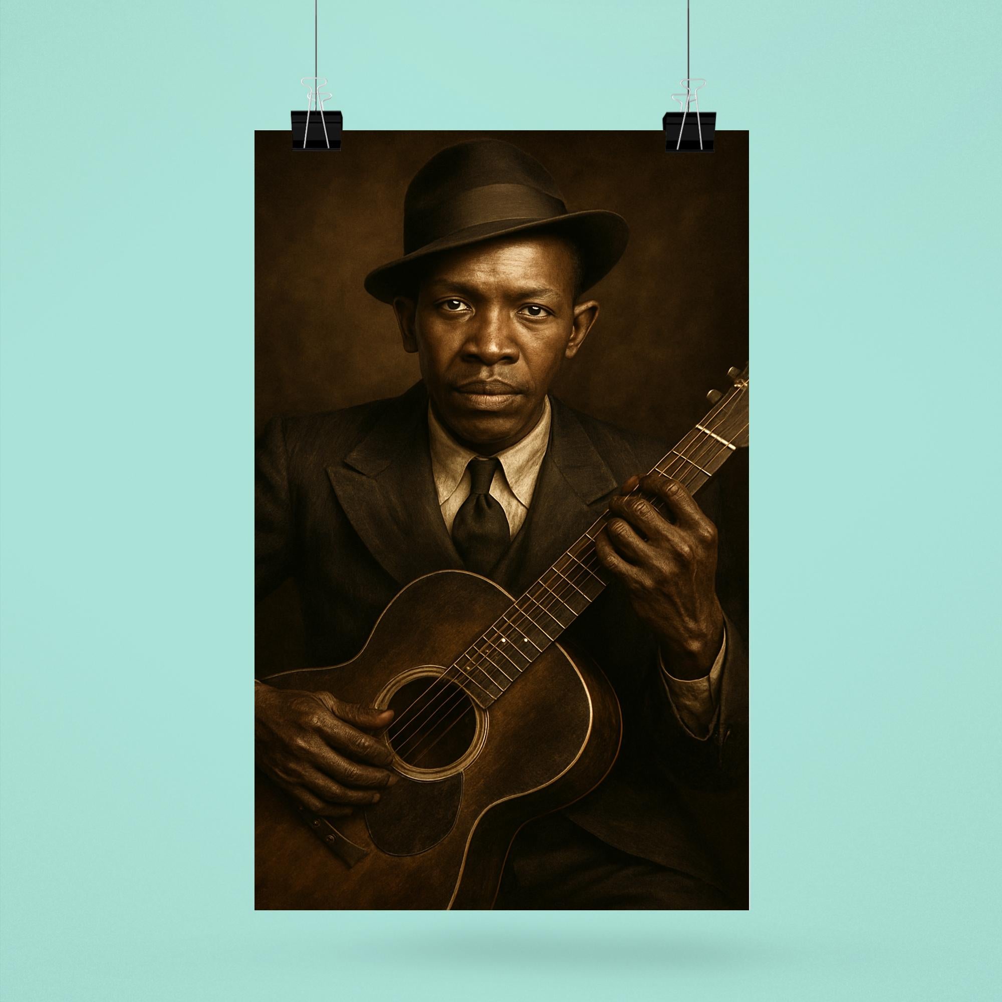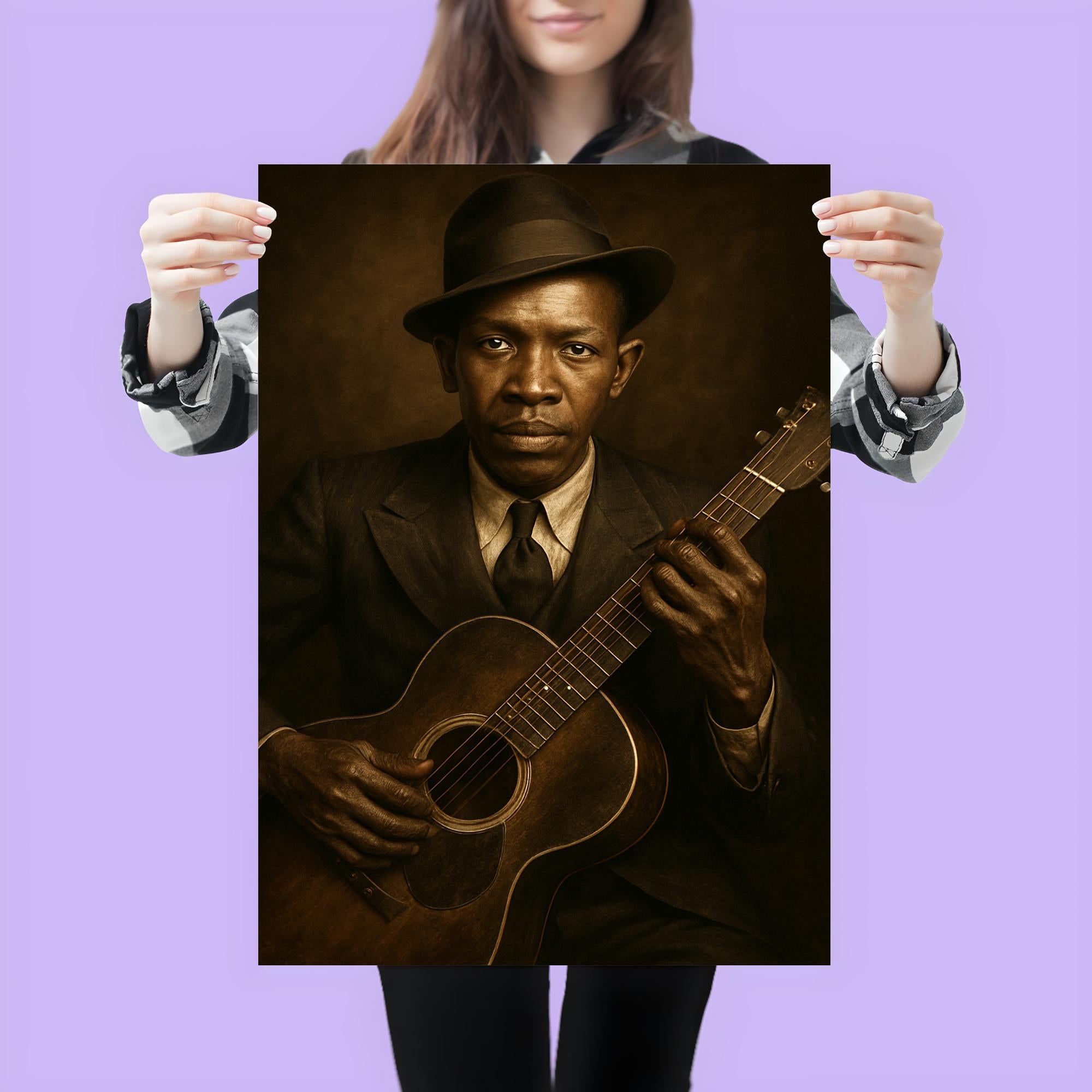 Elevate your space with this striking portrait of Robert Johnson, the legendary blues pioneer whose music shaped generations. Capturing his timeless presence, this poster brings soulful history and iconic artistry into your home or studio, perfect for any music lover seeking inspiration and authenticity.