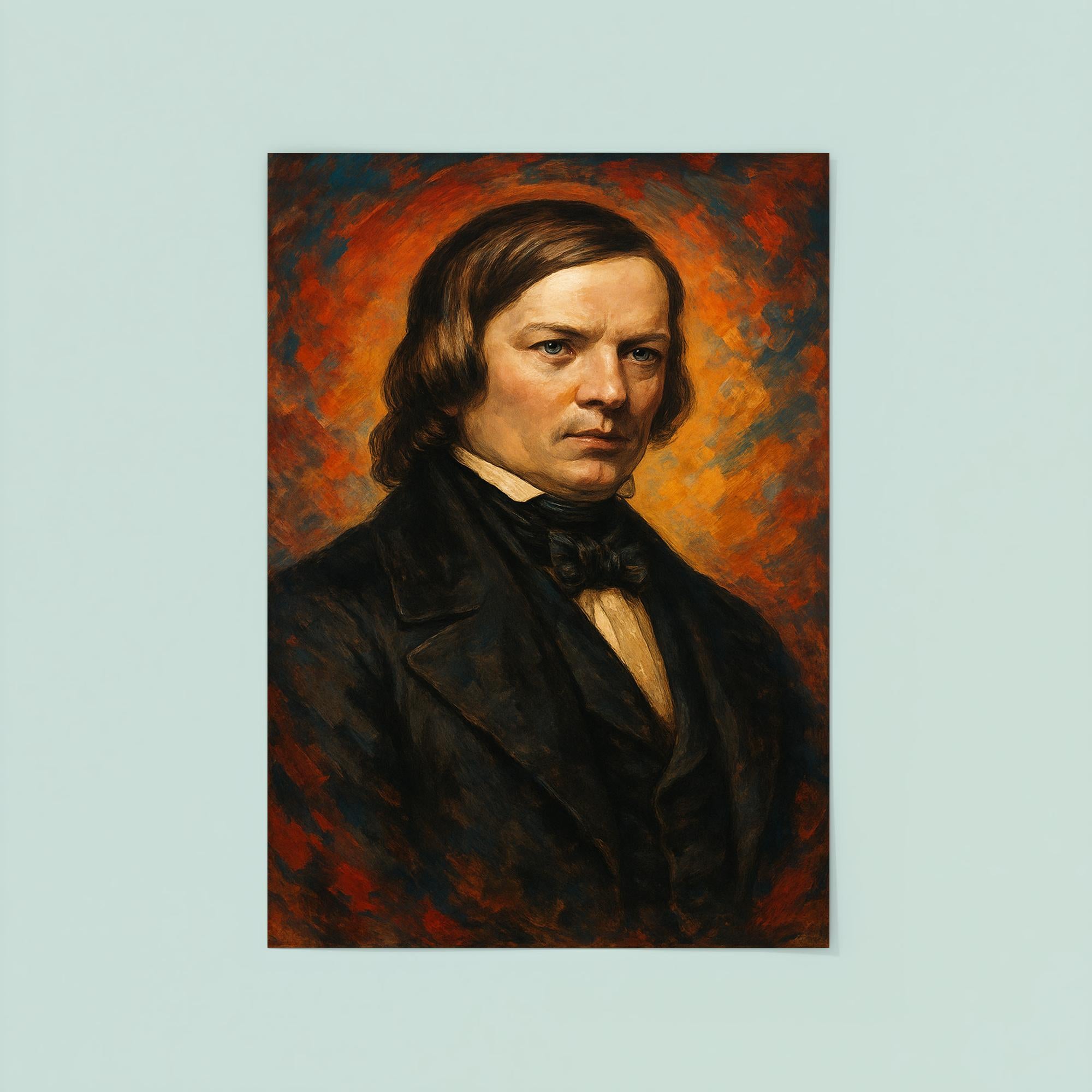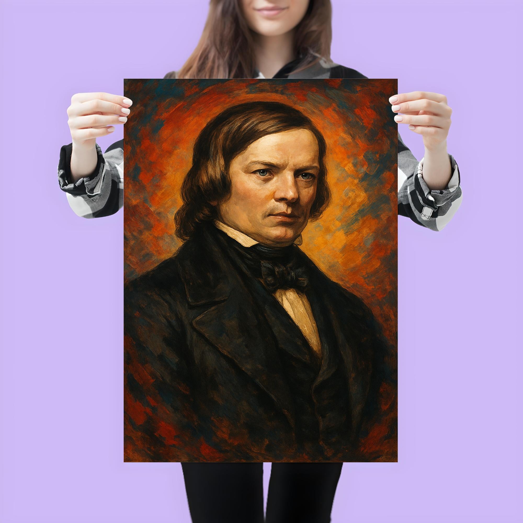 Celebrate the genius of Robert Schumann with this striking poster, a perfect tribute to one of classical music’s most passionate composers. Whether displayed in your music room or living space, it captures the timeless spirit of Schumann’s artistry, inspiring creativity and reverence for his profound legacy. Elevate your decor with a piece that resonates with the heart of Romantic music.