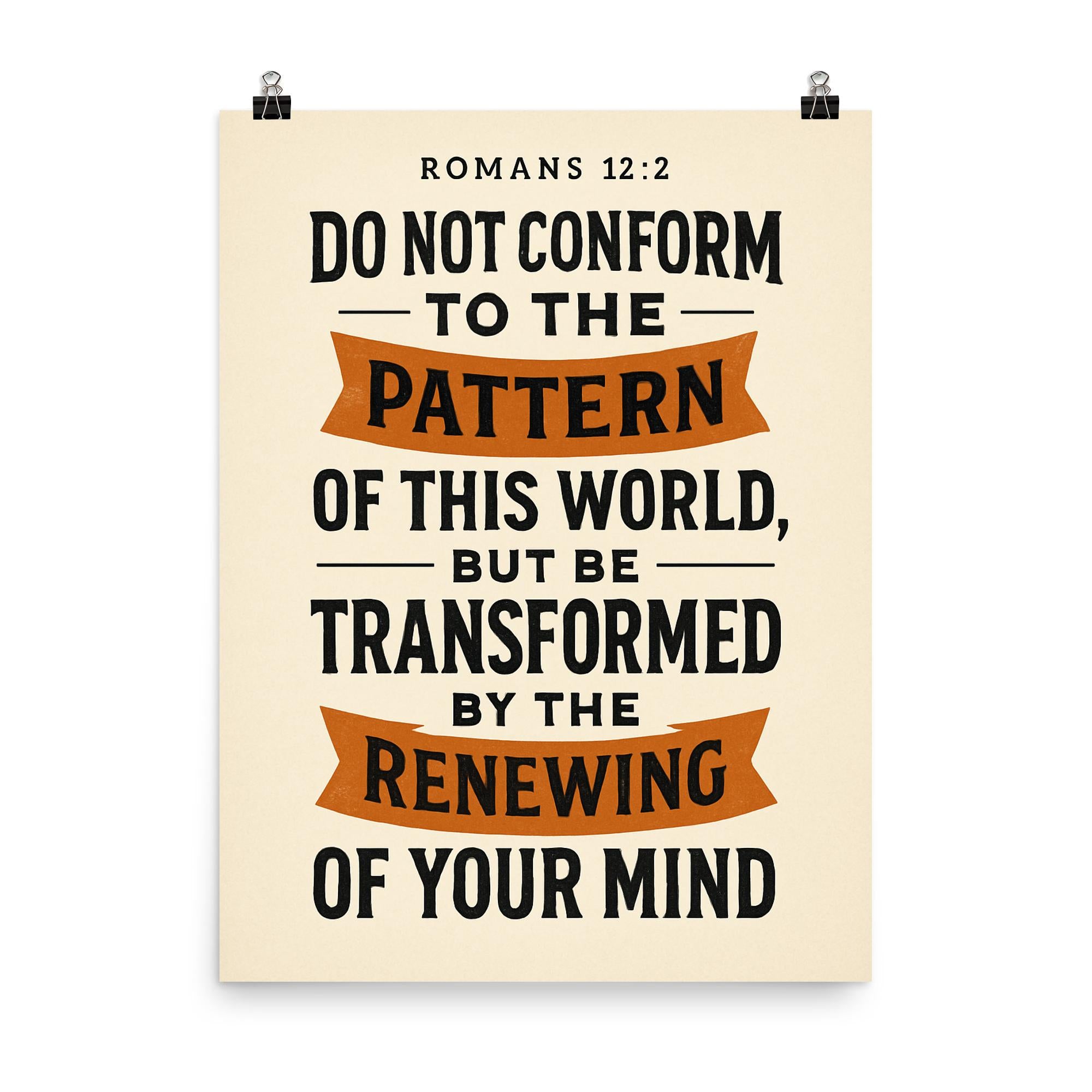 Romans 12:2 Inspirational Wall Art Poster Print – Faith-Based Christian Home Decor, Motivational Bible Verse Scripture Typography Artwork