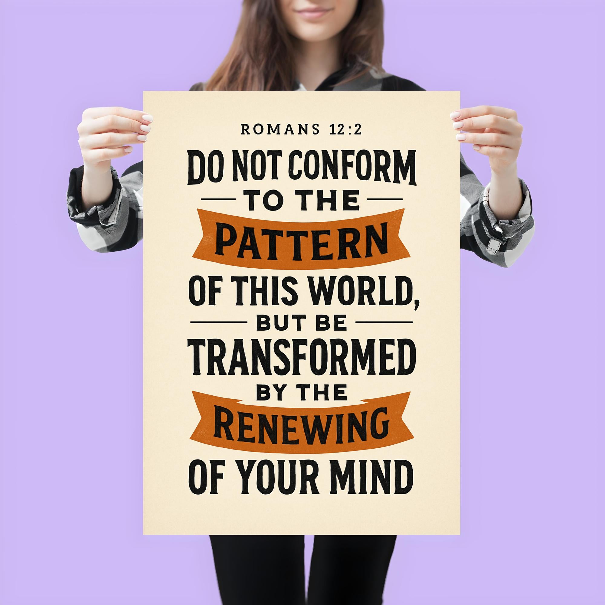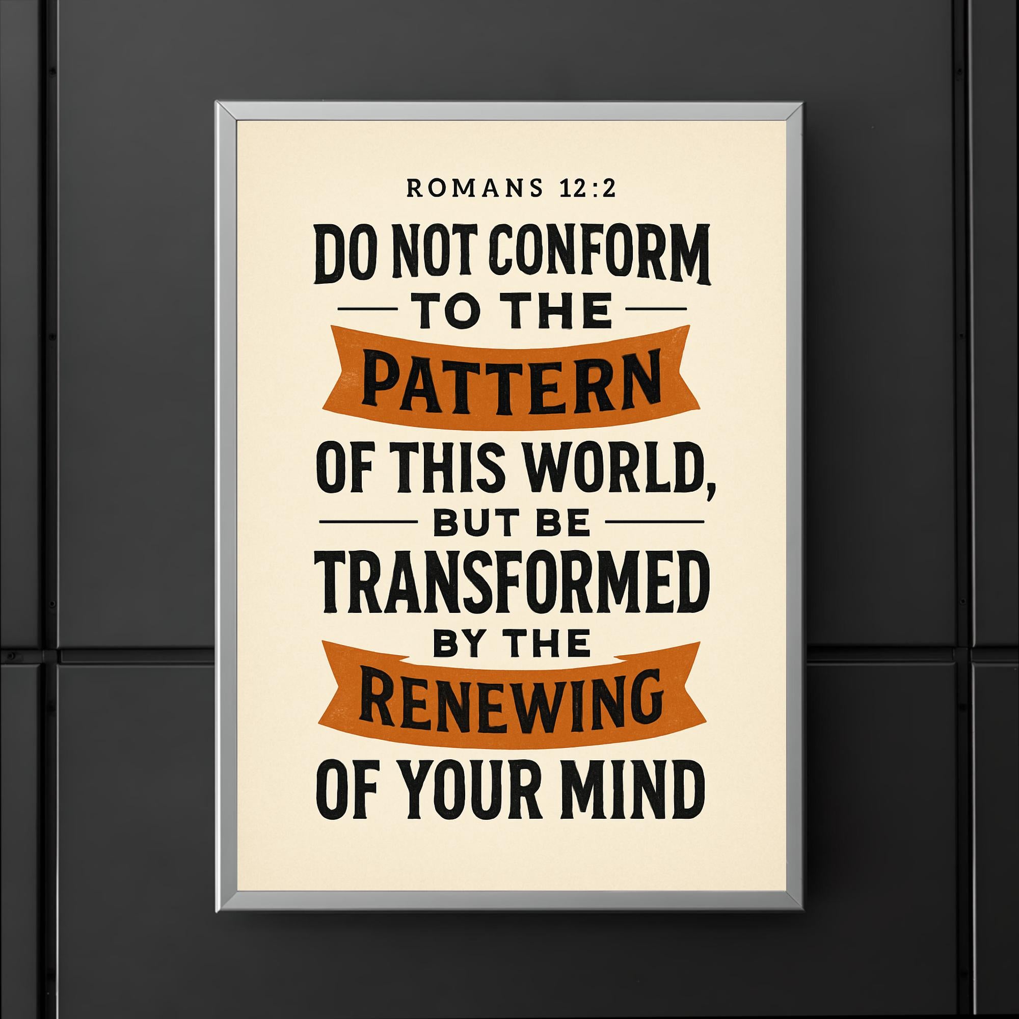 Inspire daily renewal with this powerful reminder from Romans 12:2. Let these words encourage you to break free from the ordinary and embrace transformation through a refreshed mindset. Perfect for any space where motivation and faith come together to spark change.
