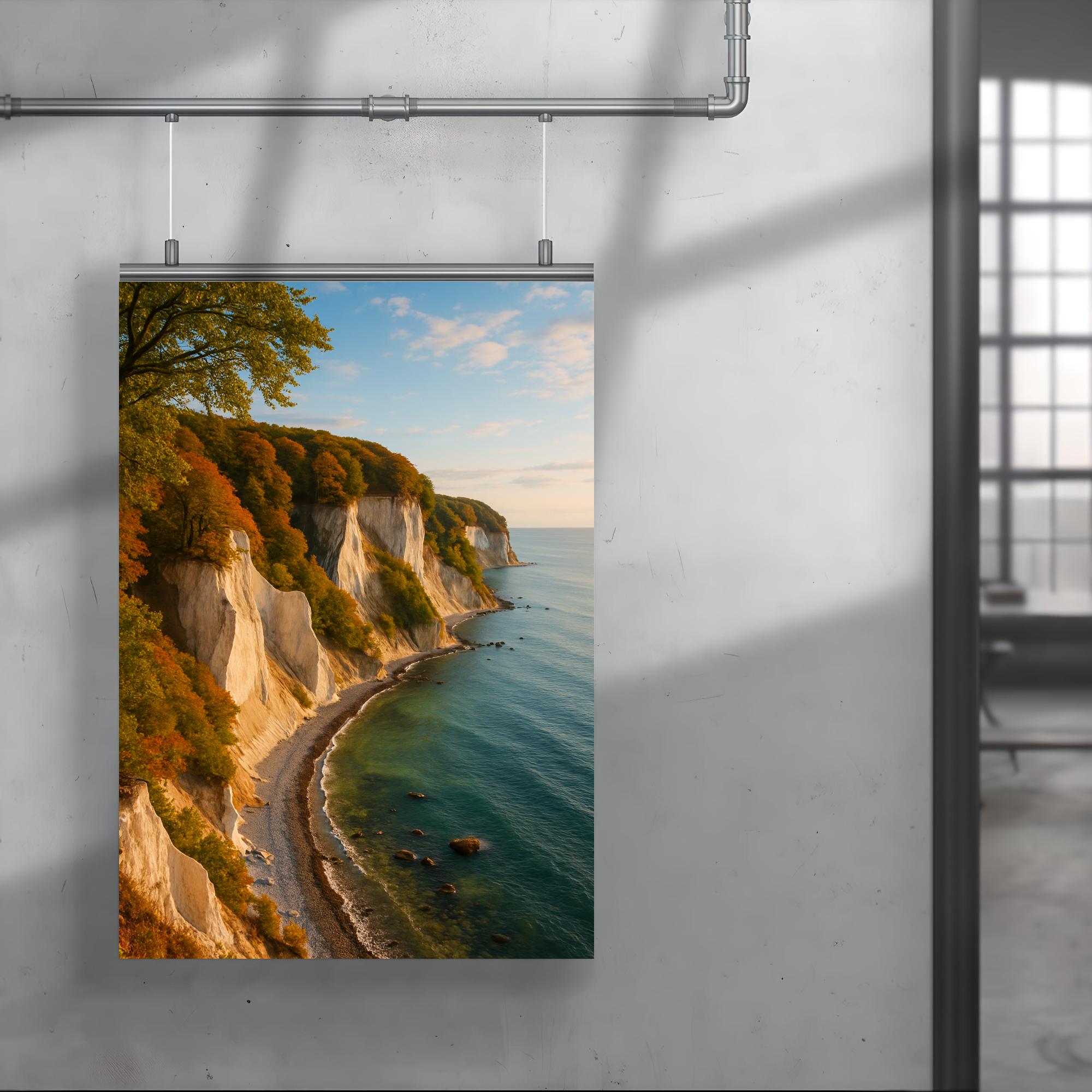 Transform your space with the breathtaking beauty of the Rügen Chalk Cliffs at Jasmund, Germany. This stunning poster captures the iconic white cliffs rising dramatically against a serene sky, evoking a sense of natural wonder and timeless elegance. Perfect for nature lovers and art enthusiasts alike, it brings a piece of Germany’s rugged coastline into your home or office.