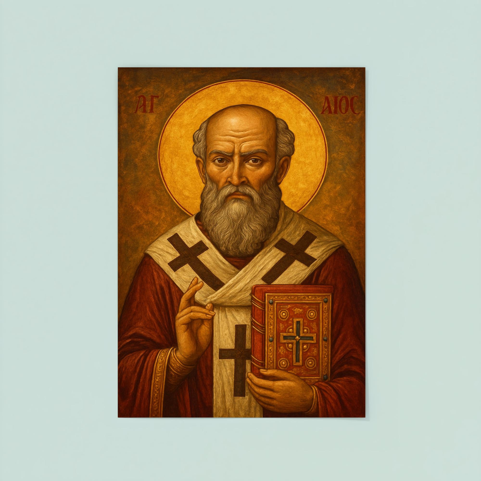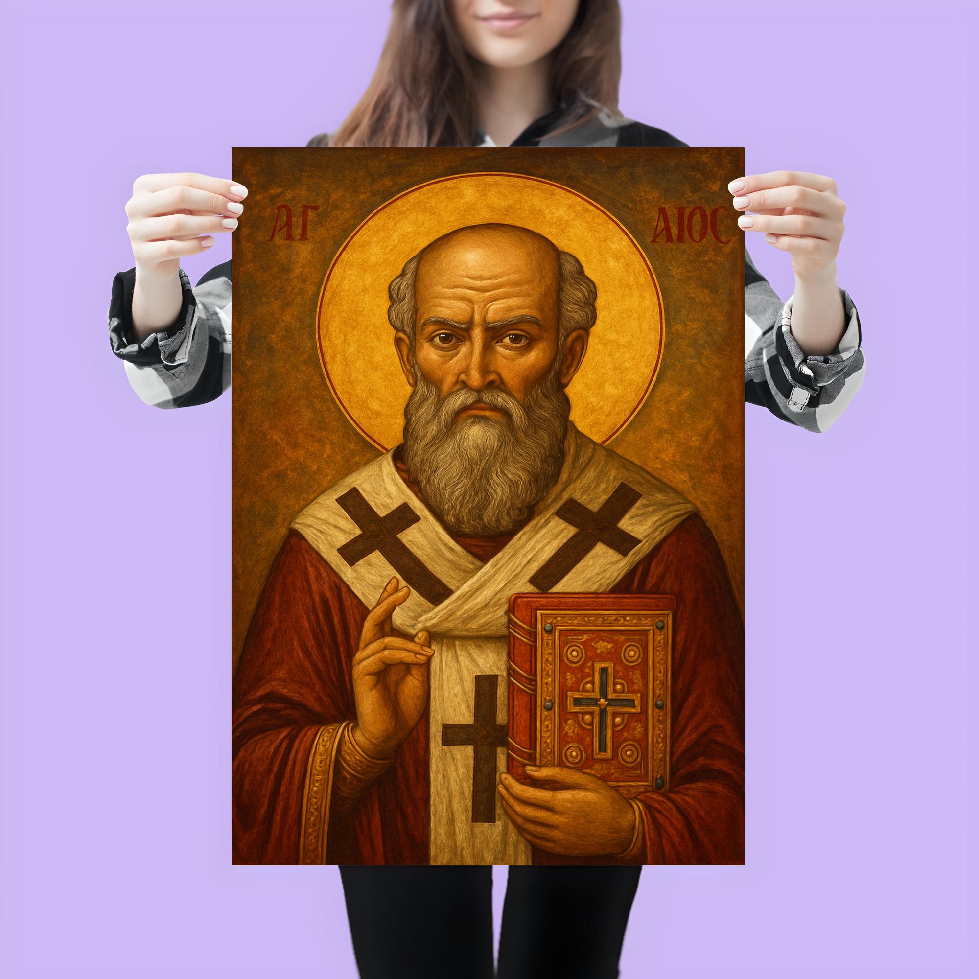 Elevate your space with this inspiring poster of Saint Athanasius of Alexandria, a towering figure of faith and courage. Celebrate his timeless legacy of wisdom and unwavering conviction, beautifully captured to remind you of strength in conviction and spiritual depth every day. Perfect for devotional settings or as a thoughtful gift, this artwork brings a profound sense of history and devotion into your home.