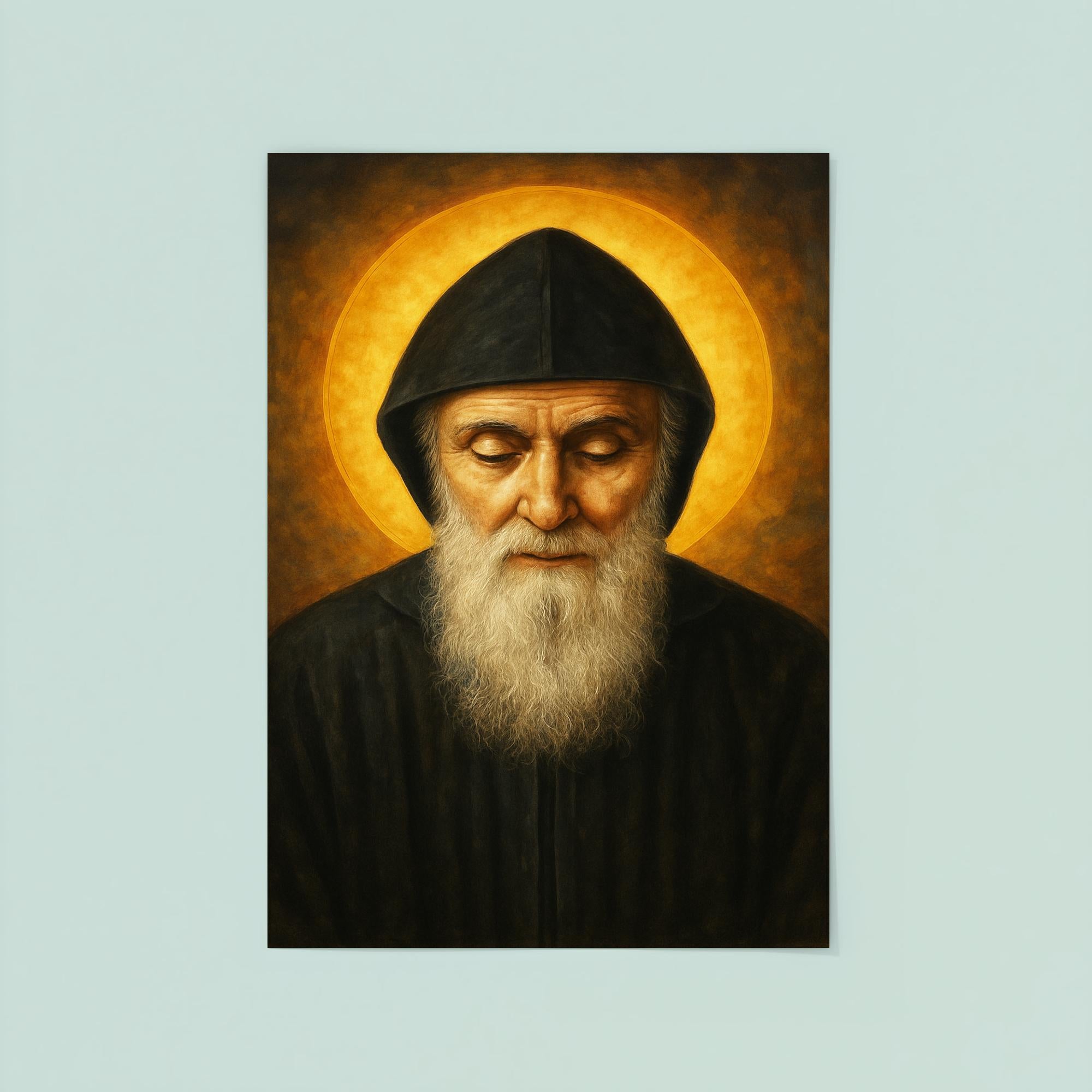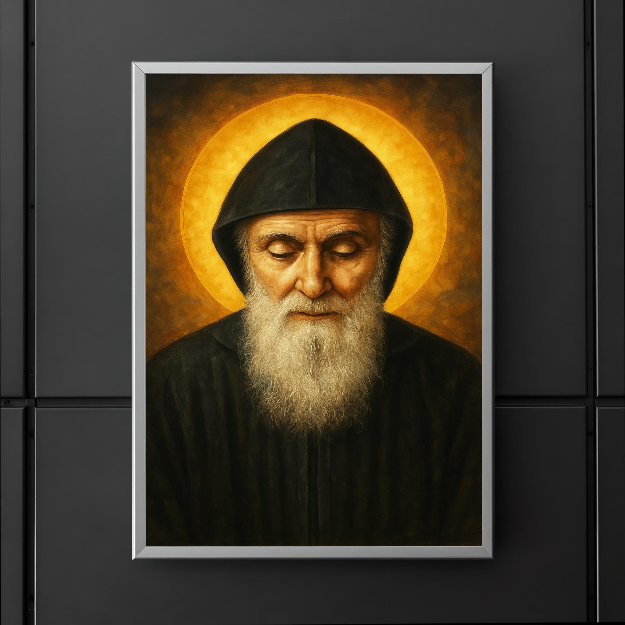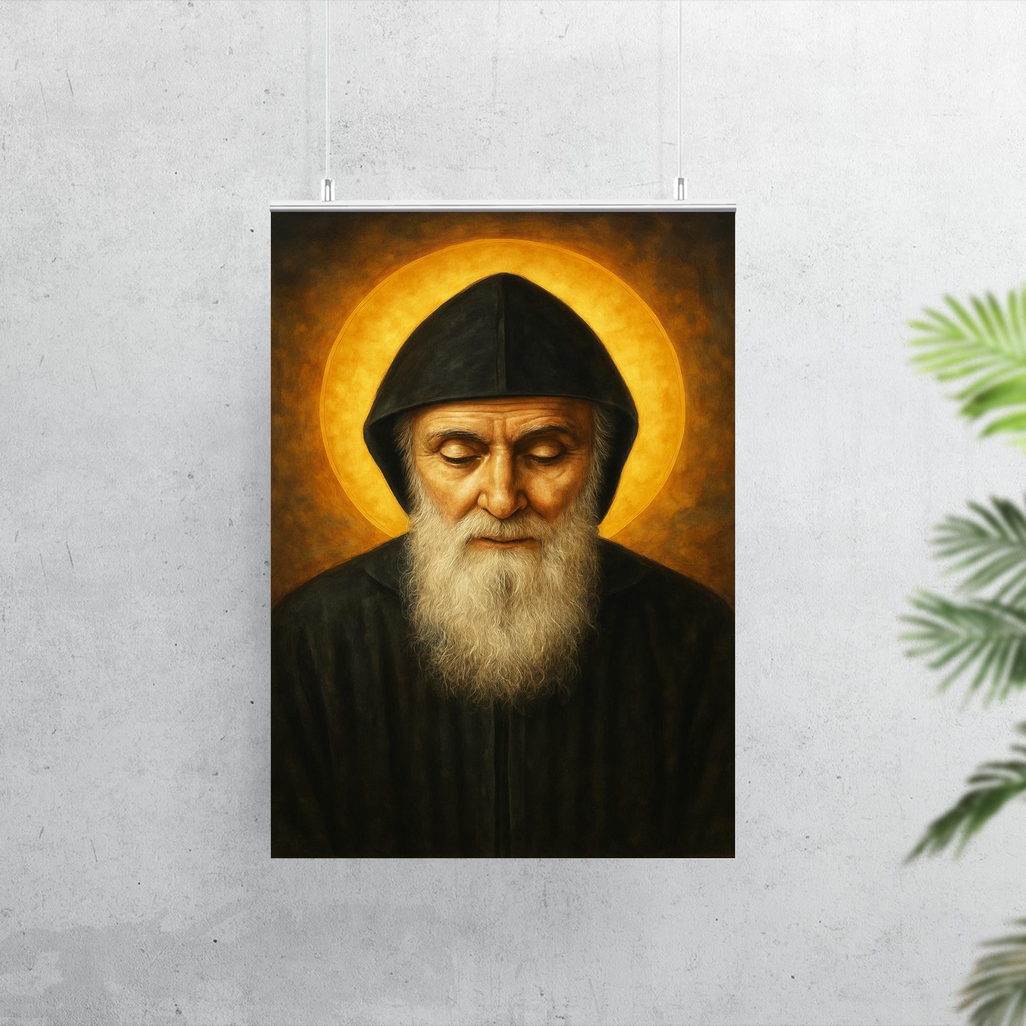 Immerse your space in profound serenity with this striking poster of Saint Charbel Makhlouf, a beacon of faith and healing. Celebrating the enduring spirit of this revered Lebanese monk, the artwork invites reflection and inspiration, making it a meaningful addition to any home or sacred space. Elevate your surroundings with a tribute to devotion that resonates beyond the ordinary.