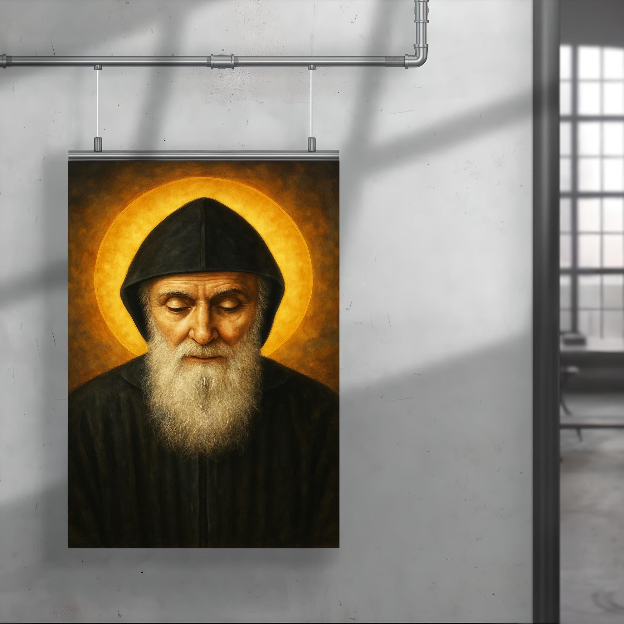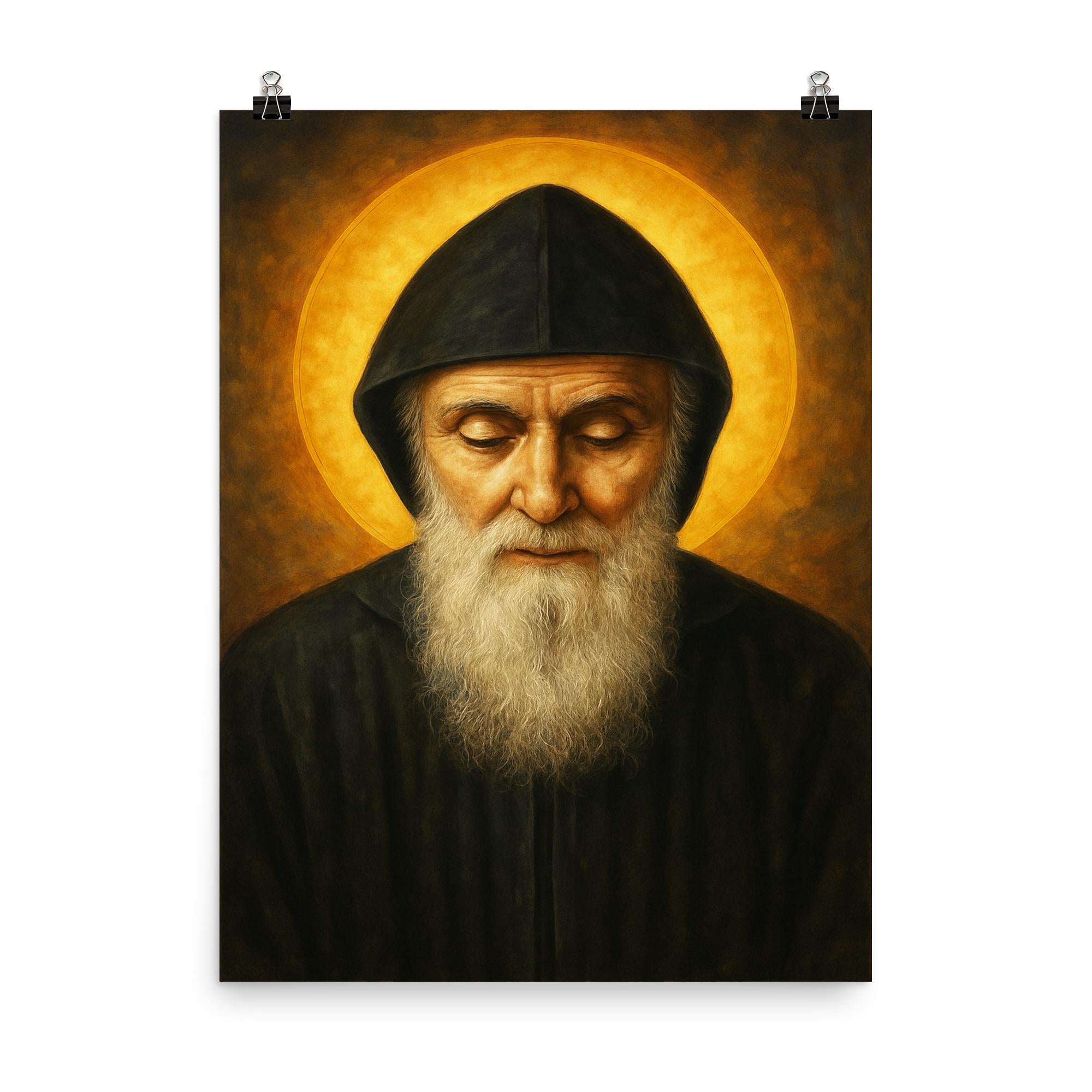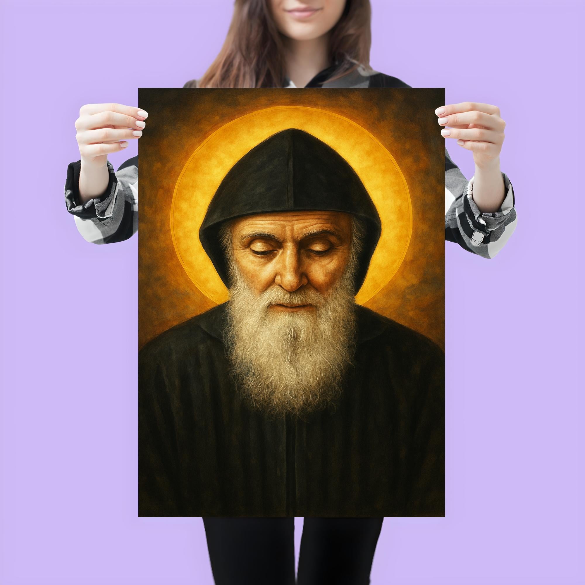 Immerse your space in profound serenity with this striking poster of Saint Charbel Makhlouf, a beacon of faith and healing. Celebrating the enduring spirit of this revered Lebanese monk, the artwork invites reflection and inspiration, making it a meaningful addition to any home or sacred space. Elevate your surroundings with a tribute to devotion that resonates beyond the ordinary.