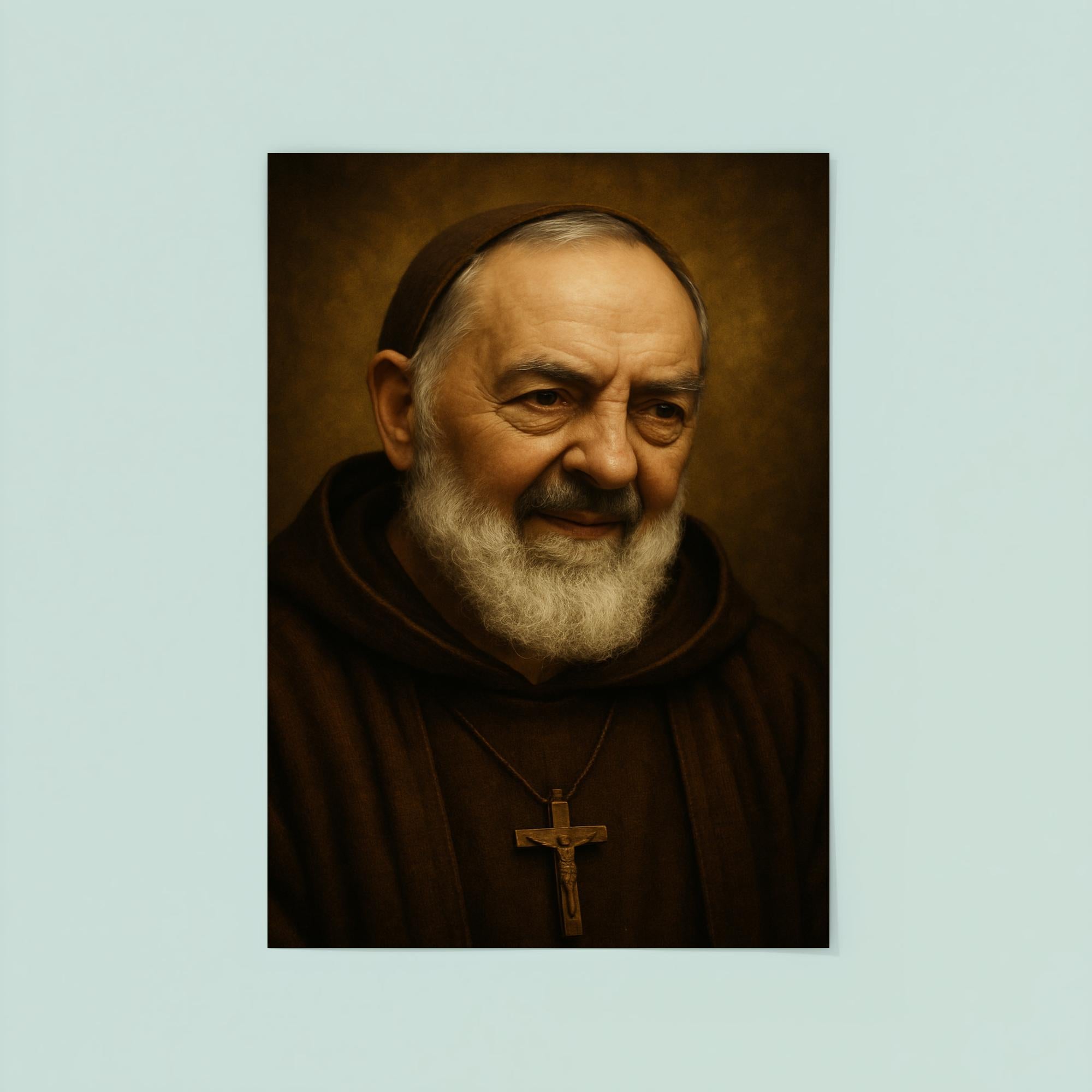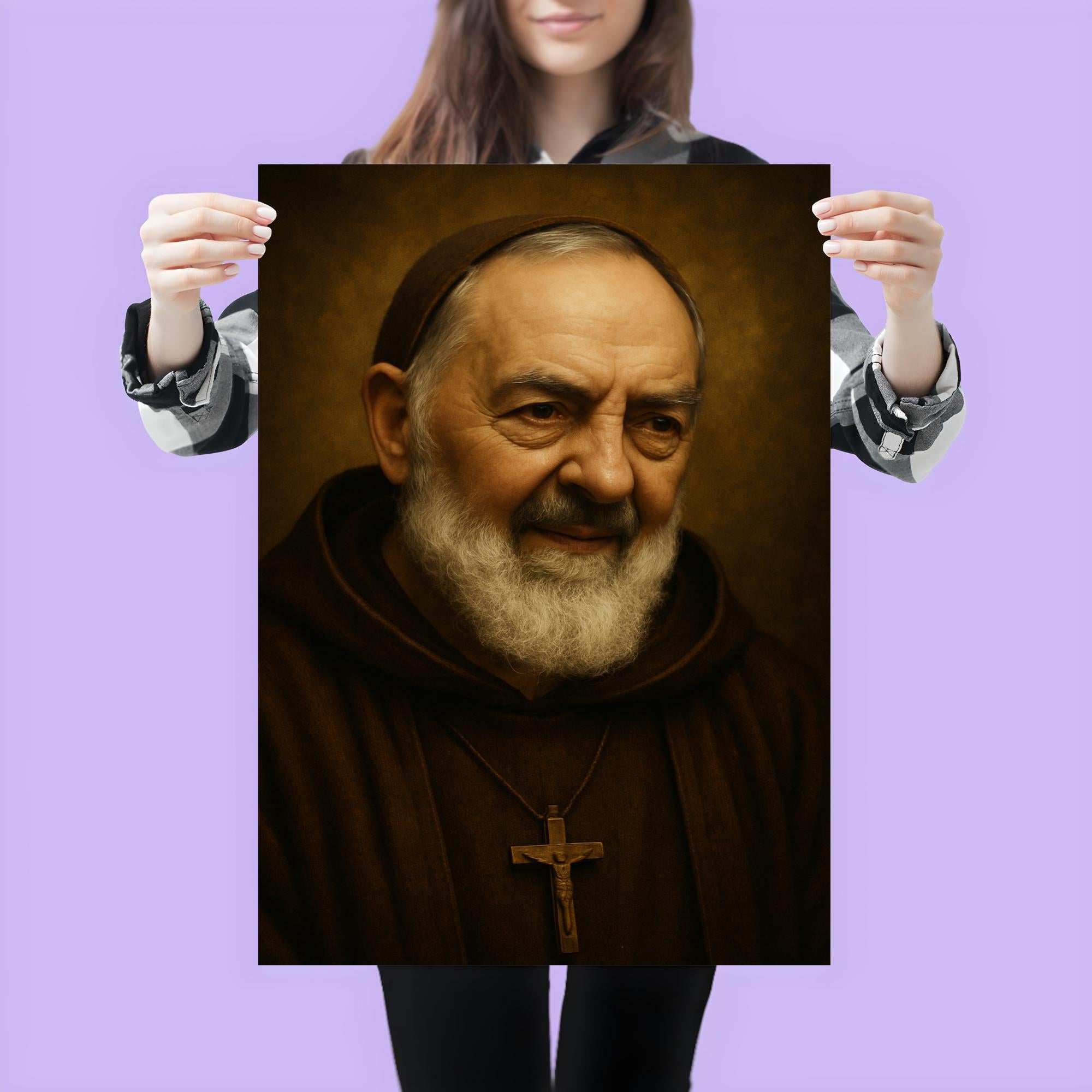 Bring the inspiring presence of Saint Padre Pio into your home with this beautifully crafted portrait poster. Celebrated for his deep faith and miraculous grace, Padre Pio’s image serves as a daily reminder of hope, courage, and spiritual strength. Perfect for any space seeking a touch of devotion and reverence.