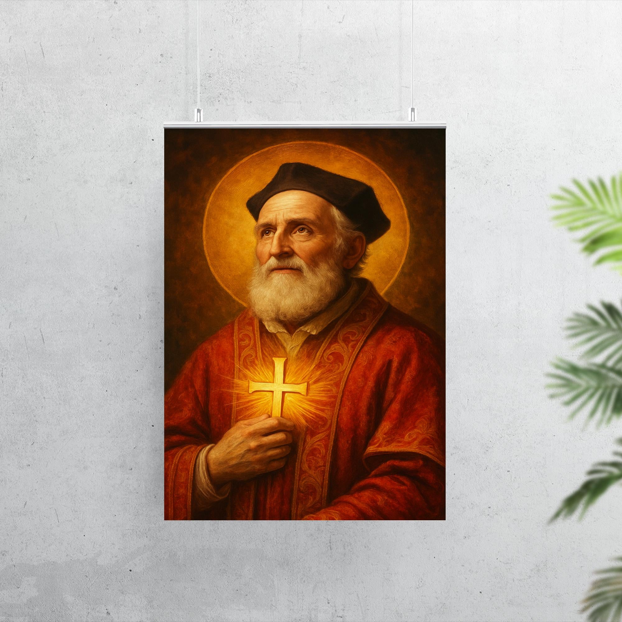 Elevate your space with this inspiring poster of Saint Philip Neri, a beloved figure known for his joyful spirit and profound faith. Perfect for those seeking a daily reminder of humility, kindness, and spiritual devotion, this artwork brings a timeless sense of peace and inspiration to any room. Let Saint Philip Neri’s legacy of love and laughter brighten your home or office.