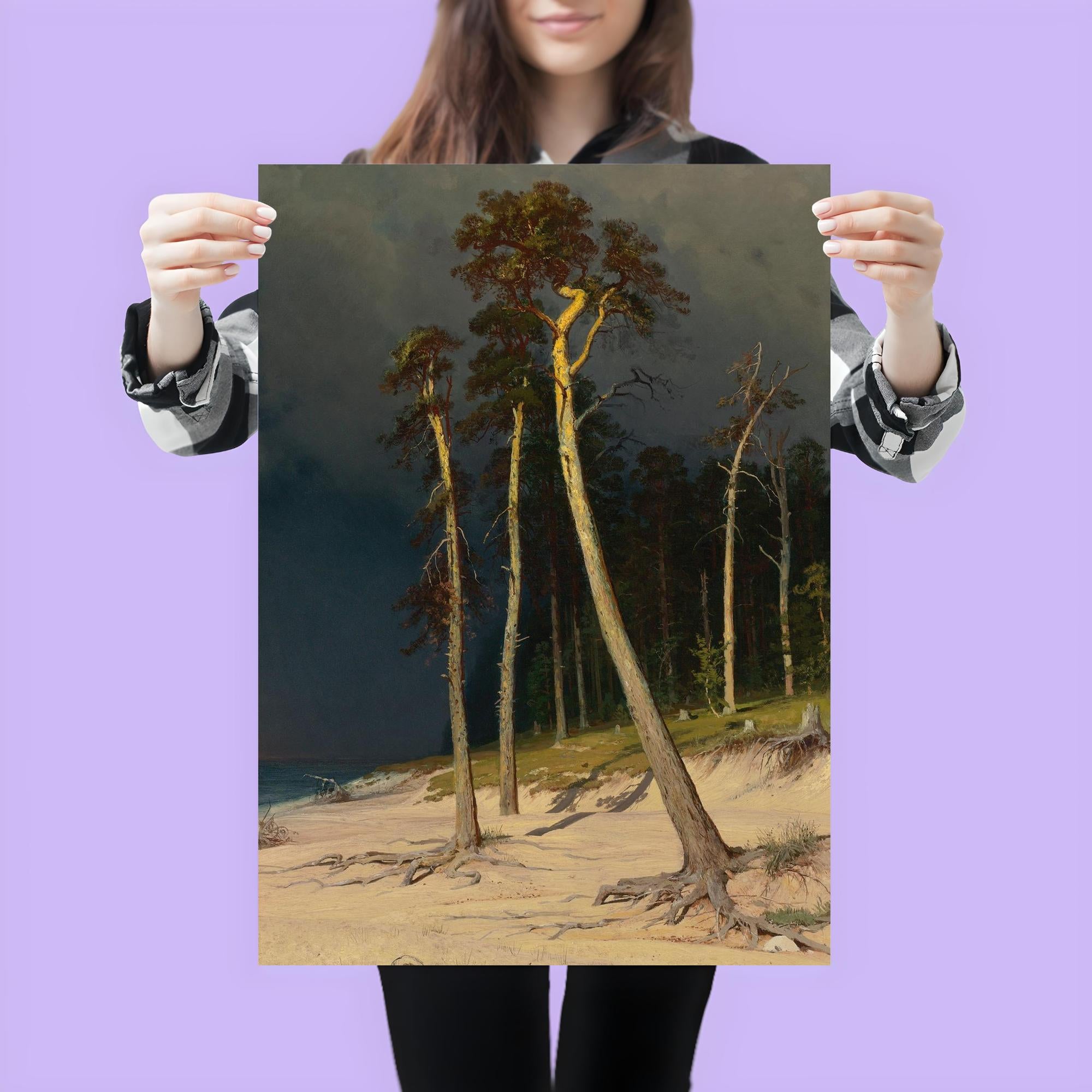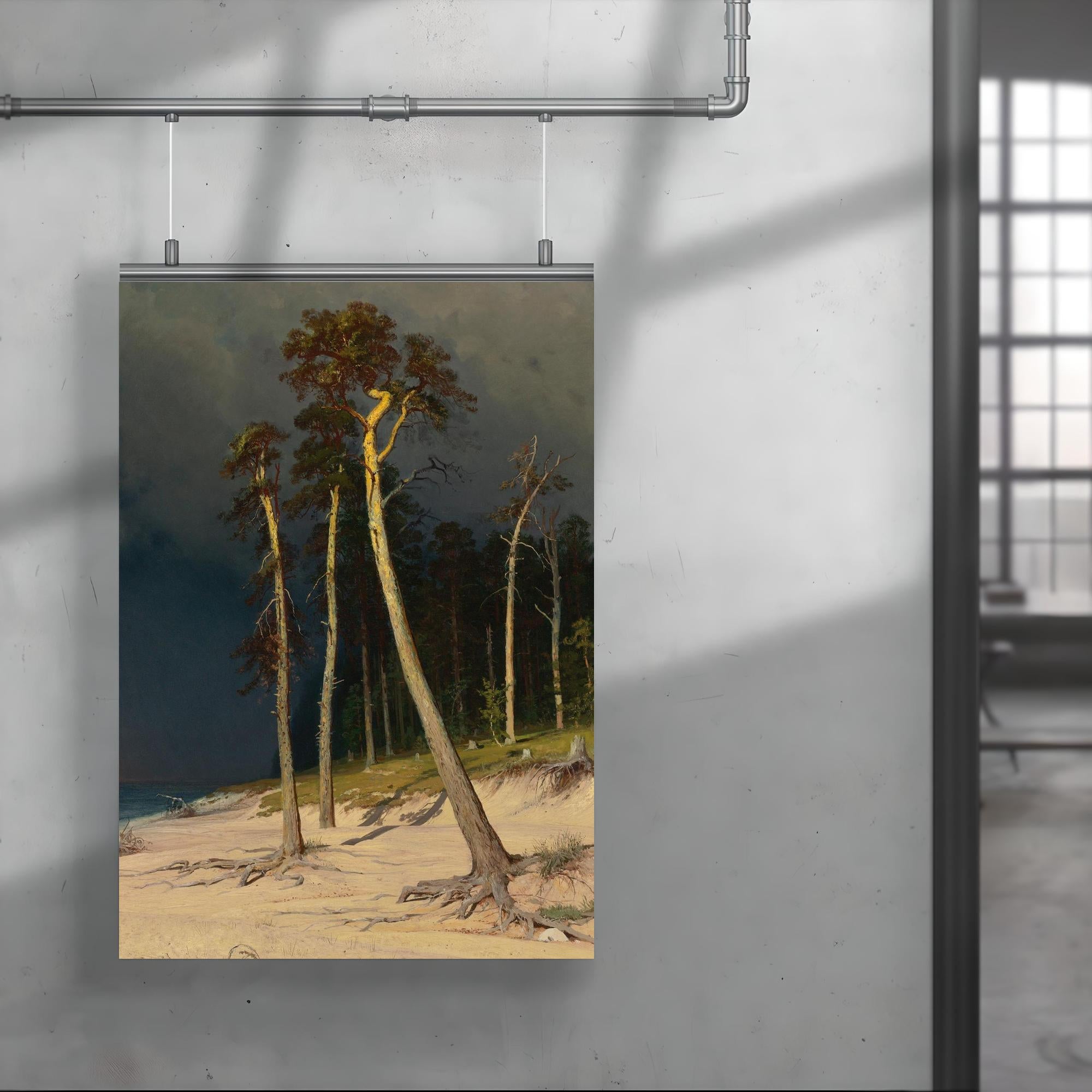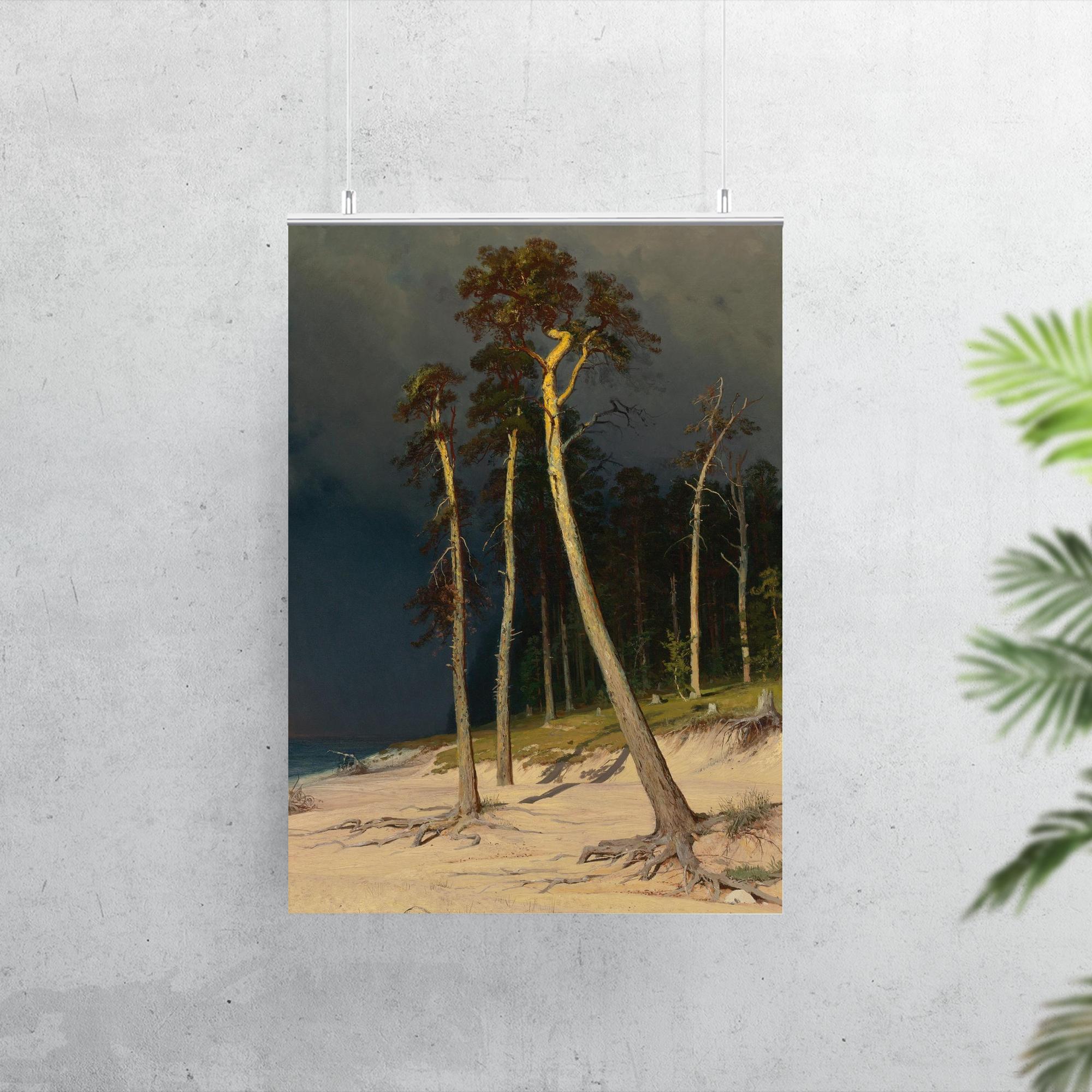 Bring the serene beauty of nature into your space with Ivan Ivanovich Shishkin’s "Sandy Coastline." This poster captures the timeless tranquility of the shore, inviting you to pause and enjoy a moment of peaceful reflection every day. Perfect for adding a touch of calm elegance to any room.