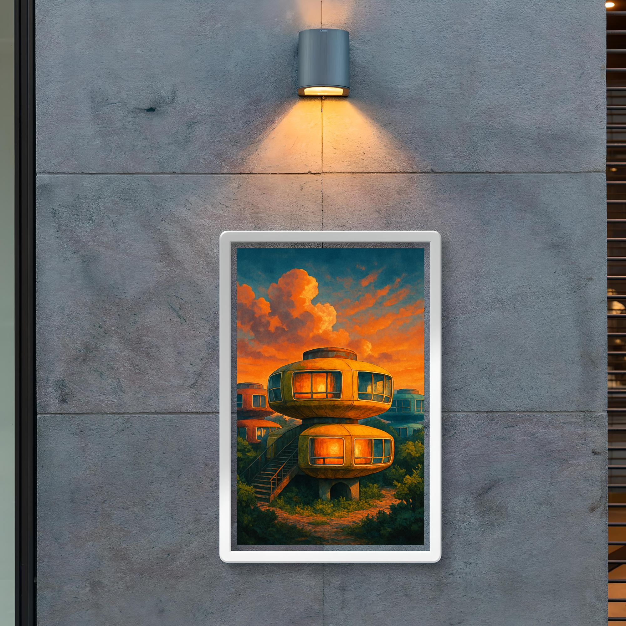 Step into a glimpse of the extraordinary with this striking poster of Taiwan’s iconic Sanzhi UFO Houses. Capturing the futuristic charm of these unique architectural marvels, the artwork invites you to experience a blend of innovation and mystery that has fascinated visitors for decades. Perfect for lovers of design and adventure, this poster transforms any space into a gateway to imagination.