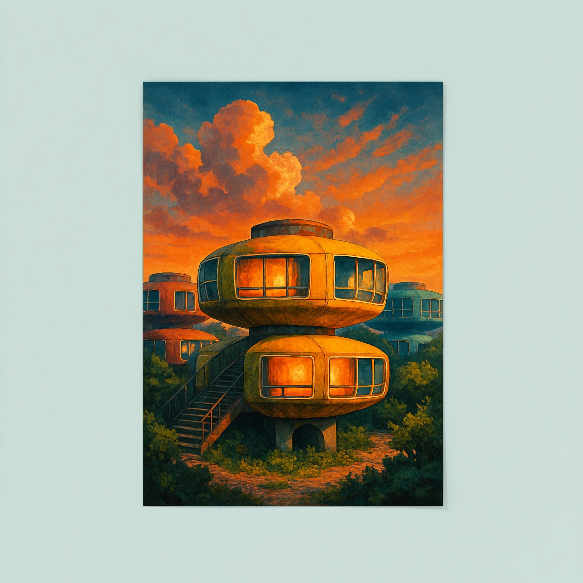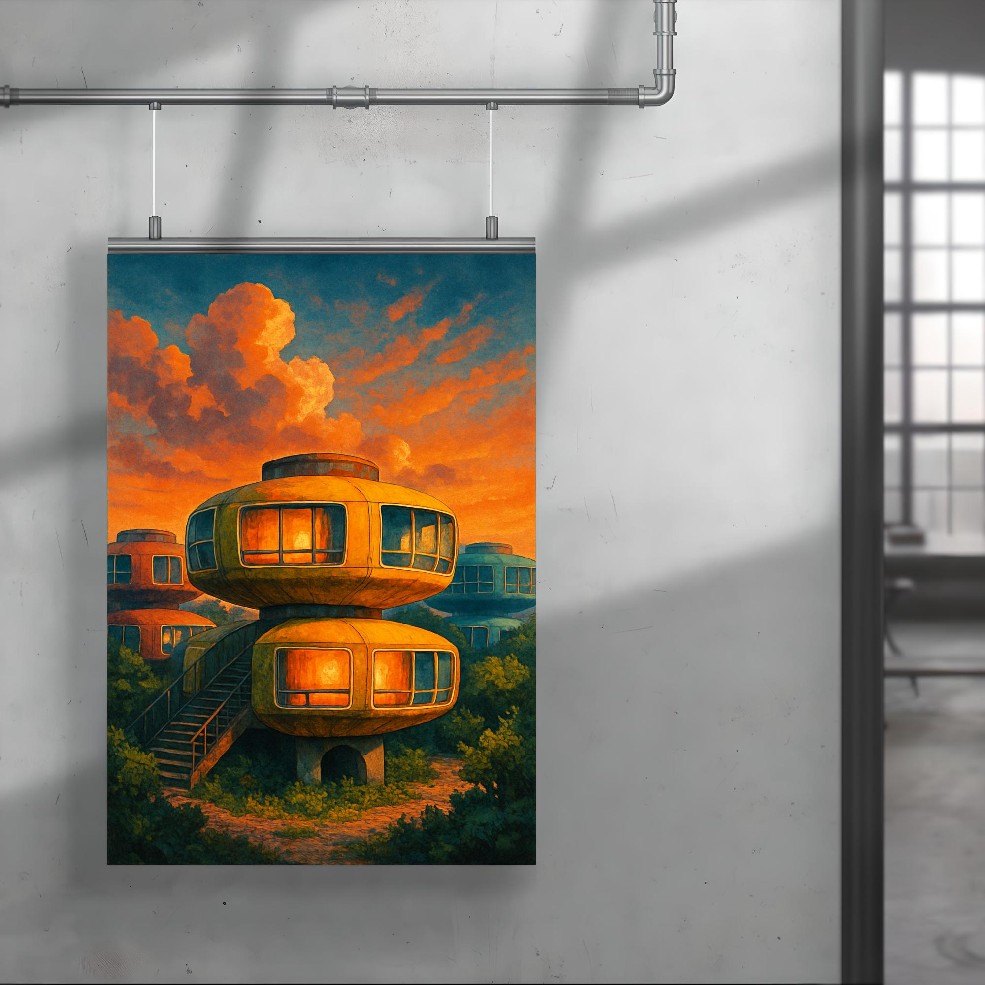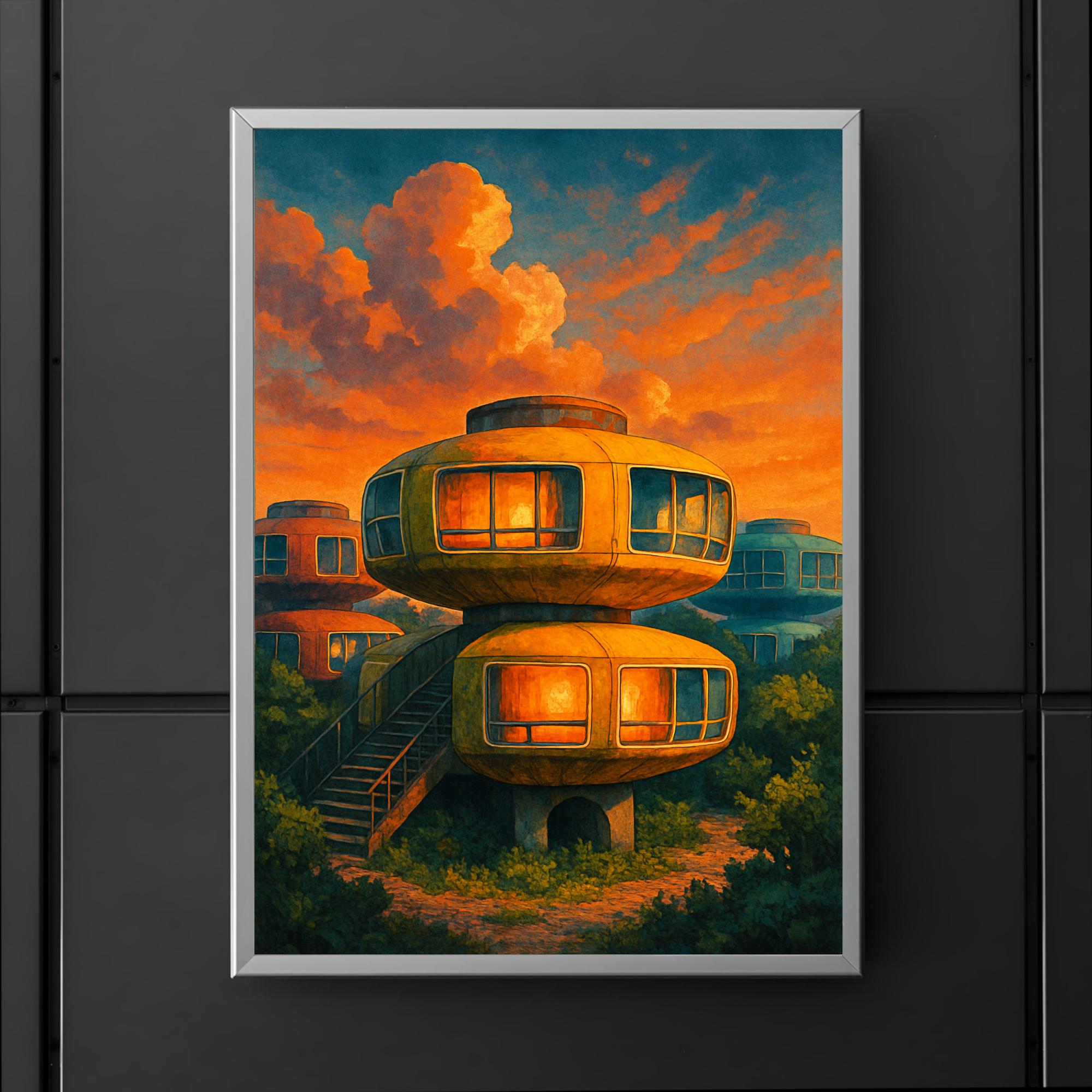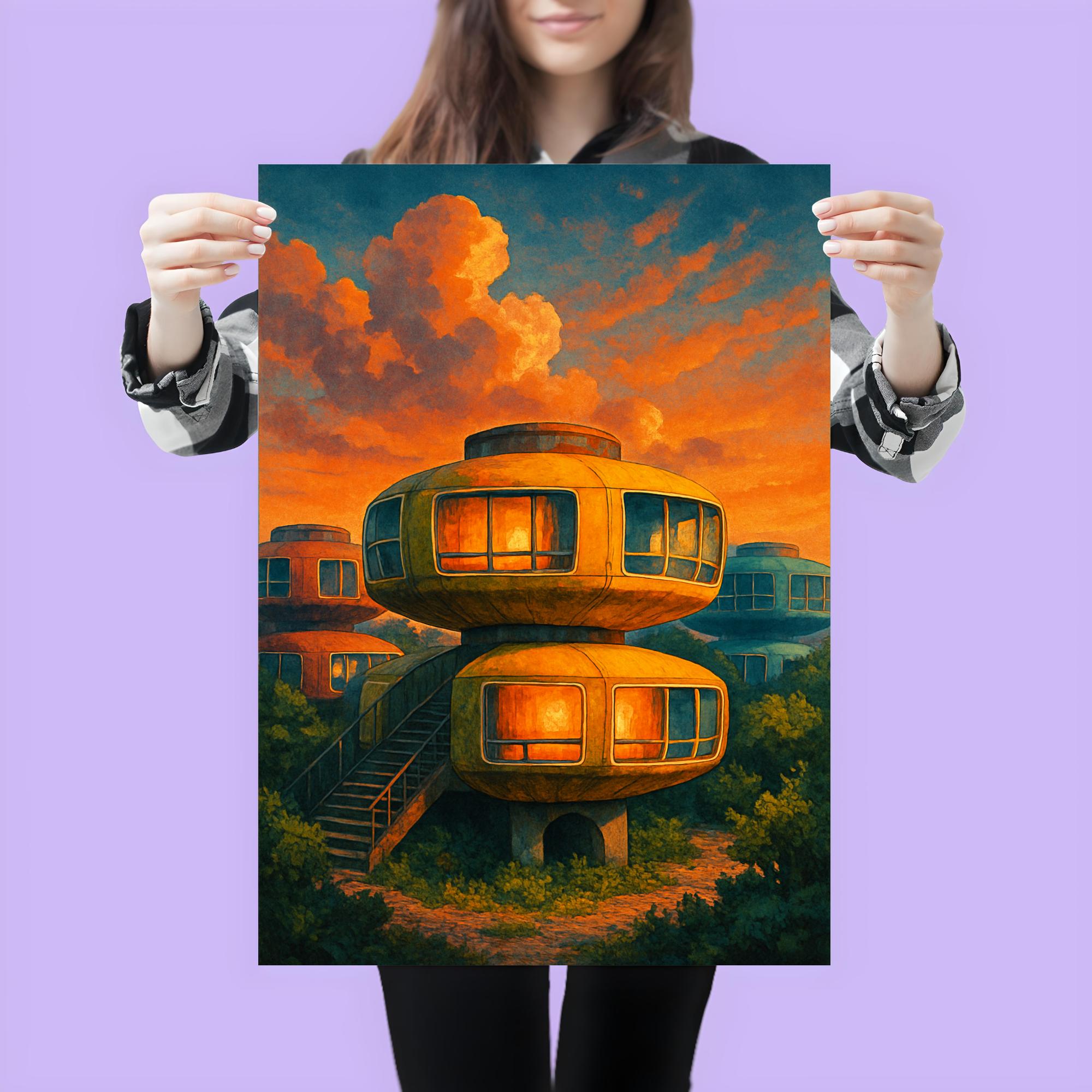 Sanzhi UFO Houses Taiwan Poster Print – Vintage Futuristic Architecture Wall Art, Unique Retro Travel Decor for Home & Office