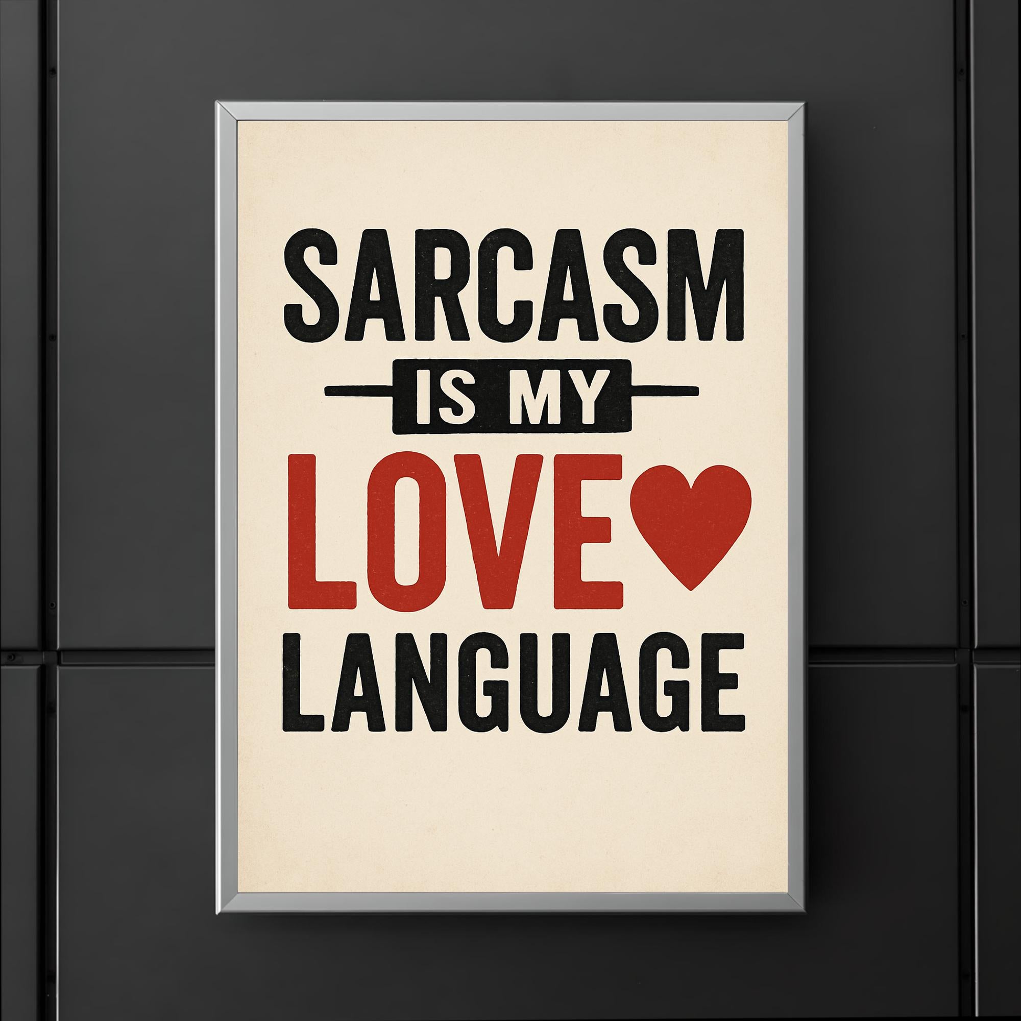 Let your wit do the talking with this “Sarcasm is my love language” poster. Perfect for anyone whose sense of humor comes with a twist, it’s a playful declaration that says exactly what you’re thinking—no translation required. Bring a dose of personality to your space or gift it to the master of dry humor in your life.