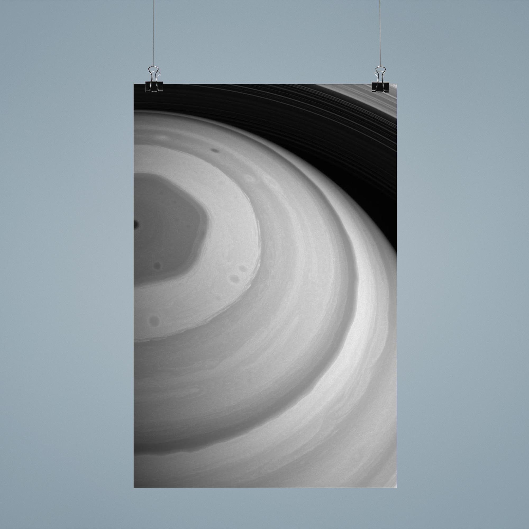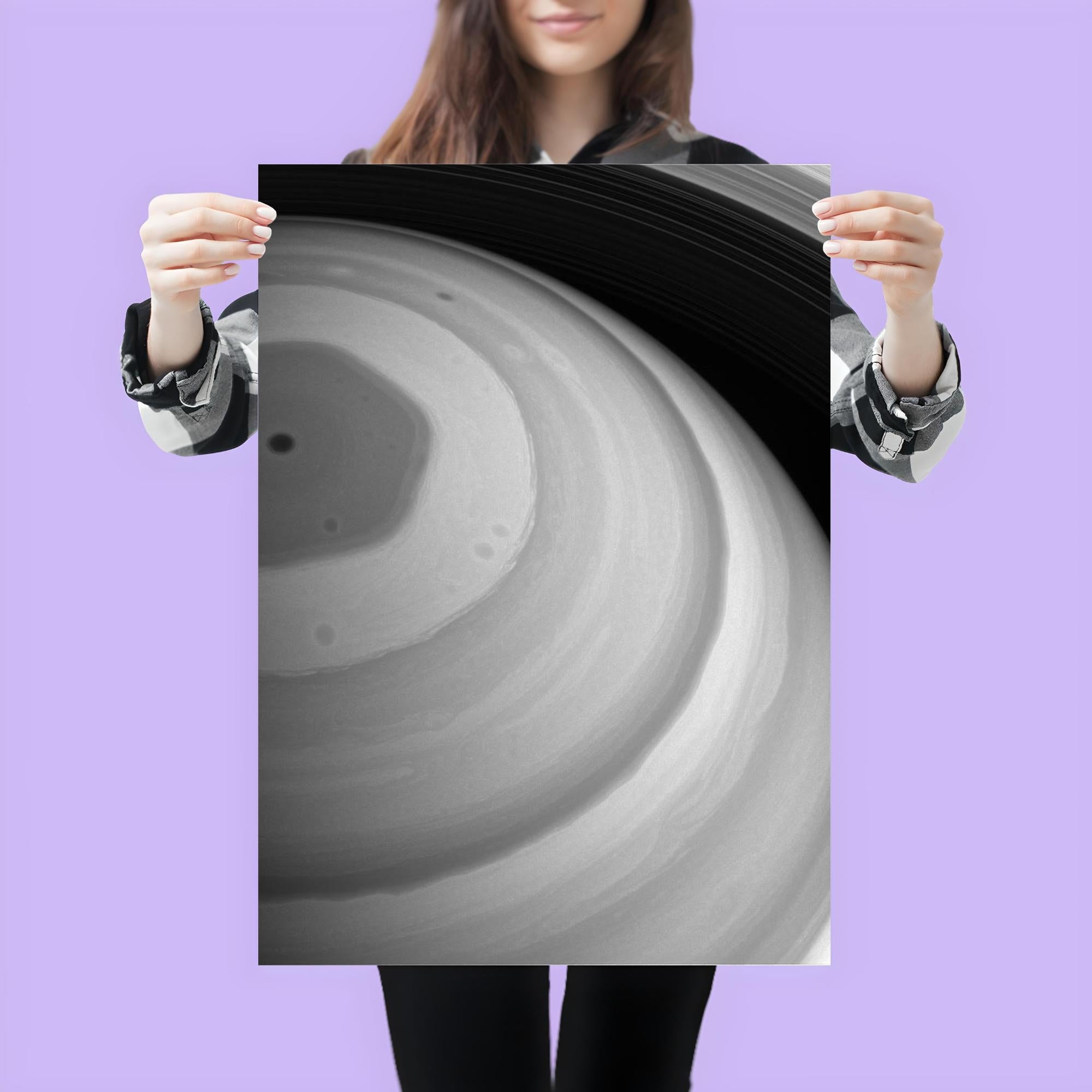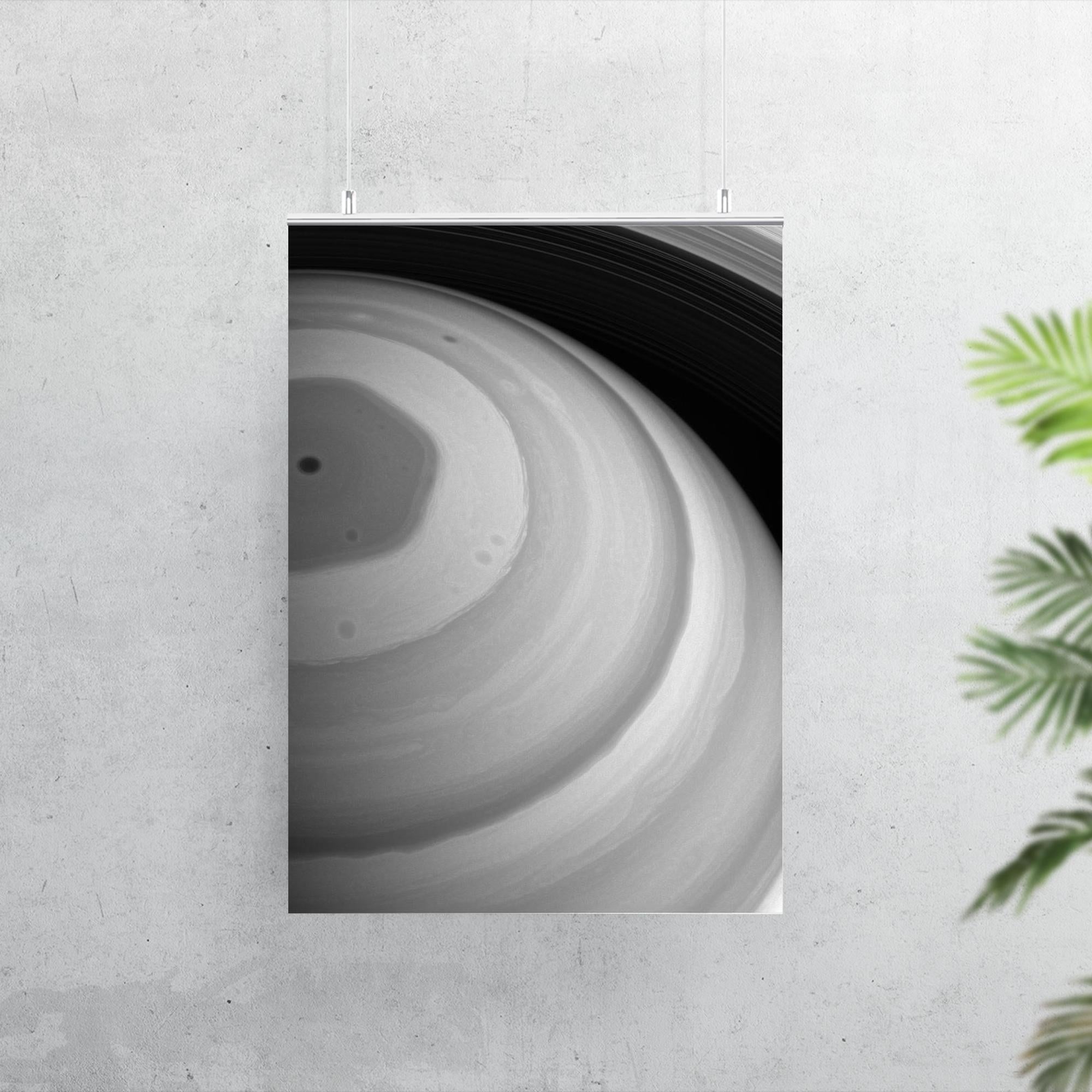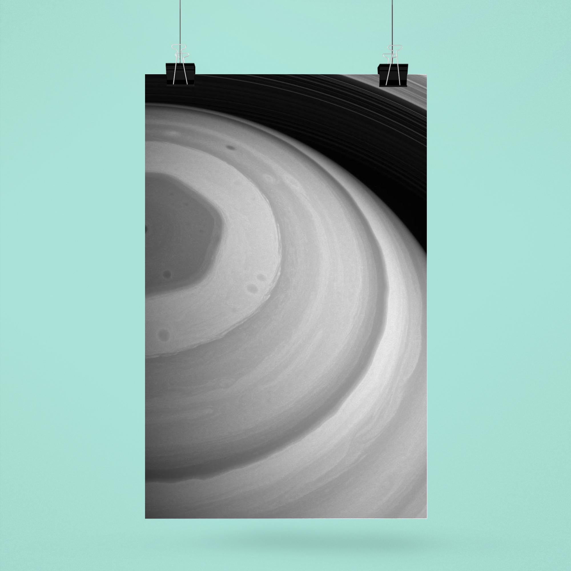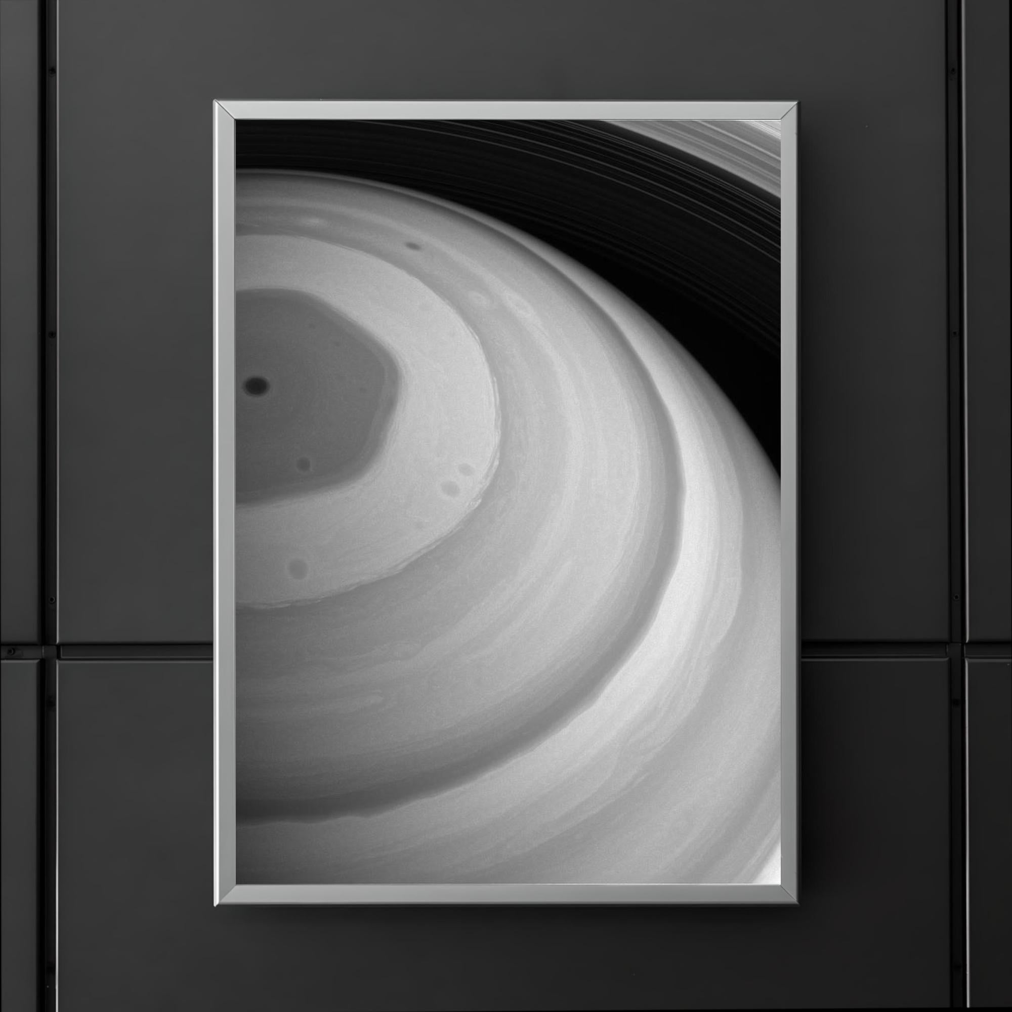 Bring the mesmerizing power of the cosmos into your space with this striking poster of Saturn’s north-pole hexagon storm, captured by the Hubble Telescope in 2020. This rare glimpse into a planetary phenomenon reveals the stunning geometric storm swirling with intense energy, offering a unique window into the wonders of our solar system. Perfect for space enthusiasts and art lovers alike, it’s a captivating conversation piece that inspires awe and curiosity.