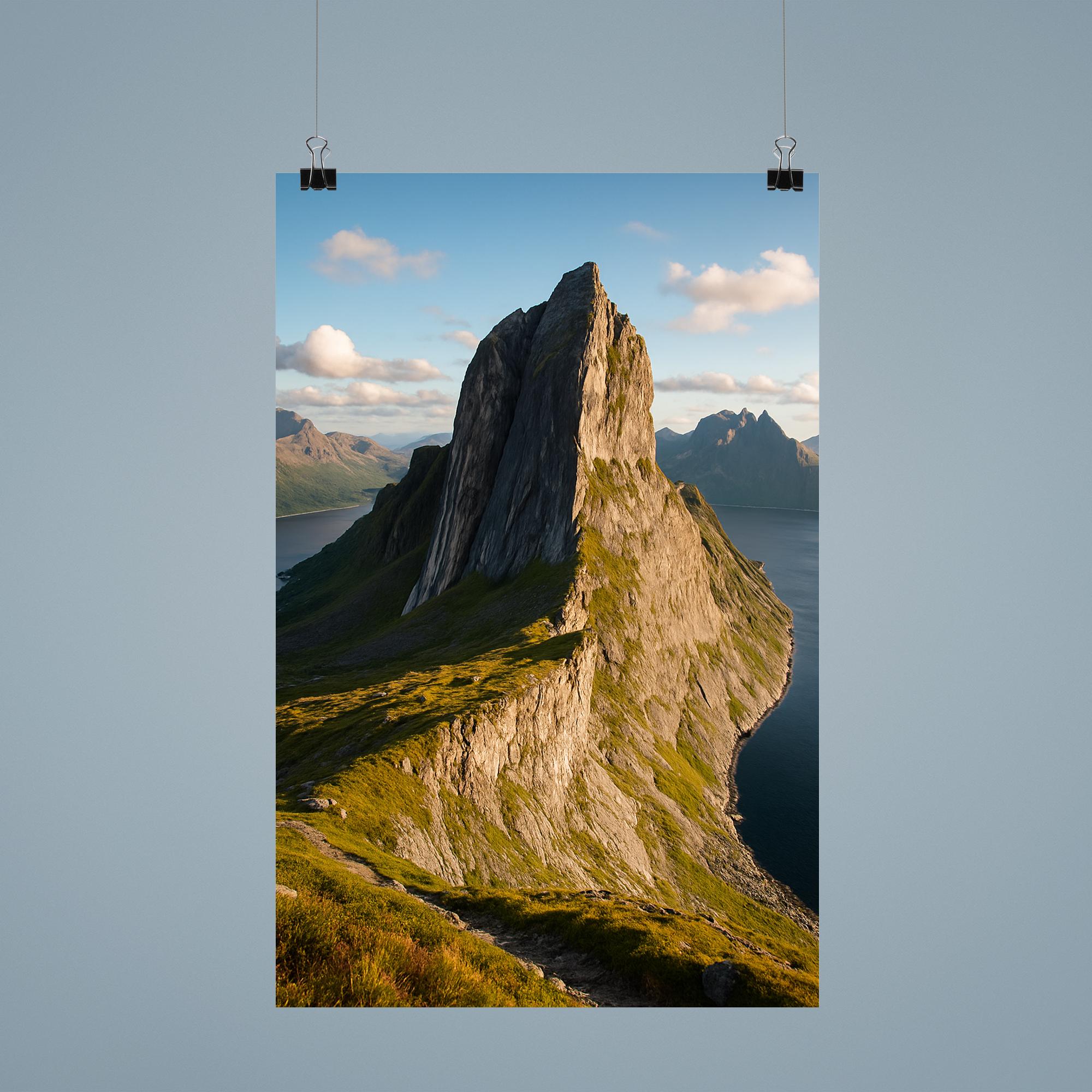Elevate your space with a stunning poster of Segla Peak on Senja, Norway—where nature’s raw beauty meets majestic mountain grandeur. This striking print captures the iconic silhouette of Segla, inviting the awe-inspiring spirit of the Arctic wilderness into your home or office. Perfect for adventurers and nature lovers alike, it’s more than décor—it’s a window to the wild.