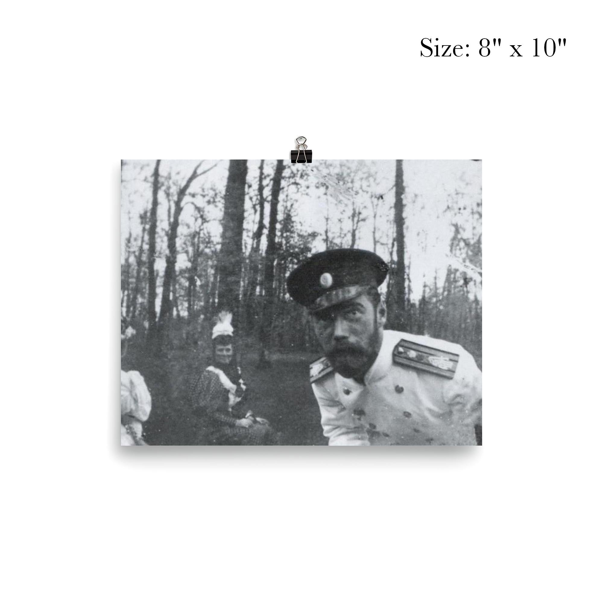 Step back in time with this striking poster featuring a rare selfie of Emperor Nicholas II, offering a personal glimpse into the life of Russia’s last emperor. Capturing a moment frozen between history and modernity, this image transforms any space into a reflection of a pivotal era. Perfect for enthusiasts of history and vintage photography alike, this poster invites you to connect with the past in a uniquely intimate way.