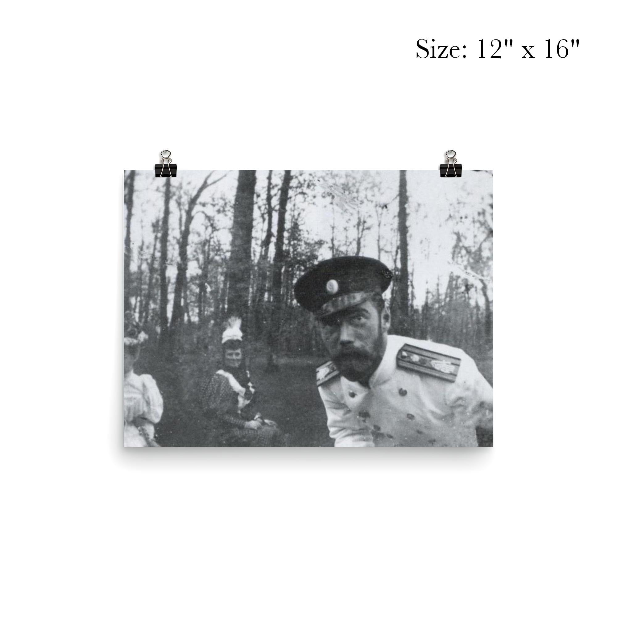 Step back in time with this rare and captivating poster featuring the iconic selfie of Emperor Nicholas II. A remarkable glimpse into history, it showcases the last Russian emperor in an intimate, personal moment that resonates through the ages. Perfect for history enthusiasts and collectors alike, this poster transforms any space into a tribute to a pivotal figure of the early 20th century.