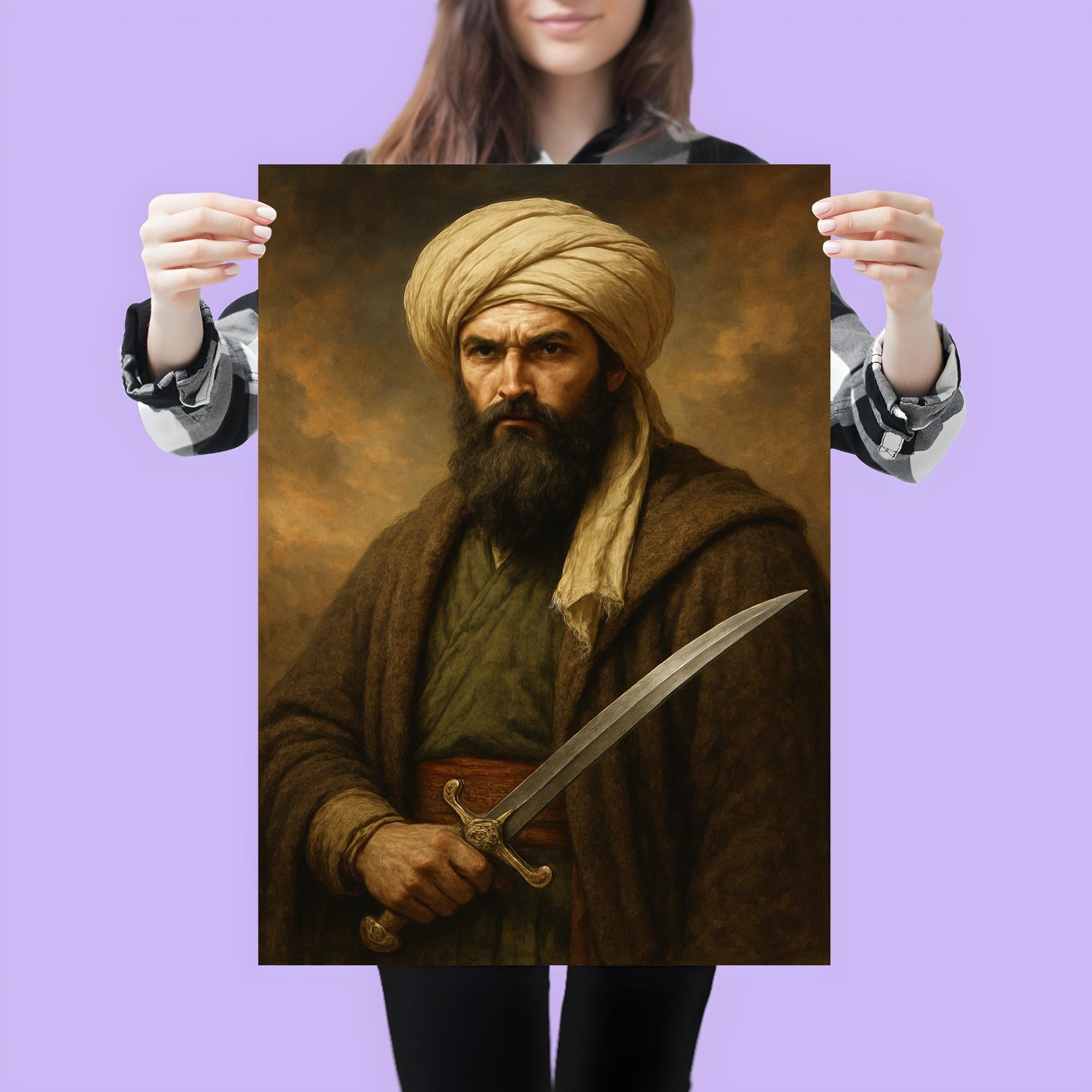 Celebrate the enduring spirit of courage and resilience with this striking poster of Sheikh Mansur. A powerful tribute to a legendary leader, it brings history to life, inspiring strength and pride in every glance. Perfect for those who admire timeless valor and cultural heritage, this poster is a bold statement piece for any space.