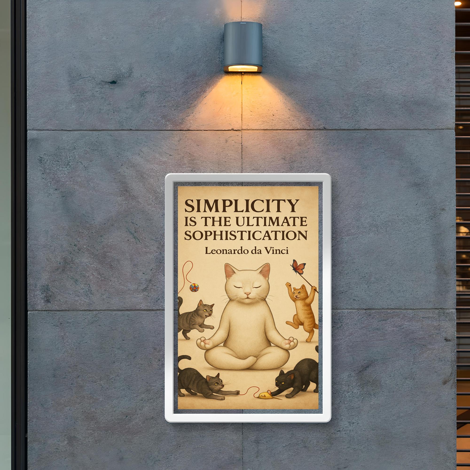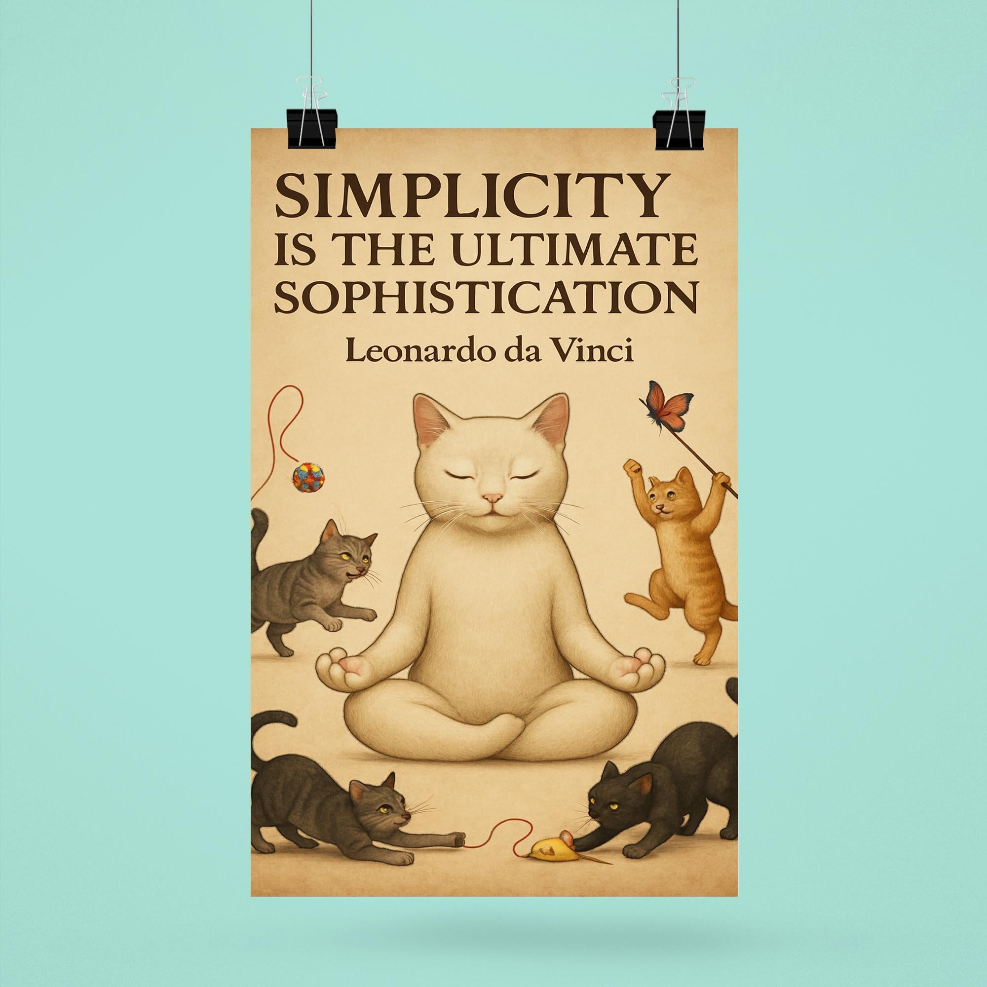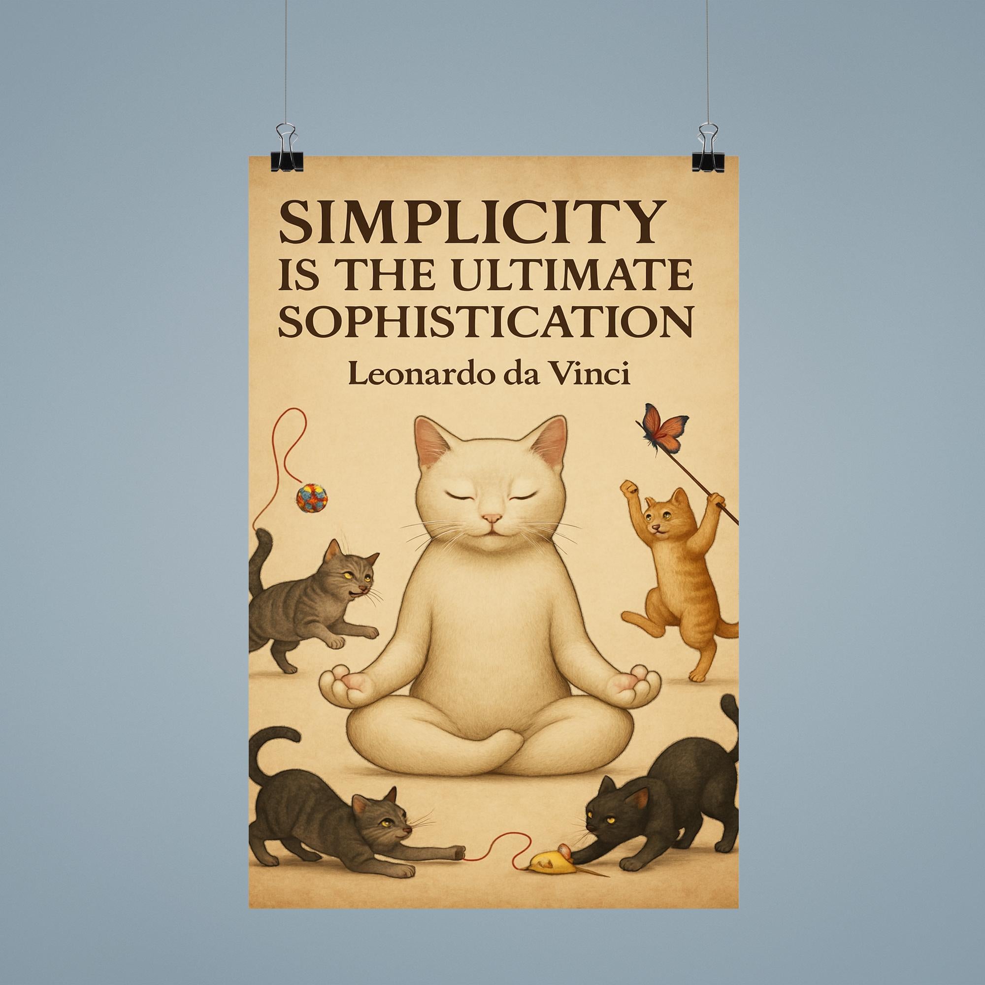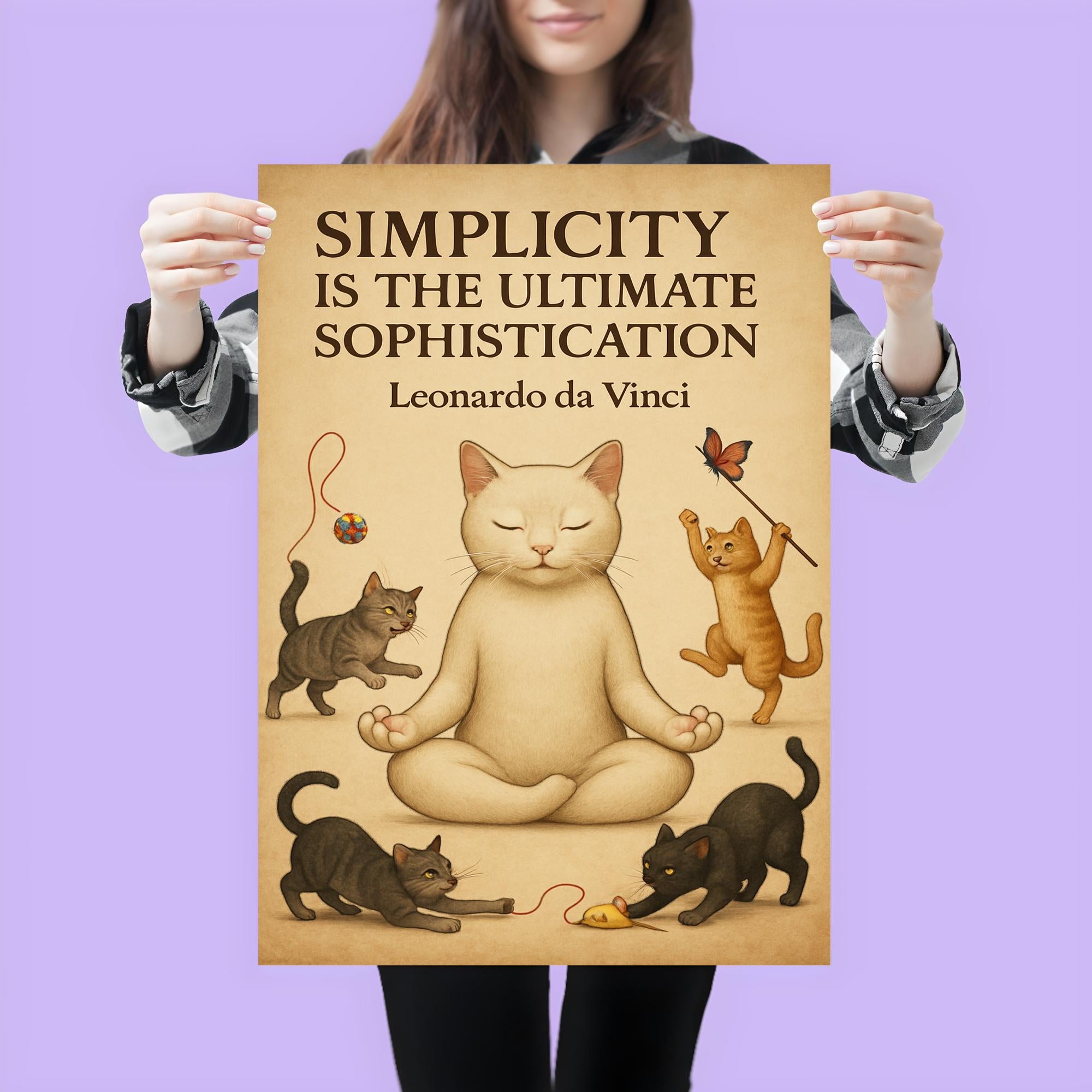 Elevate your space with the timeless calm of the Simplicity Ultimate Sophistication poster. Featuring da Vinci’s iconic blend of artistry and harmony, this Zen cat in meditation invites serenity and refined elegance into any room. Perfect for those who appreciate subtle sophistication and mindful moments.