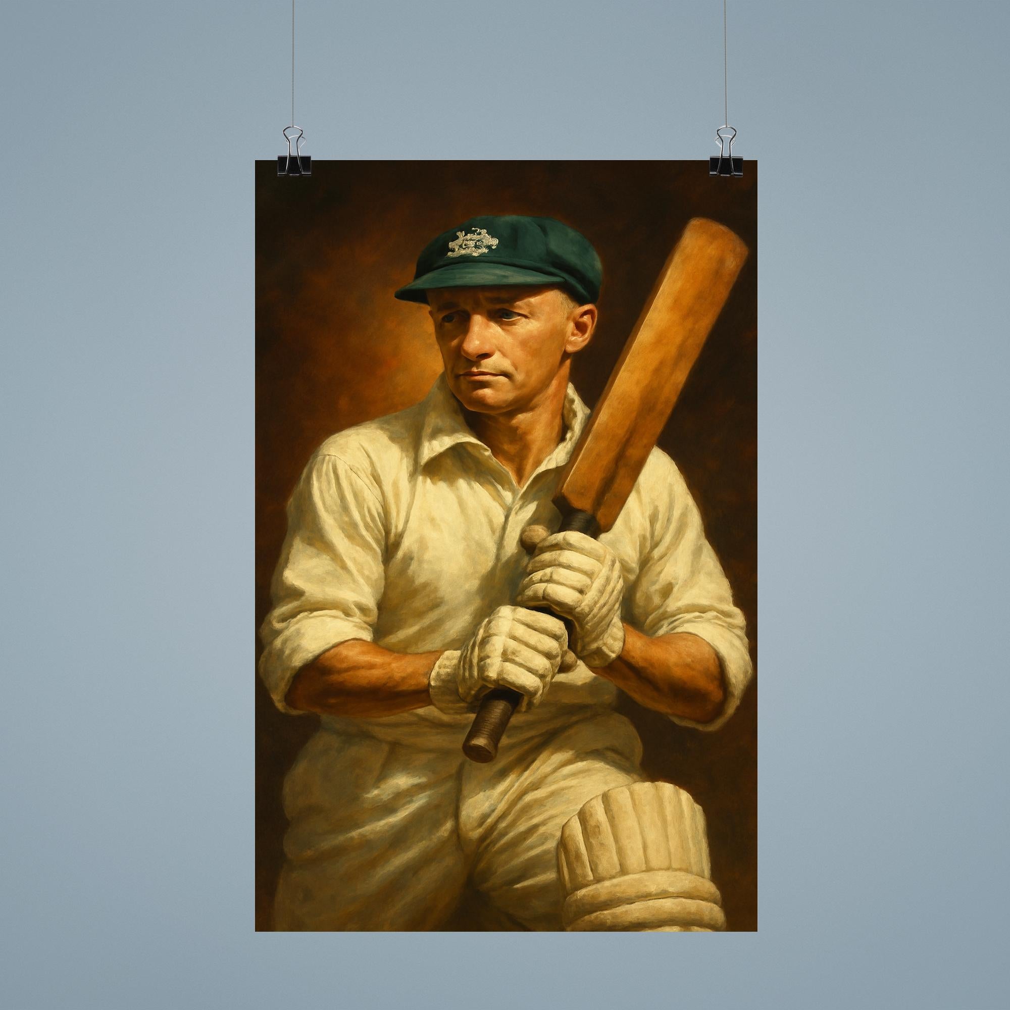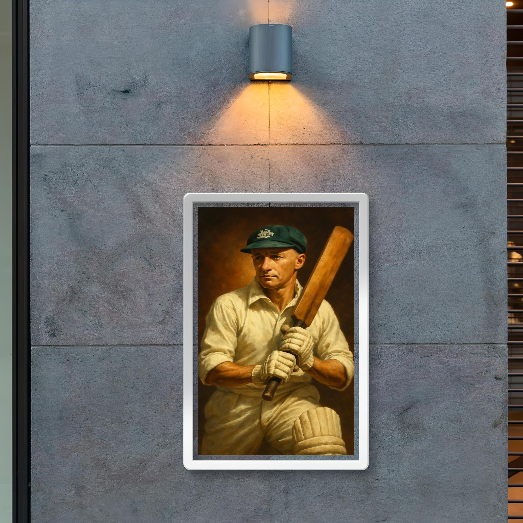 Celebrate the legend of cricket with this striking Sir Donald Bradman poster, honoring the unparalleled skill and legacy of the sport’s greatest batsman. Perfect for enthusiasts and collectors alike, this poster captures the spirit of an icon whose records and sportsmanship continue to inspire generations. Bring the essence of cricketing greatness into your space with a timeless tribute to The Don.