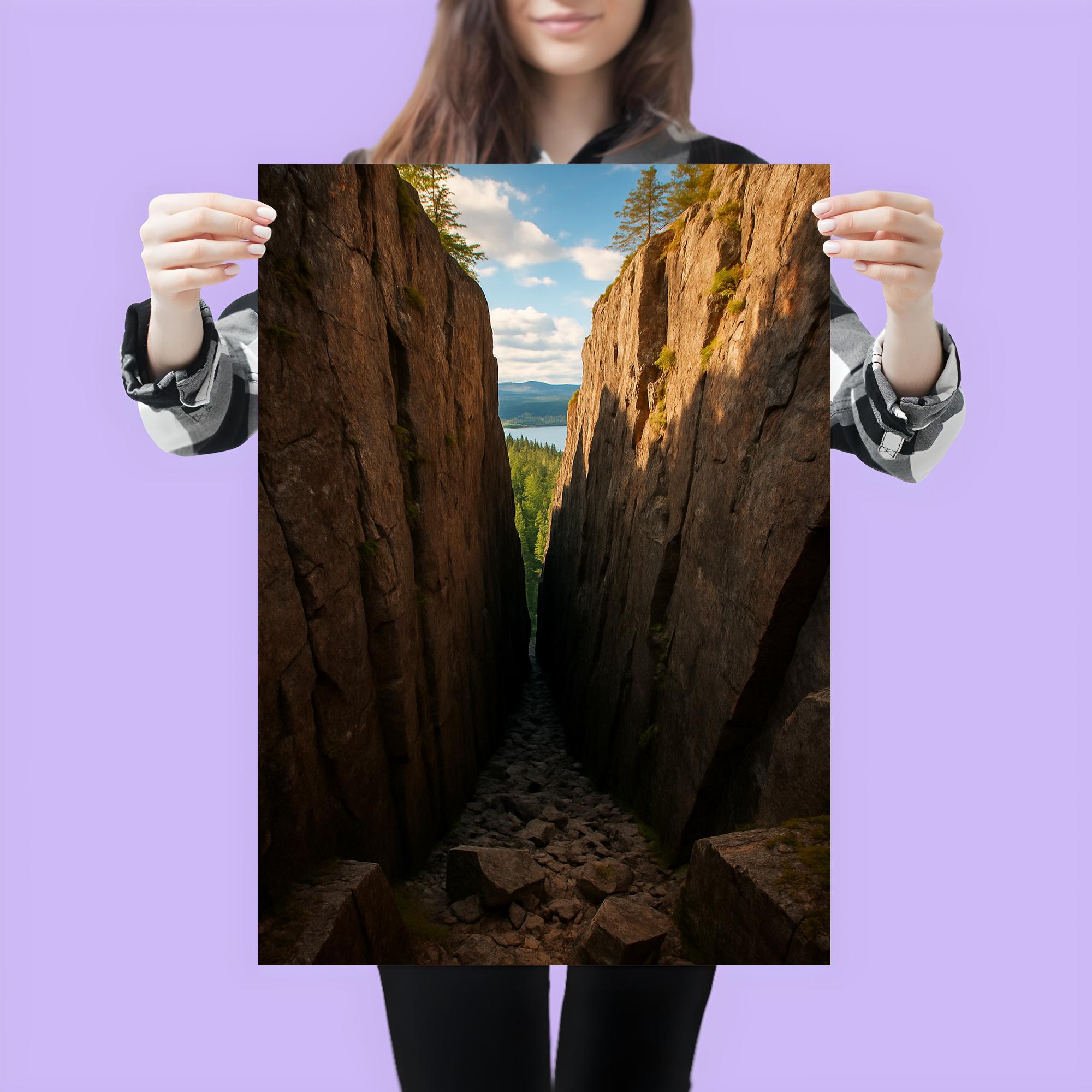 Transform your space with this striking poster of Slattdalsskrevan Crevasse in Skuleskogen, Sweden. Capturing the raw and rugged beauty of one of Sweden’s most dramatic natural formations, this artwork brings a powerful sense of adventure and tranquility to any room. Perfect for nature lovers and explorers alike, it’s a timeless tribute to Sweden’s awe-inspiring wilderness.