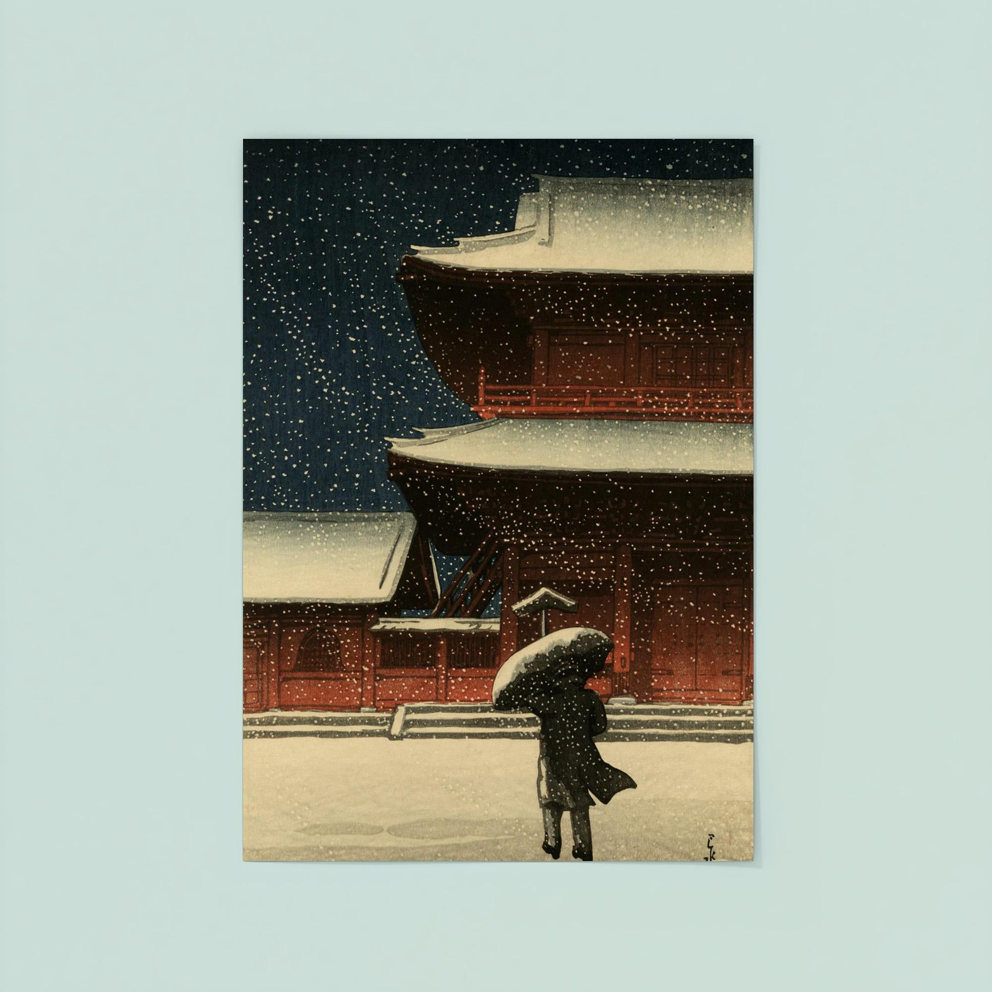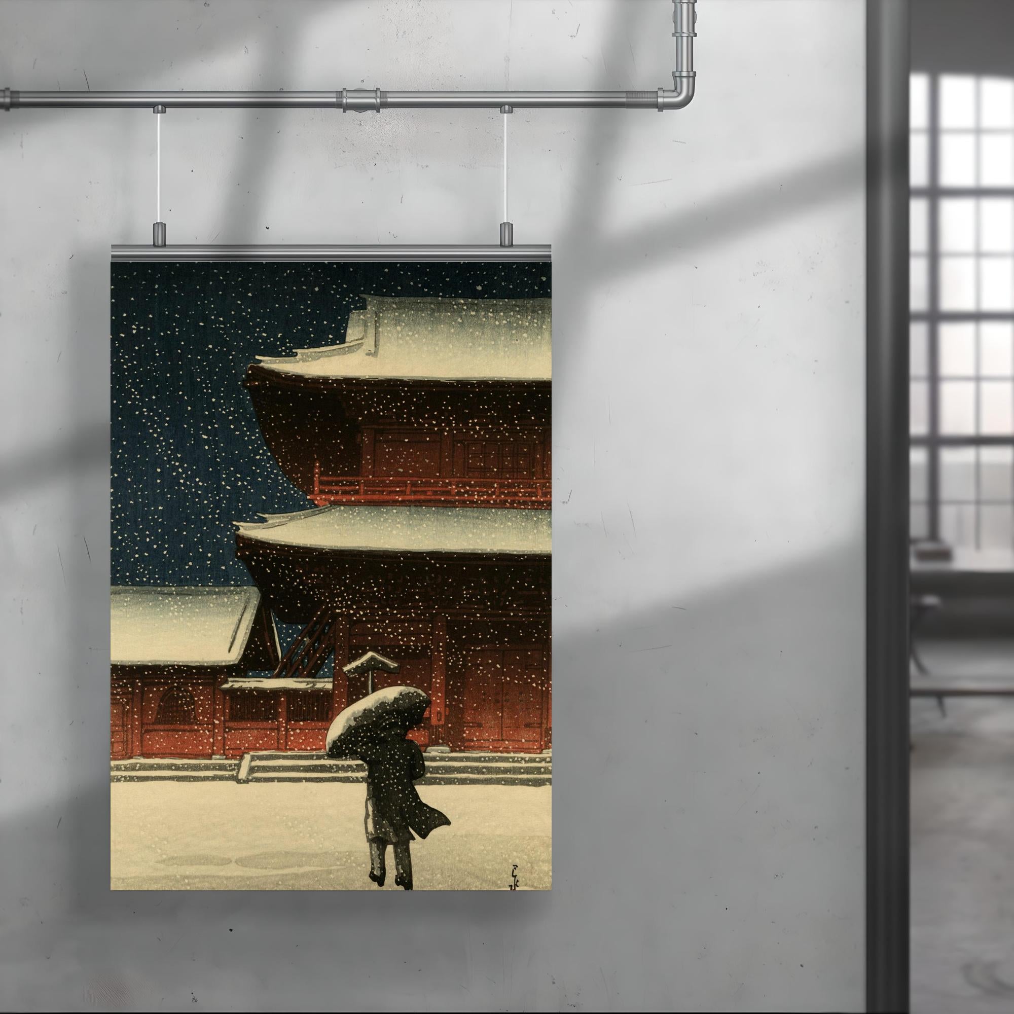 Snow at Zojo-ji Temple Kawase Hasui Poster Print – Japanese Winter Landscape Wall Art, Authentic Ukiyo-e Style Home Decor