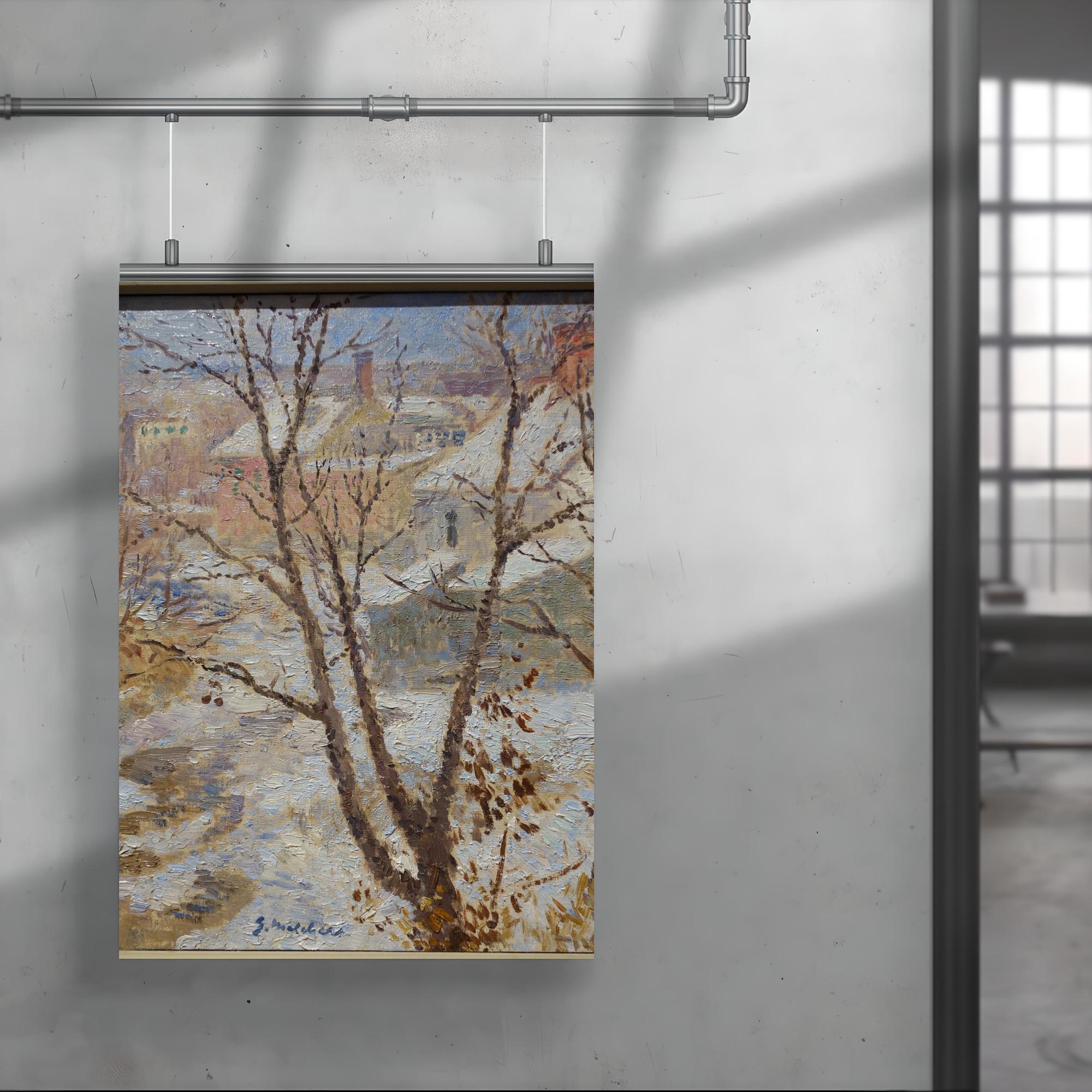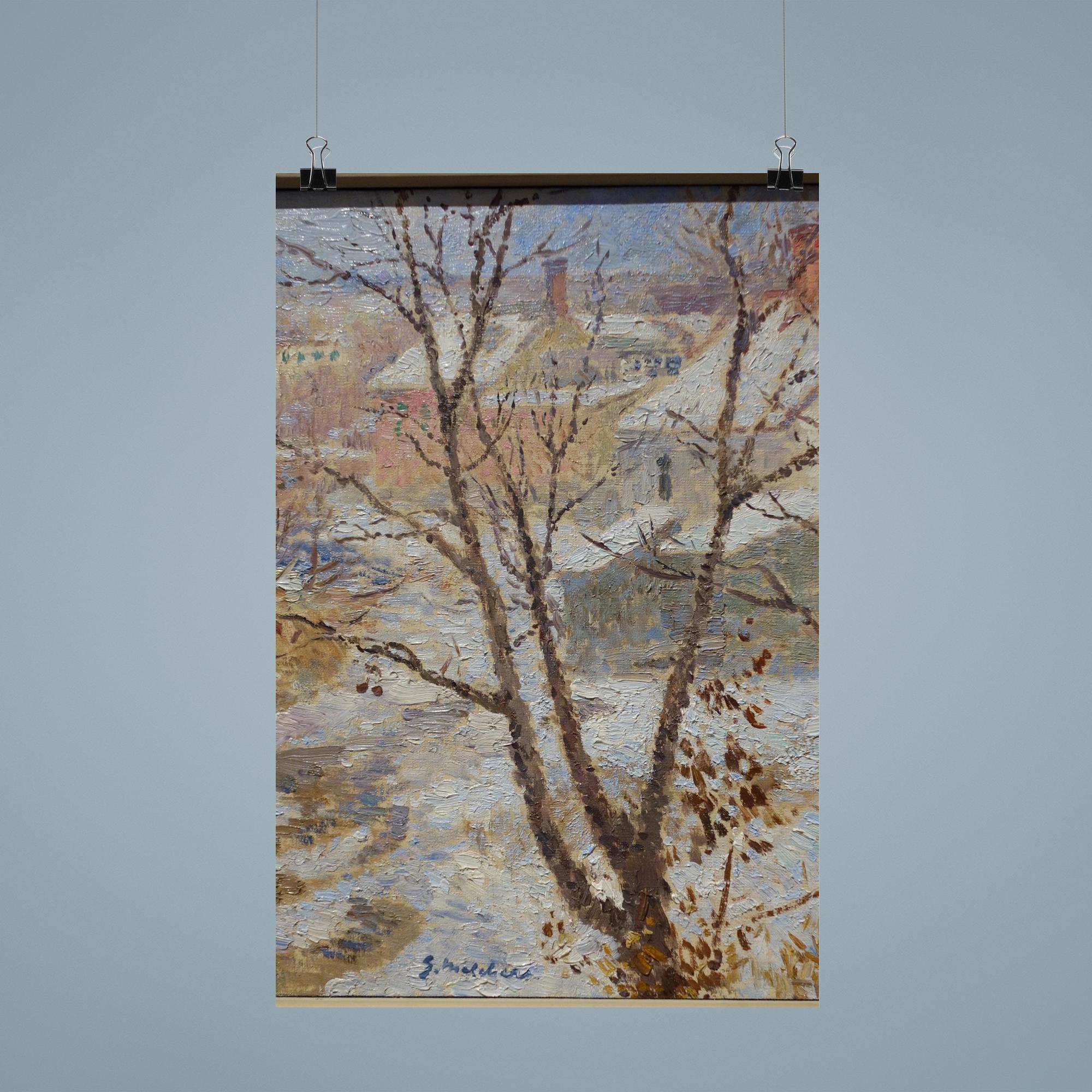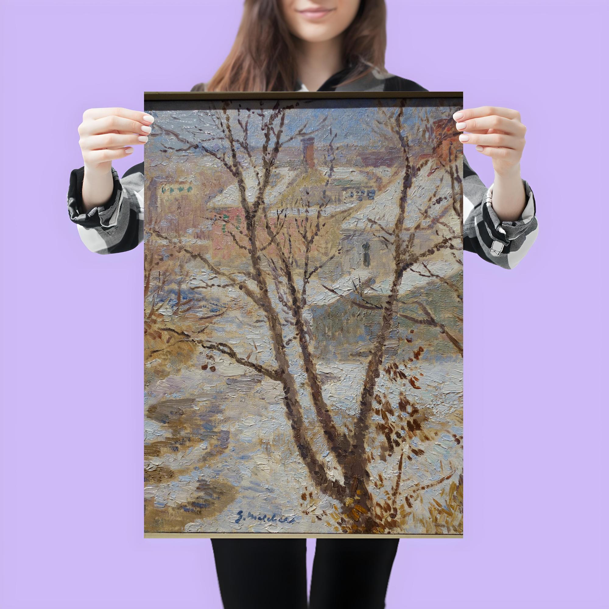 Transform your space with the serene beauty of *Snow Scene* by Gari Melchers. This exquisite poster captures the quiet elegance of a winter landscape, inviting a peaceful, contemplative mood into any room. Perfect for art lovers who appreciate timeless charm and subtle, natural beauty.