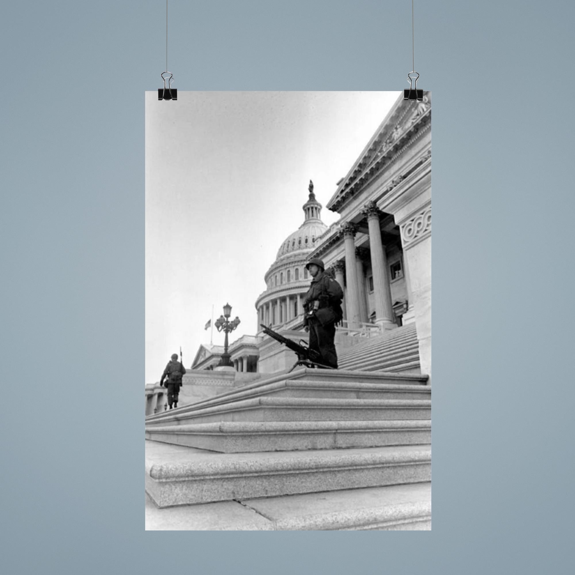 Historic 1968 U.S. Capitol Soldier Poster Print – MLK Assassination Riots Wall Art for Vintage Civil Rights Decor